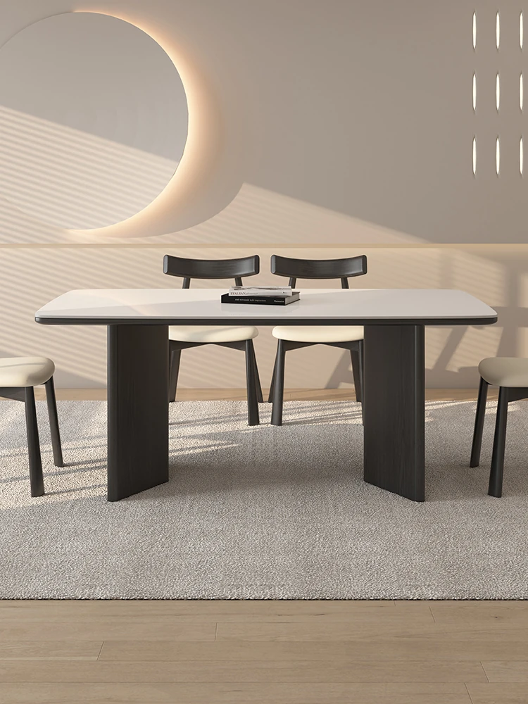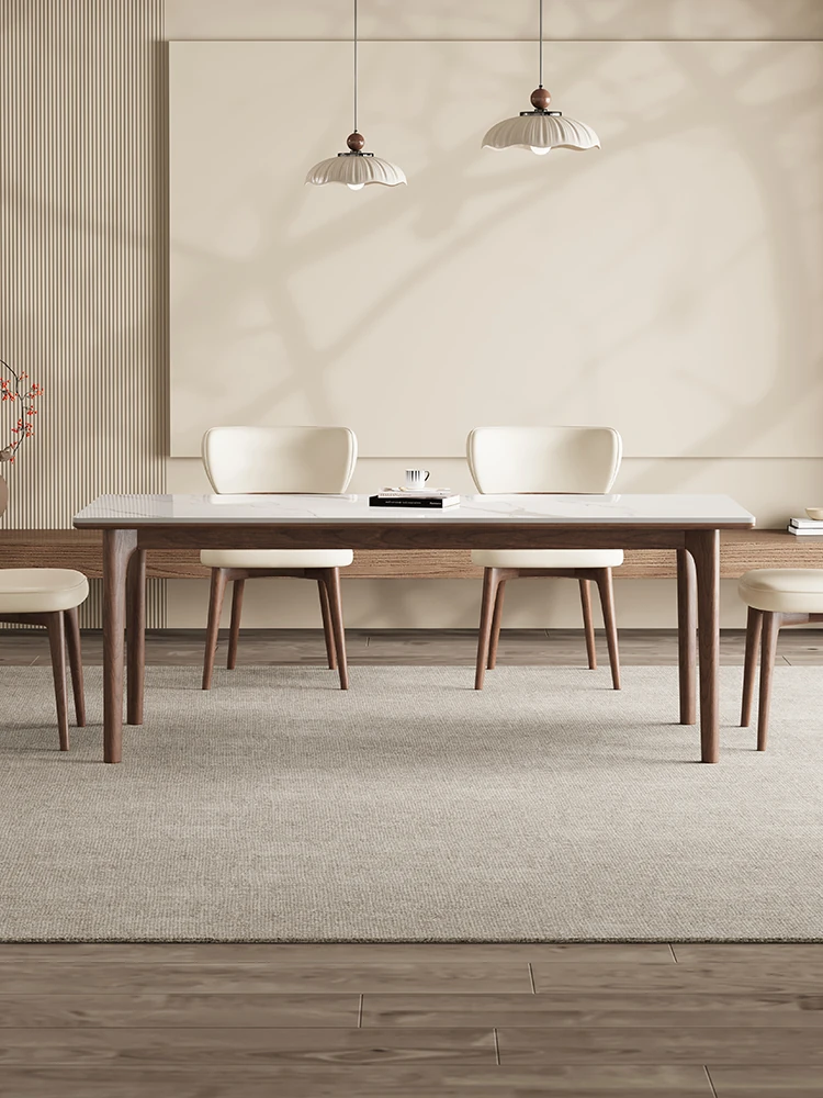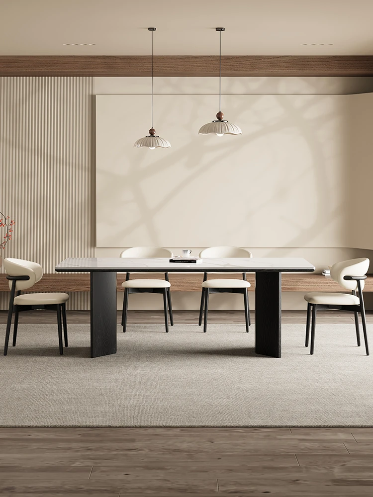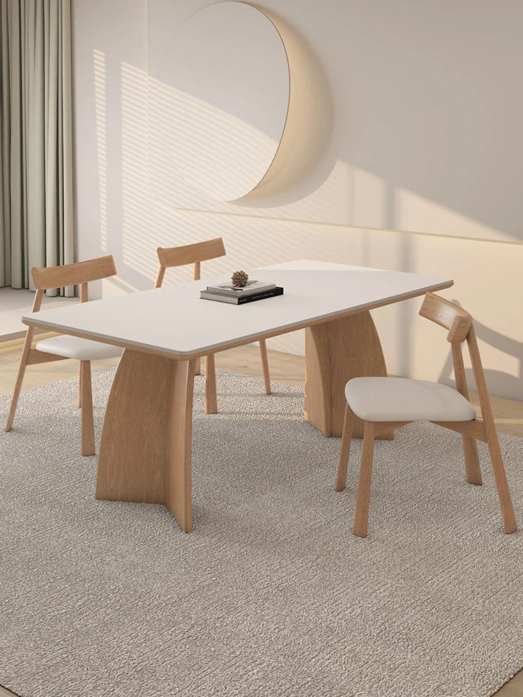 Delifeng Solid Wood Rock Plate Dining Table - Premium New Chinese Style Creamy Natural Wood Rectangular Table for Home Use, Versatile Dining and Study Desk