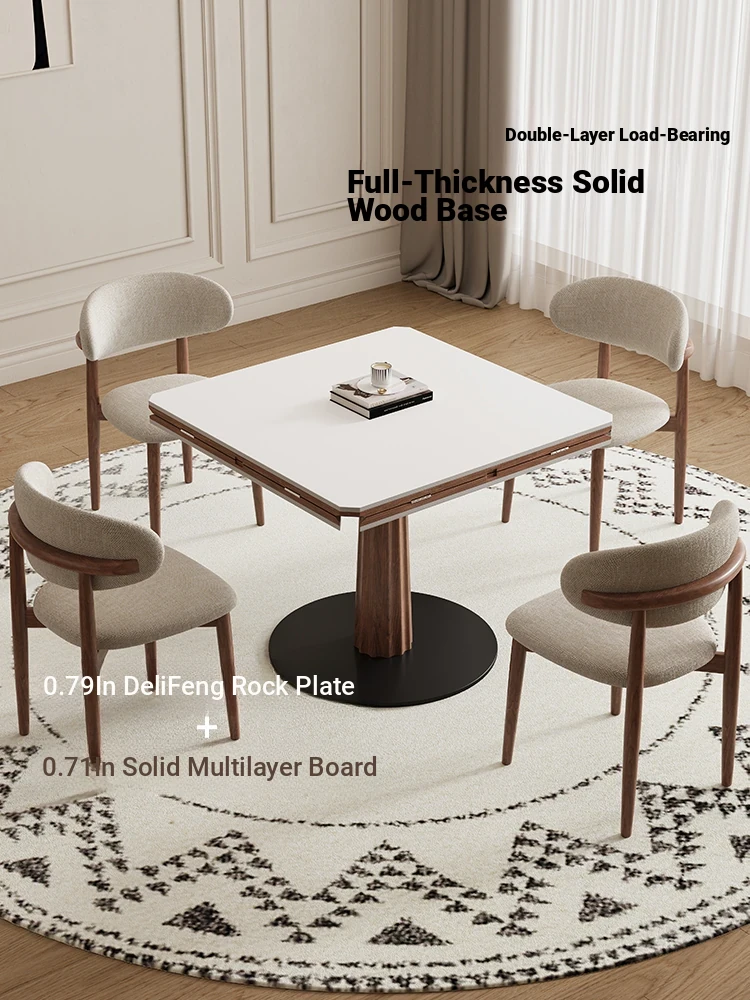 Expandable Deli Feng Rock Plate Dining Table - Versatile Round/Square Design for Small Spaces, French Cream Vintage Style, Foldable for Easy Storage