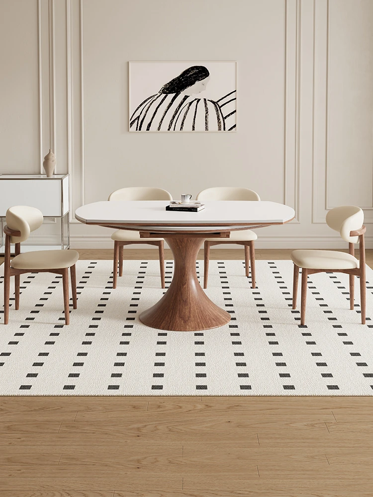 DeliFeng Black Rock Plate Dining Table – Elegant Cream Vintage Style Rectangular Table for Small Spaces, Perfect for Home Use