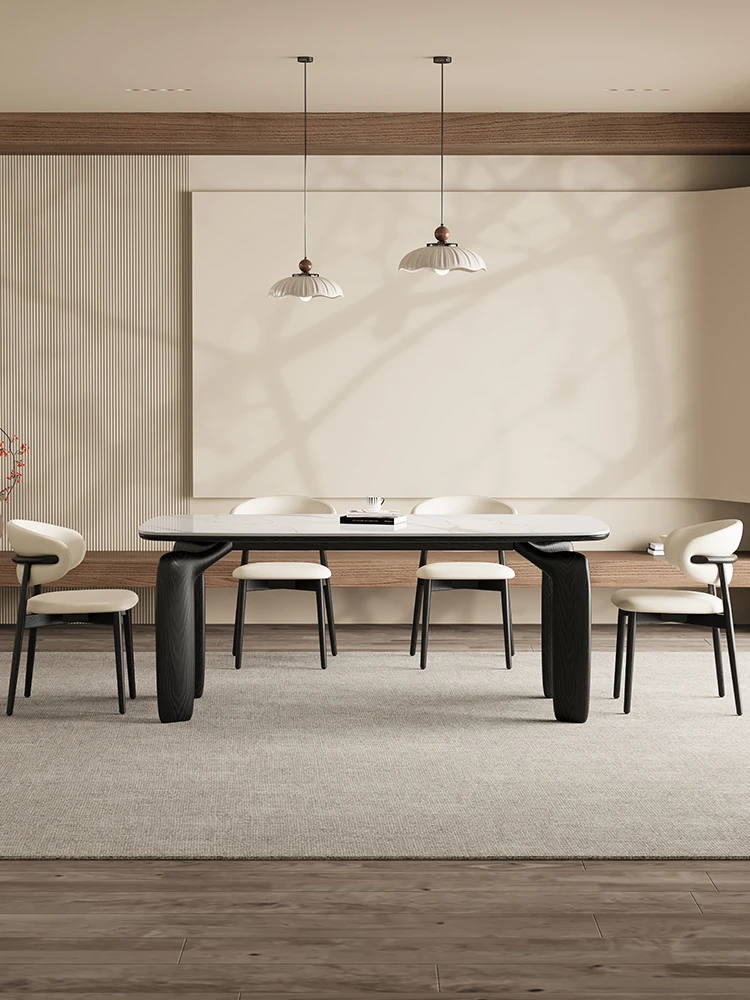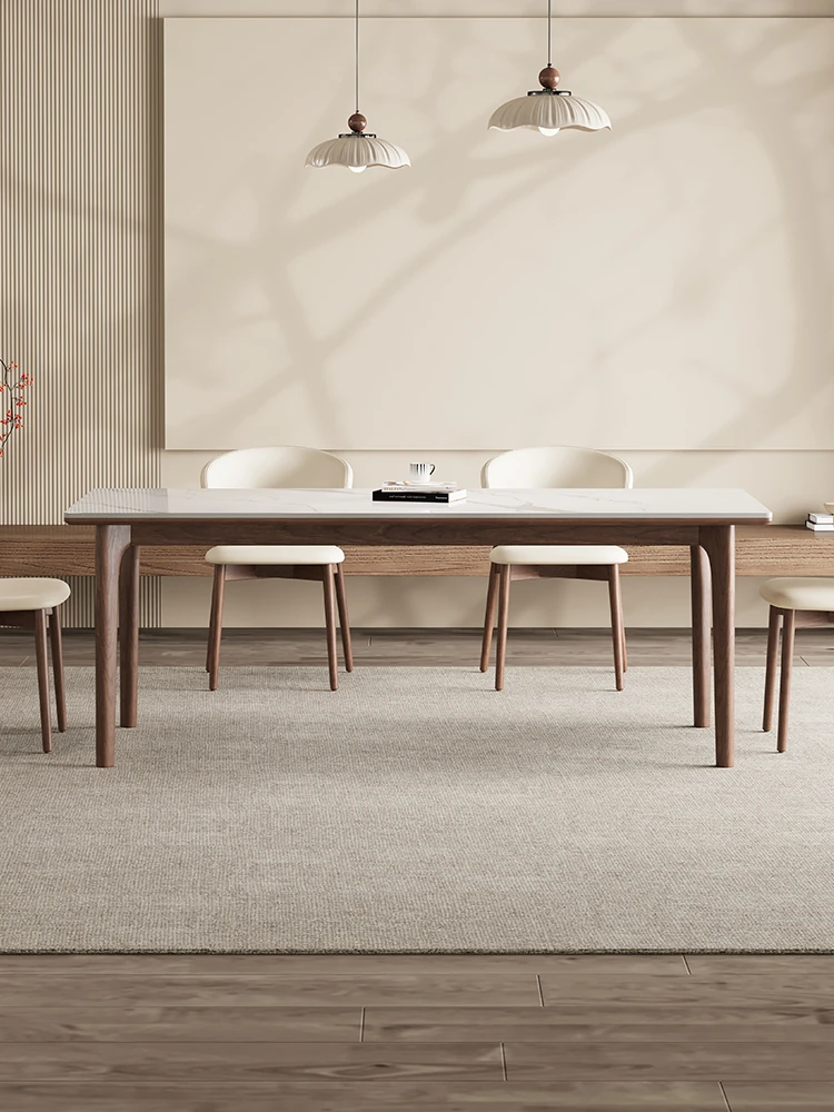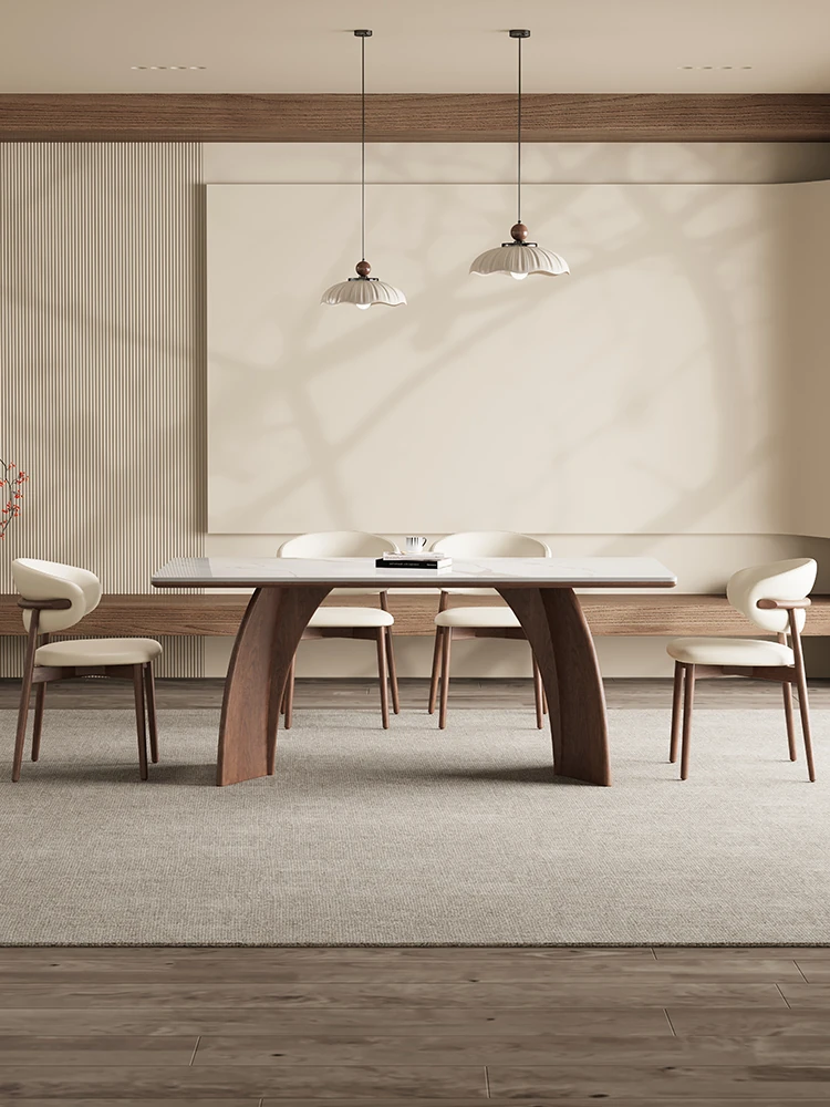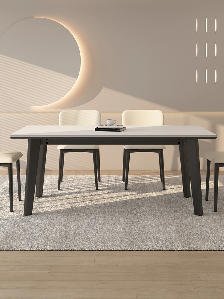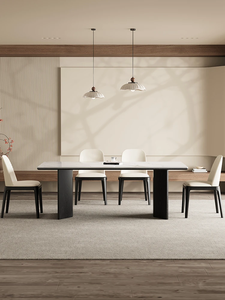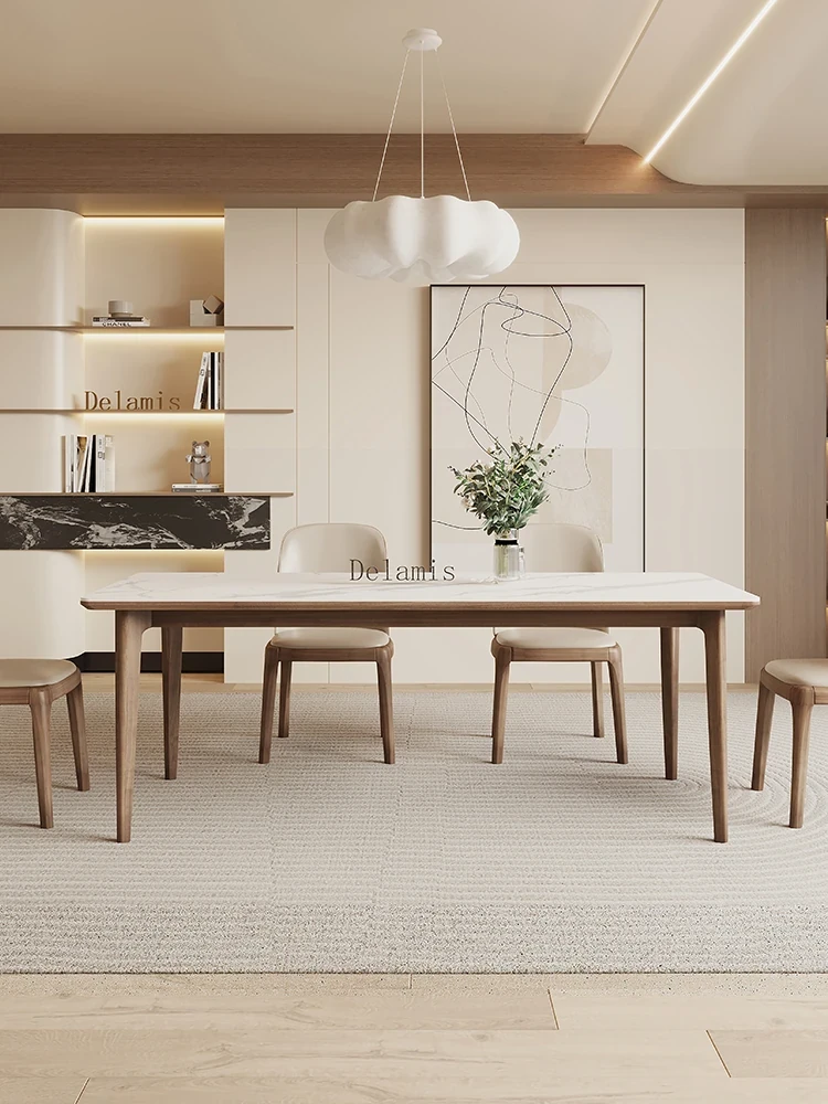 Delifeng Solid Wood Rock Plate Dining Table - Rectangular Design for Modern Chinese Style, Ideal for Small Spaces, High-End Trendy Dining Set with Chairs