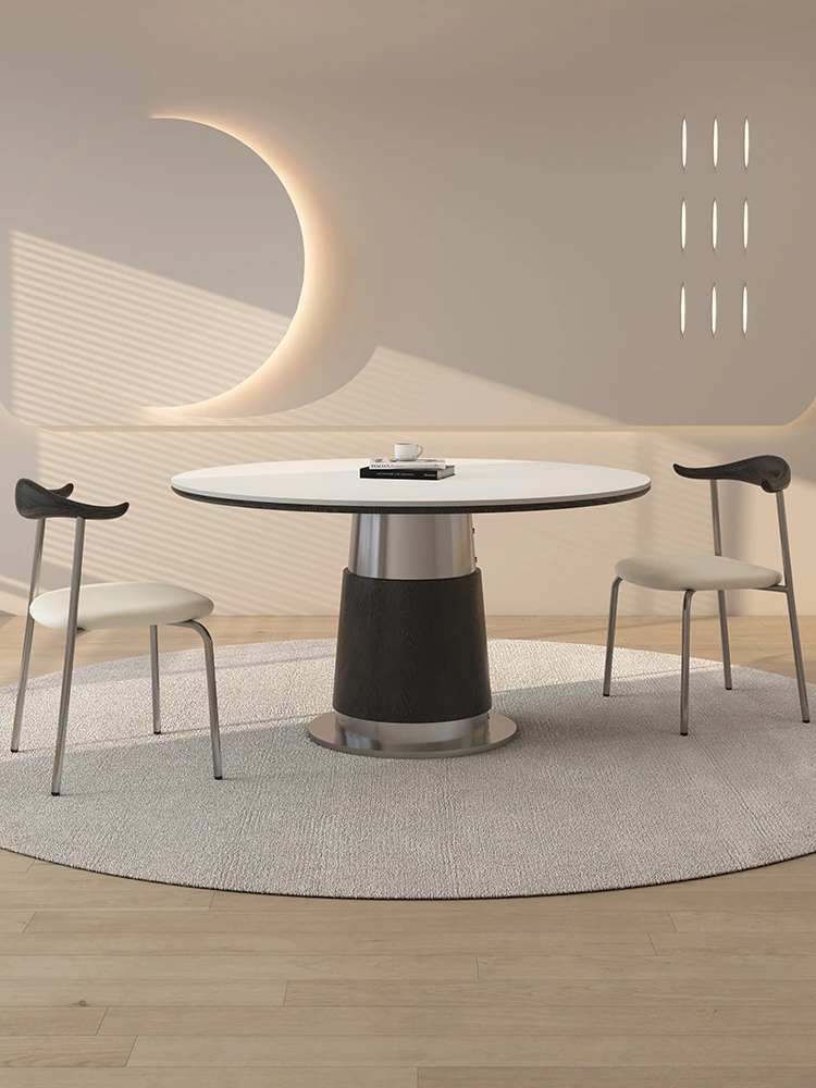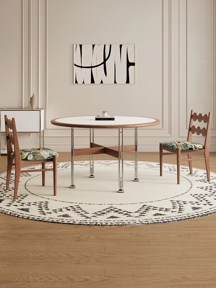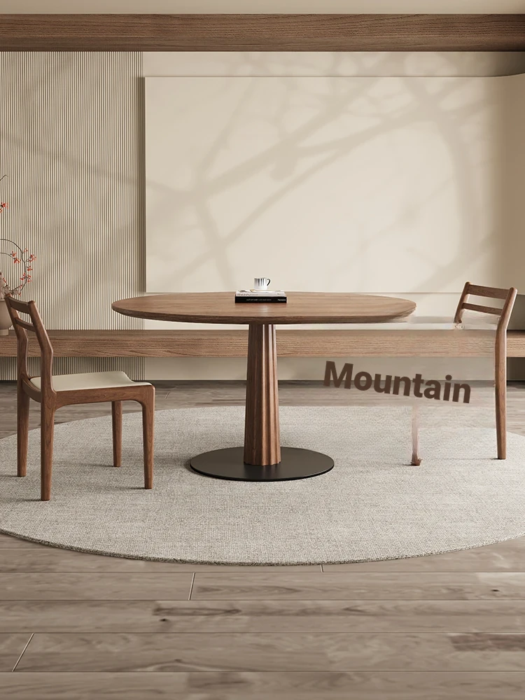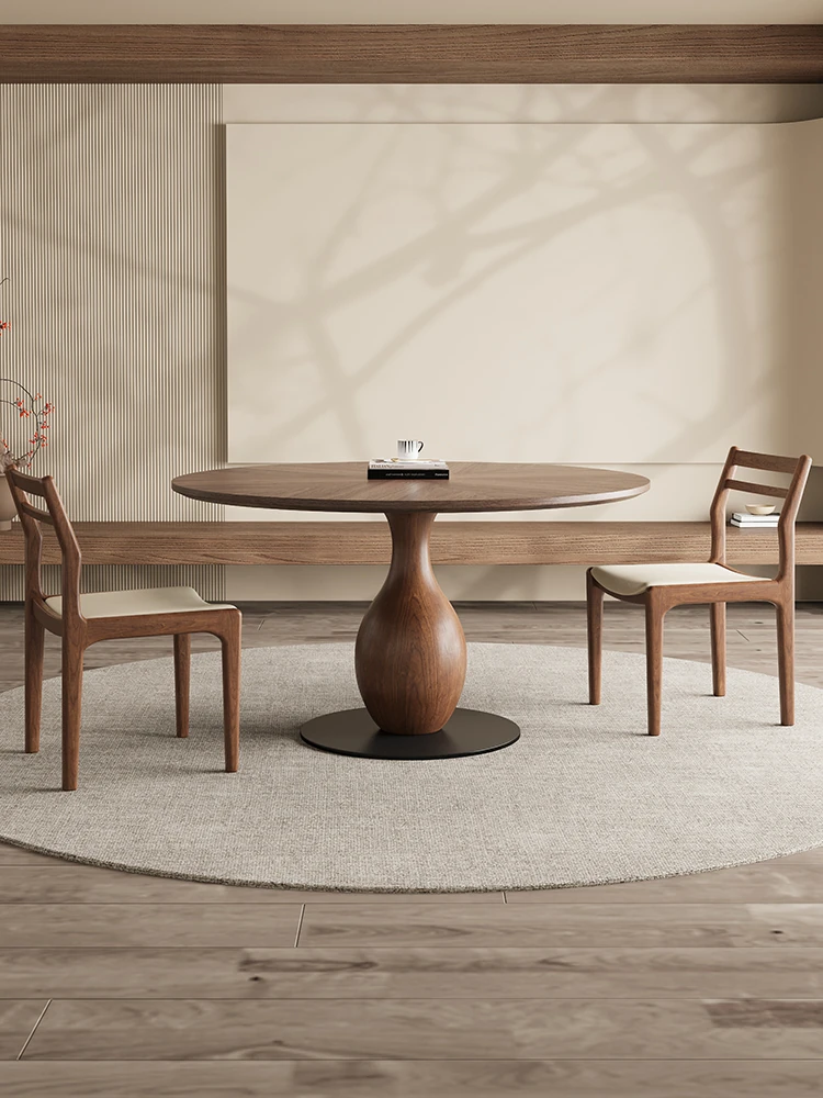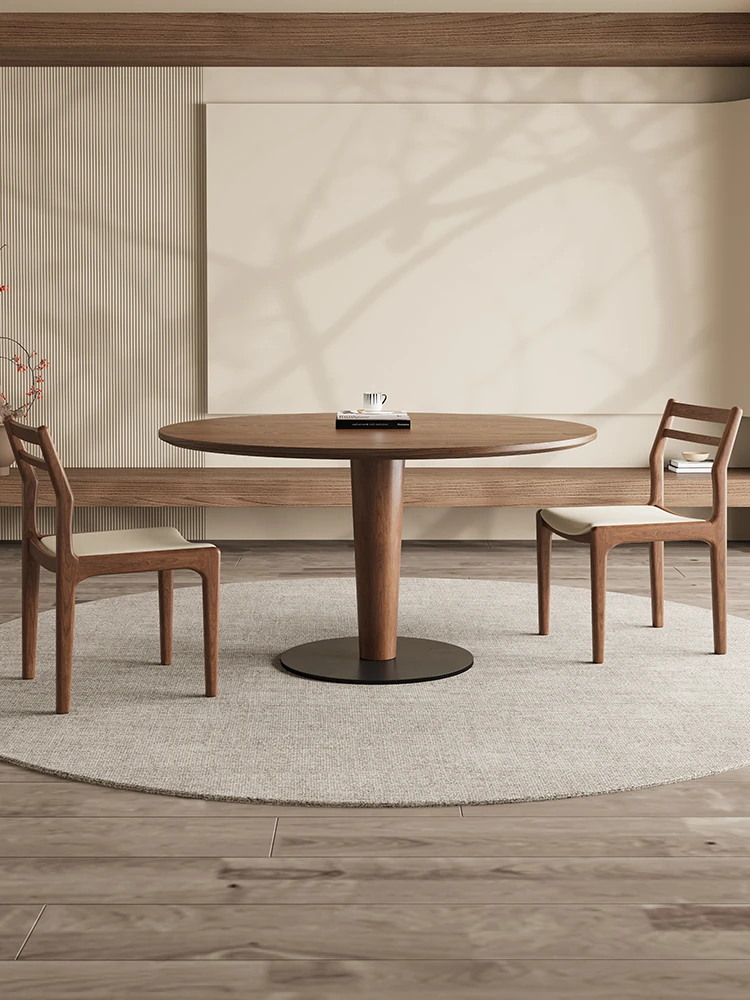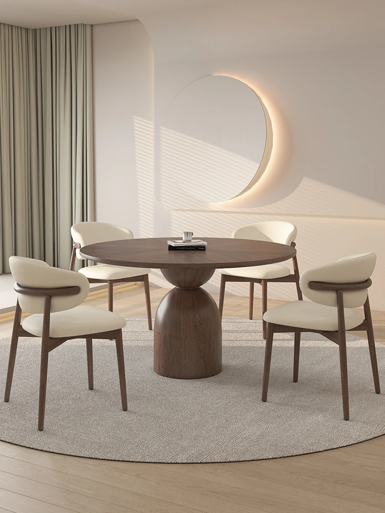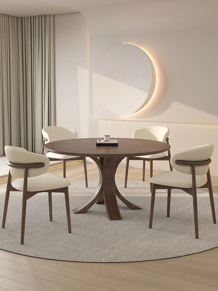 Elegant Round Walnut Dining Table - New Oriental Style Solid Wood Table for Small Spaces, Cream Vintage Design, Perfect for Home Use