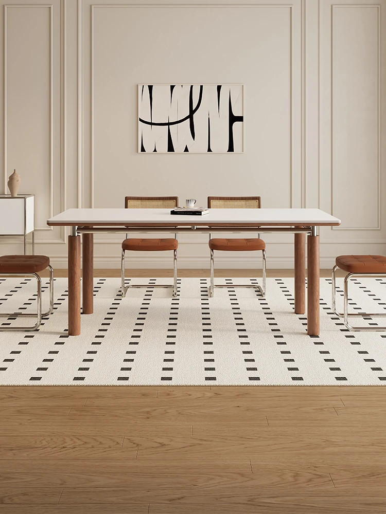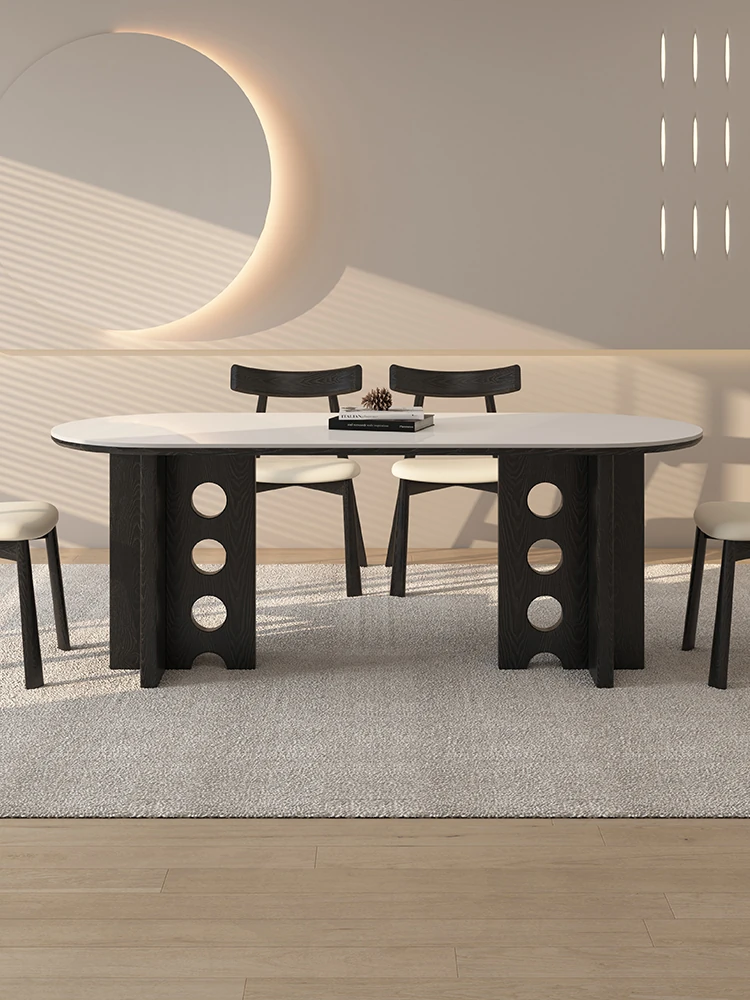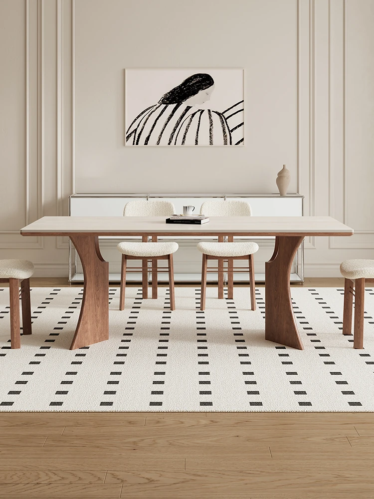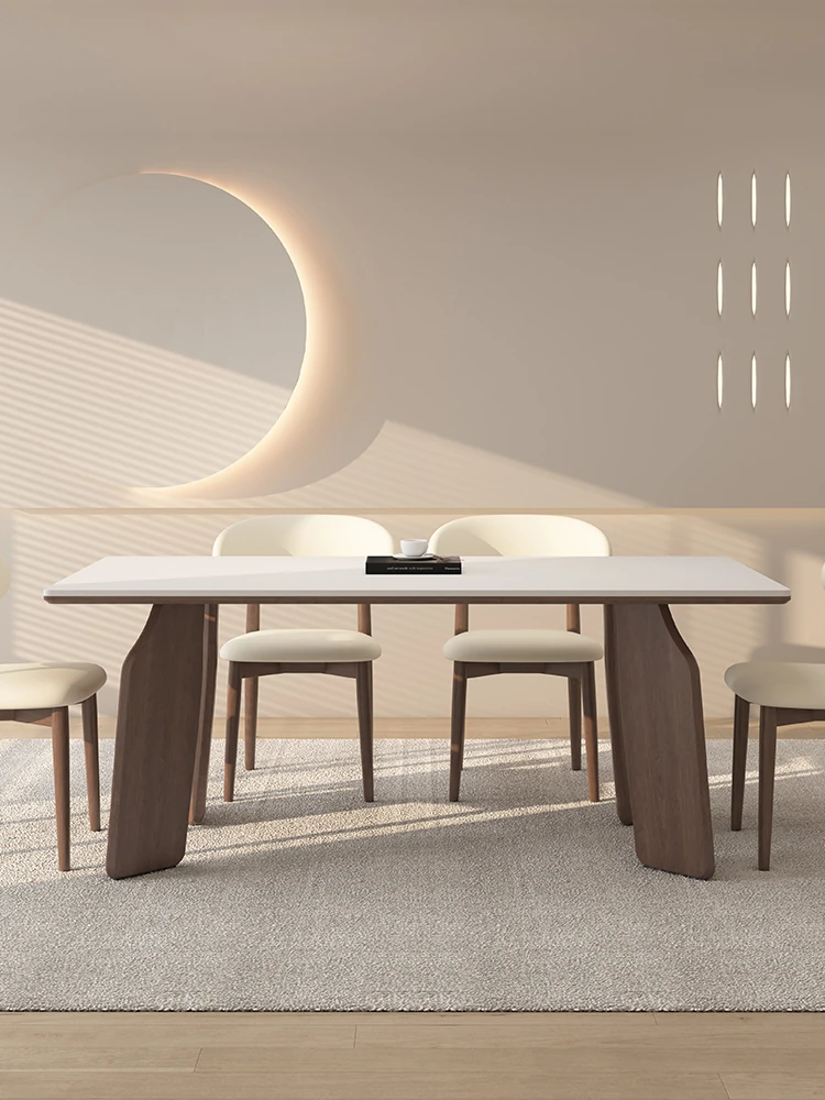 Delifeng Solid Wood Rock Plate Dining Table for Small Spaces - Cream Vintage Style Rectangular High-End Dining Table for Home Use