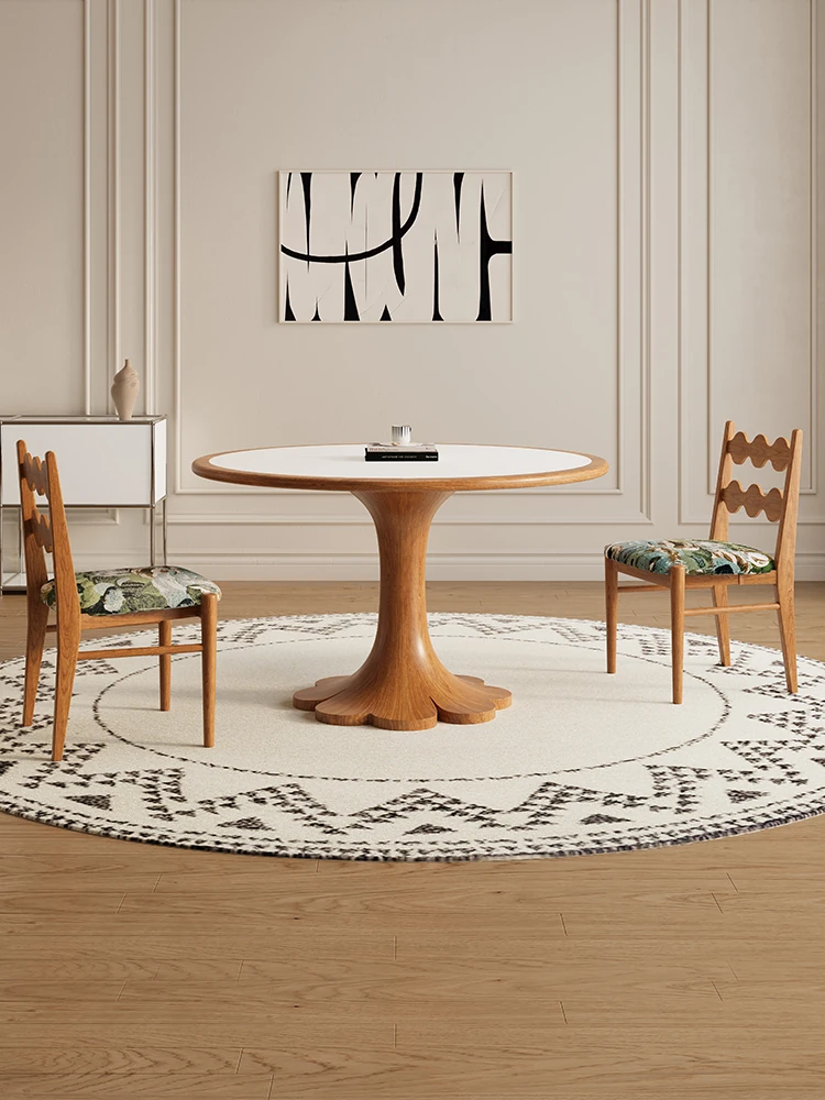 Delifeng Solid Wood Round Dining Table - High-End Natural Wood Finish, French Vintage Style, Ideal for Small Homes, Elegant Embedded Design