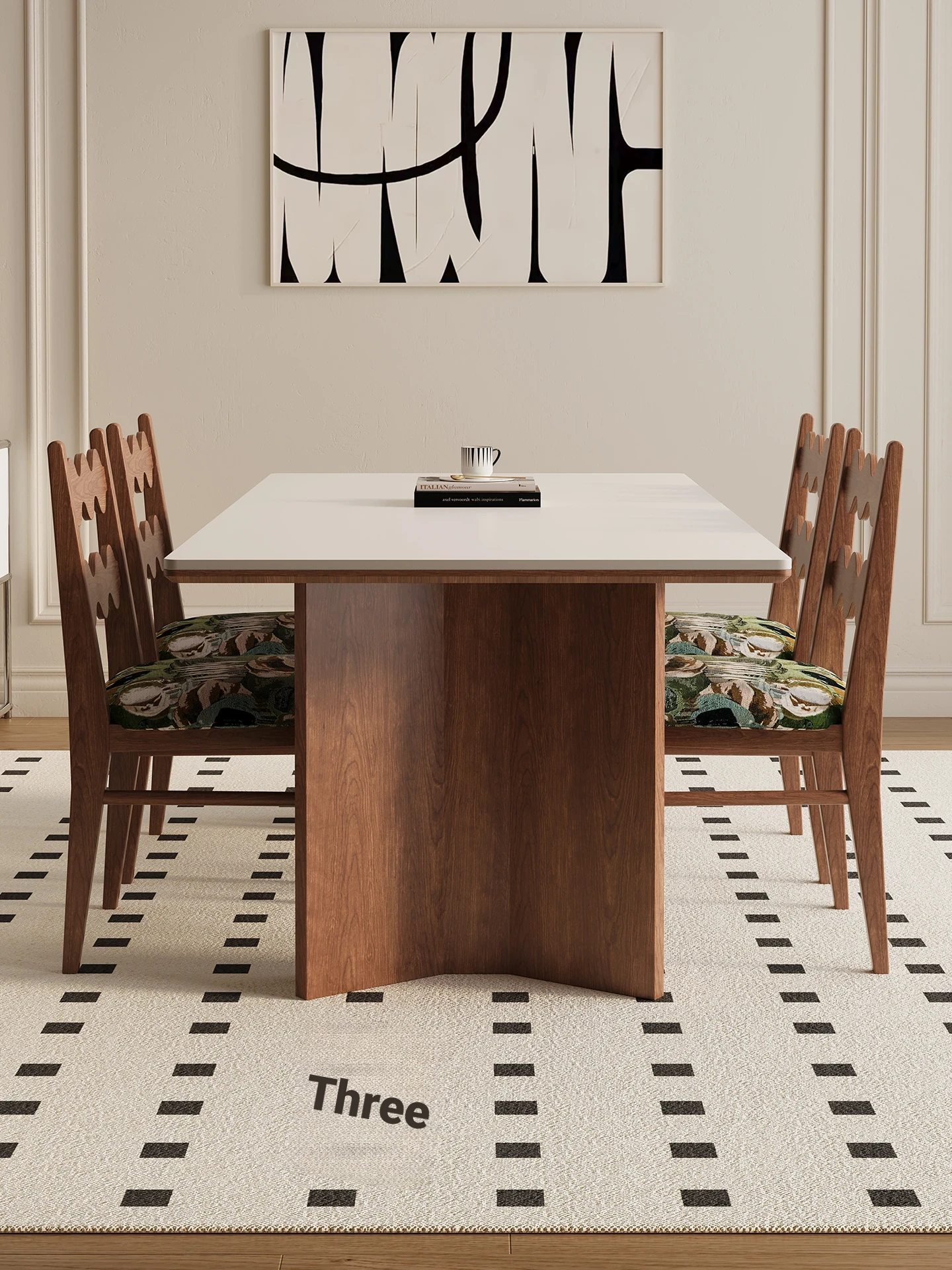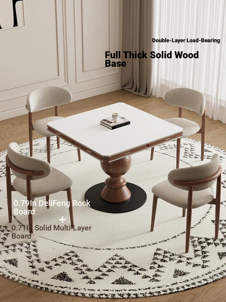 Delifeng Solid Wood Dining Table with Rock Board, Walnut Color, French Cream Vintage Style, High-End Design for Small Spaces, Perfect for Family Meals