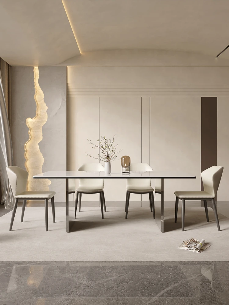 Delifeng Marble Dining Table with Stainless Steel Frame - Elegant Italian Minimalist Design, High-End Luxurious Rectangular Milo Extendable Table for Home Use, Perfect for Modern Living Spaces