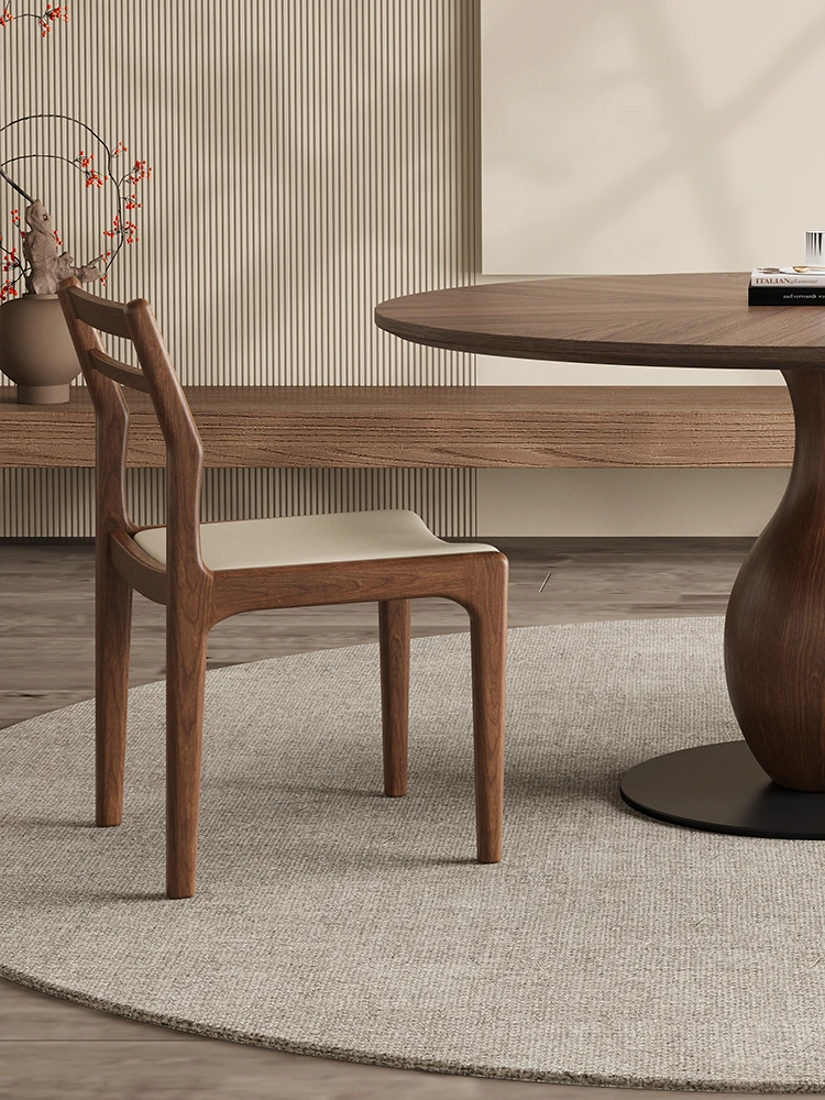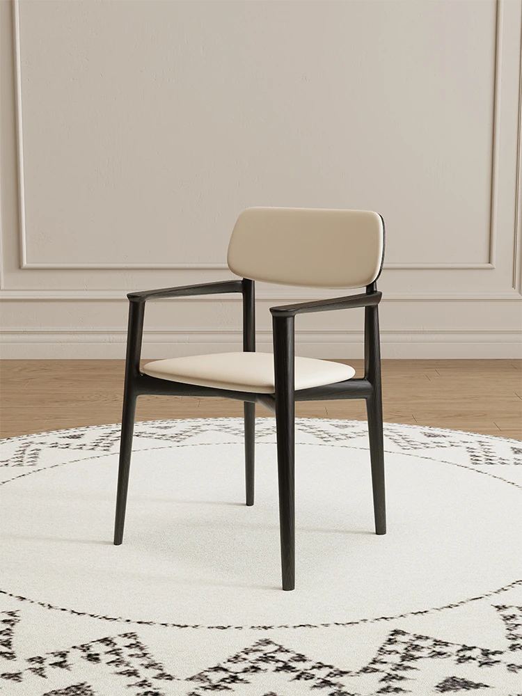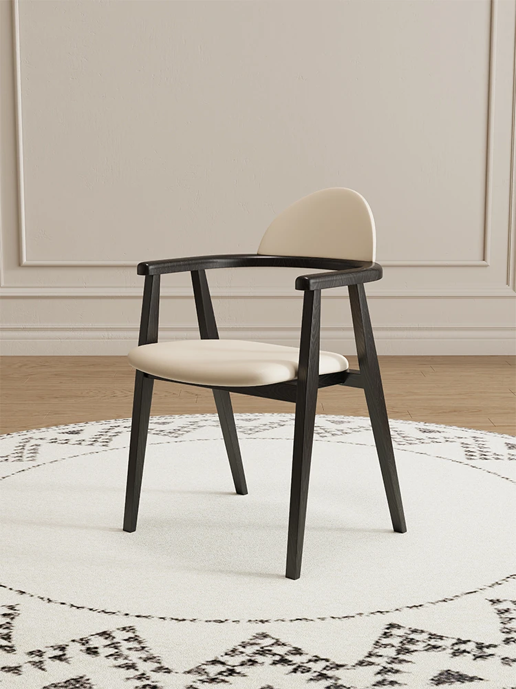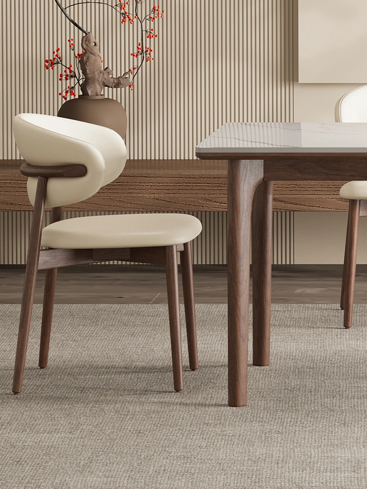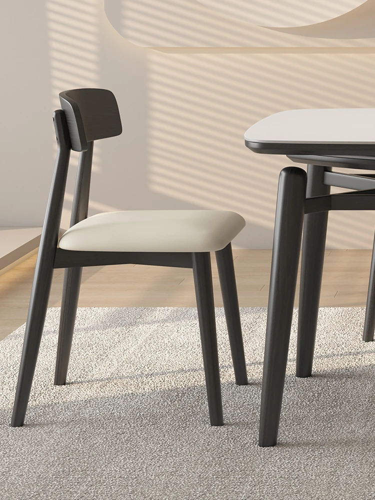 モダンミニマリストの無垢材ダイニングチェア - 高級感溢れるソフトパッキング付き、古風なデザインでホテルやレストランにも最適な家庭用背もたれ椅子。快適さとスタイルを両立させた一品。