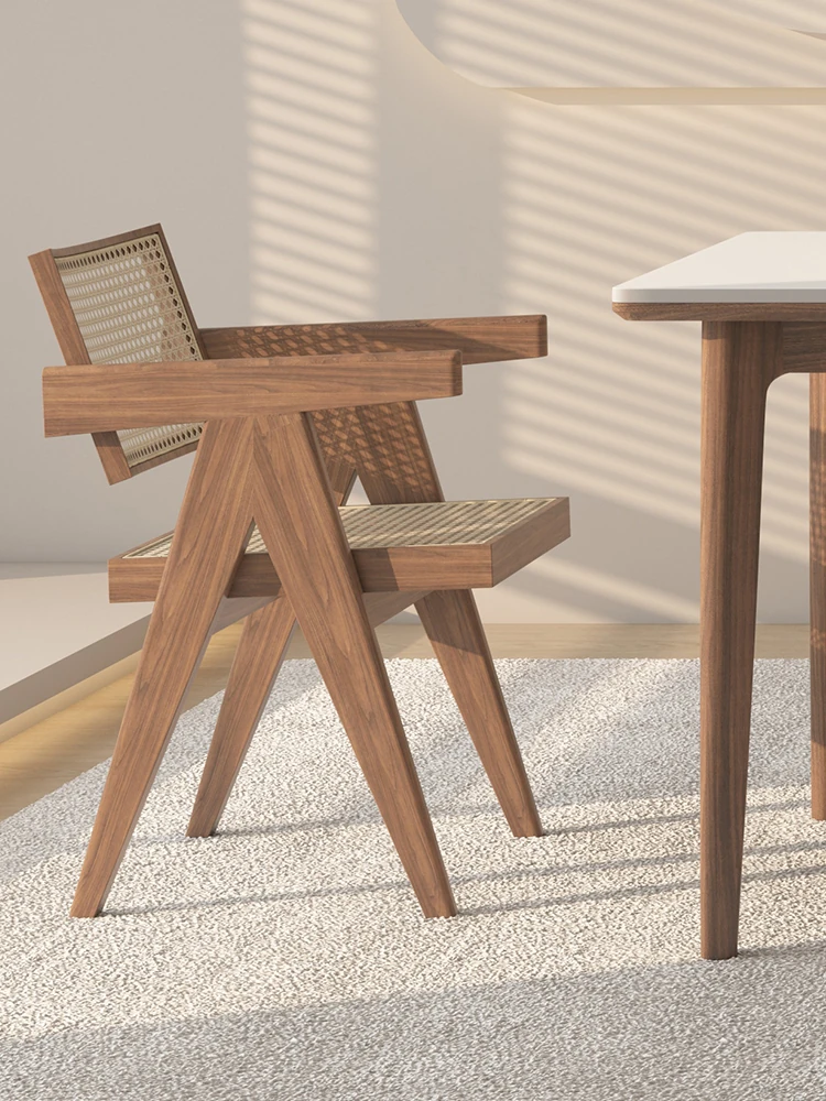 高級感あふれる無垢材の椅子、藤編みデザインの家庭用ブラッククリームミッドセンチュリー風背もたれ付き、デザイナー仕様のホワイトアッシュチェア。快適さとスタイルを両立させた一品です!