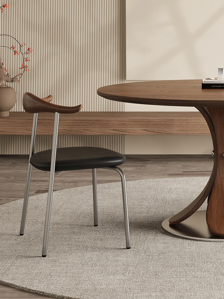 高級感溢れるデザインの無垢材ダイニングチェア - 家庭用クリームカラー新中式スタイル、小型スペースにも最適なリラックスチェア!天然木の背もたれで、居心地の良さを追求しました。