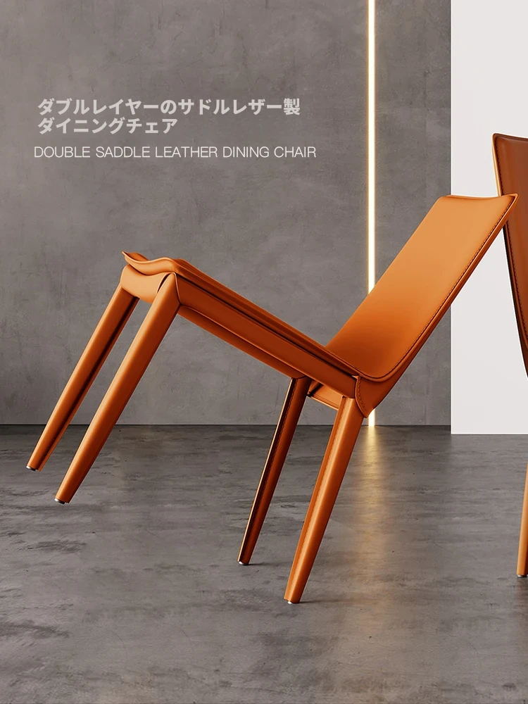 高級感あふれる軽奢カーボンスチール製ダイニングチェア、上質なサドルレザー使用!おしゃれなリビングや小さな家にぴったりなモダンミニマルデザインのダイニングテーブル・チェアセット。快適さとスタイルを両立させた一品!