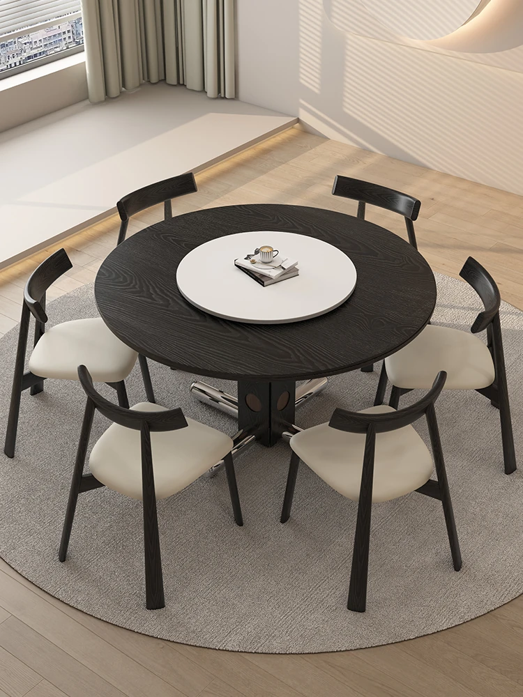 Delifeng Solid Wood Round Dining Table - Black, French Cream Vintage Style, Perfect for Small Homes, Full Support for Dining Experience