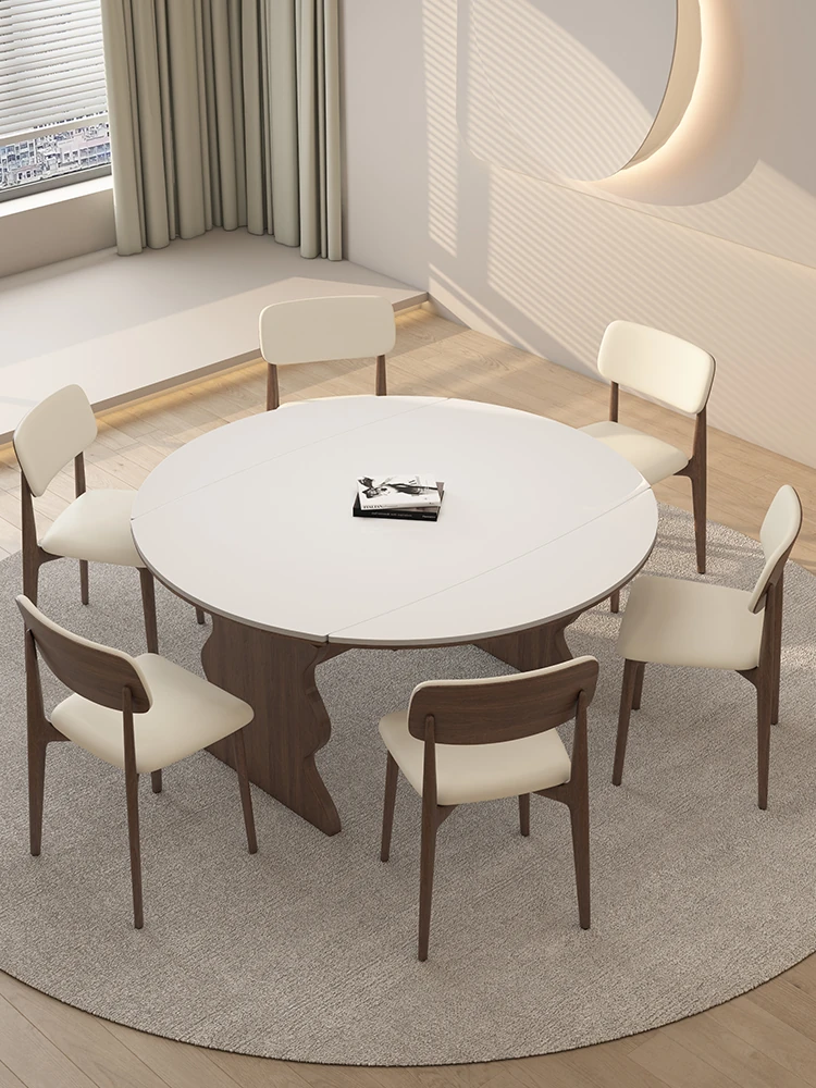 Expandable Rock Slab Dining Table - Delifeng Cream White, Ideal for Small Homes, Versatile Round/Square Design, Perfect Blend of Vintage Style and Modern Functionality