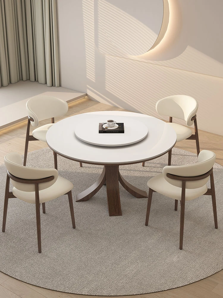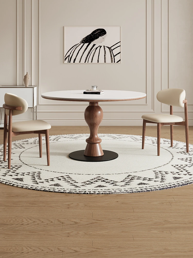 Elegant Round Walnut Dining Table - Creamy Vintage Style Solid Wood Table for Small Spaces - Perfect for Cozy Meals at Home