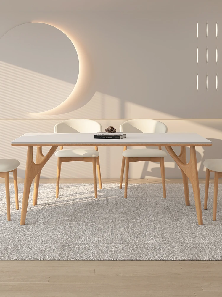 Delifeng Solid Wood Rock Board Dining Table - Elegant Rectangular Cream Vintage Style Dining Table Made of White Ash Wood for Home Use
