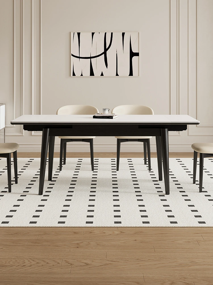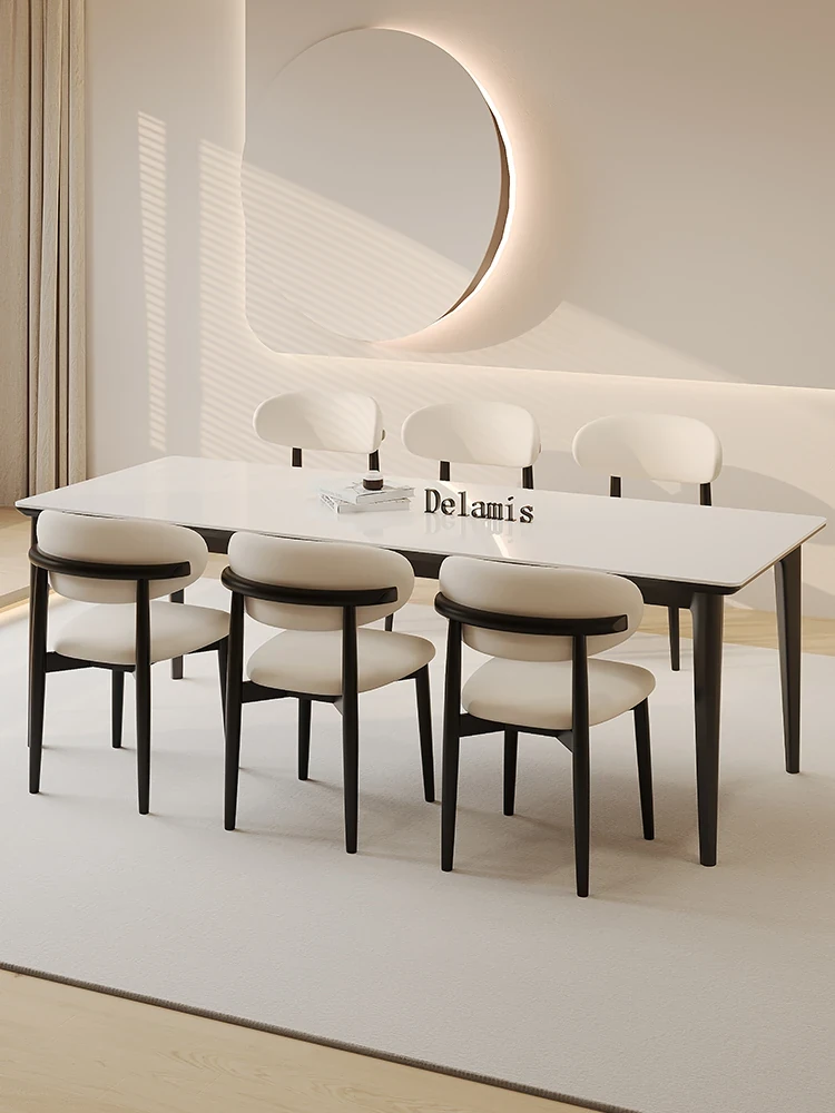 Delifeng Solid Wood Rock Plate Dining Table Set - Modern Minimalist Black and White Ash Wood for Small Apartments, Perfect for Living Rooms and Dining Areas