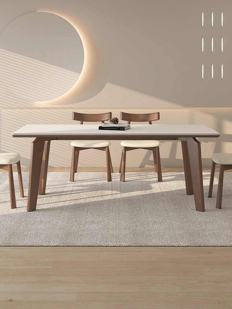 Delifeng Solid Wood Rock Panel Dining Table for Small Spaces - Elegant Rectangular French Cream Walnut Table for Home Use