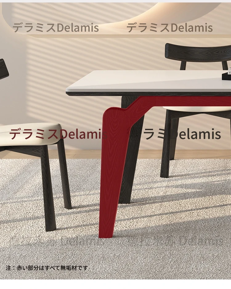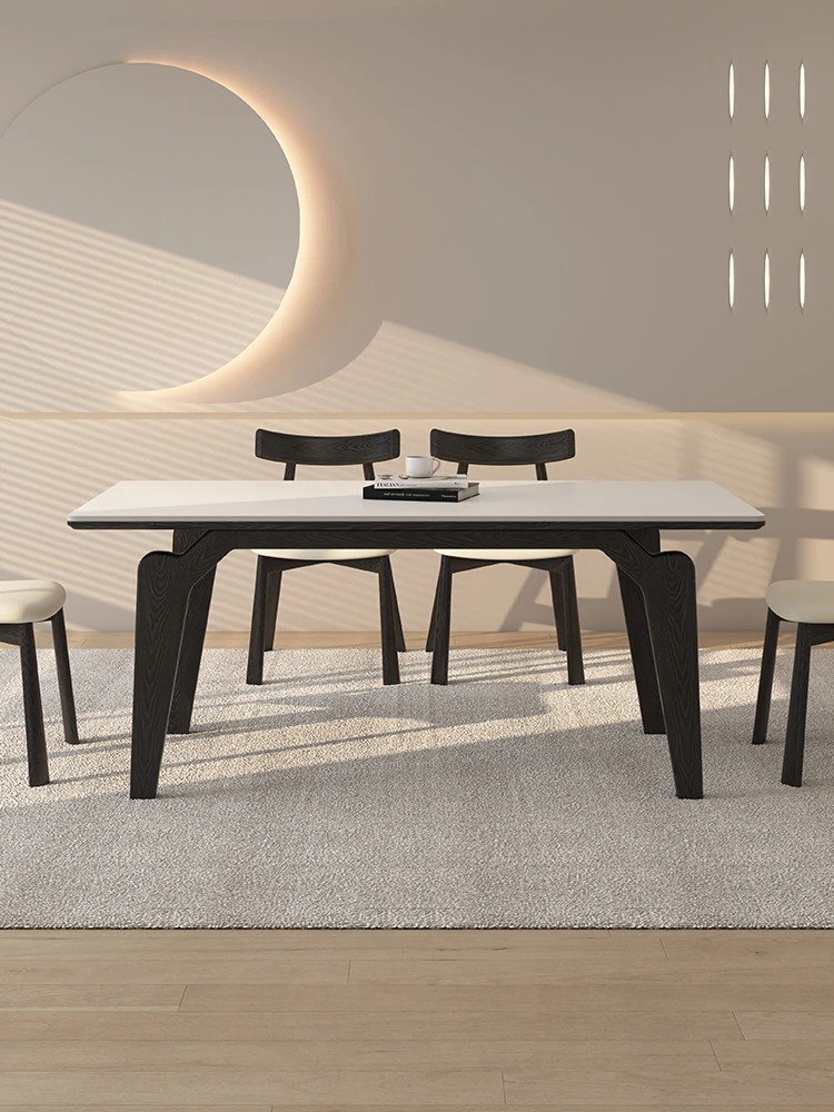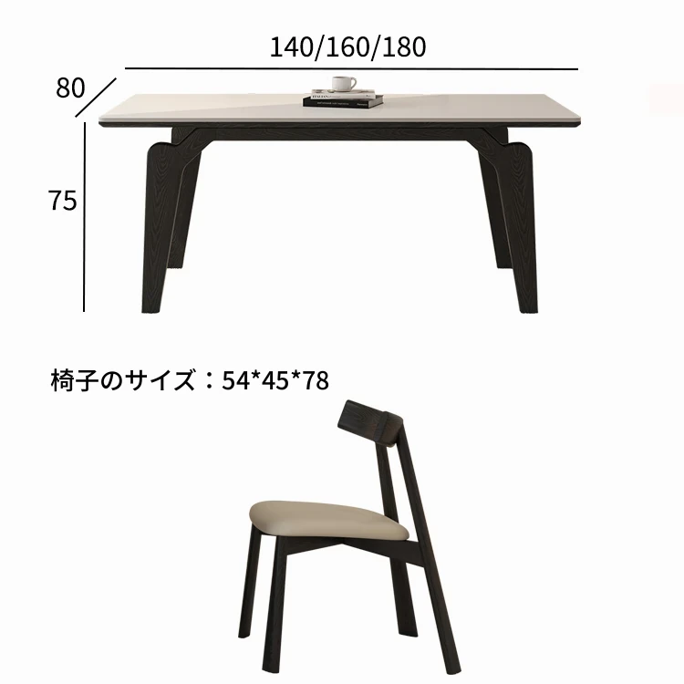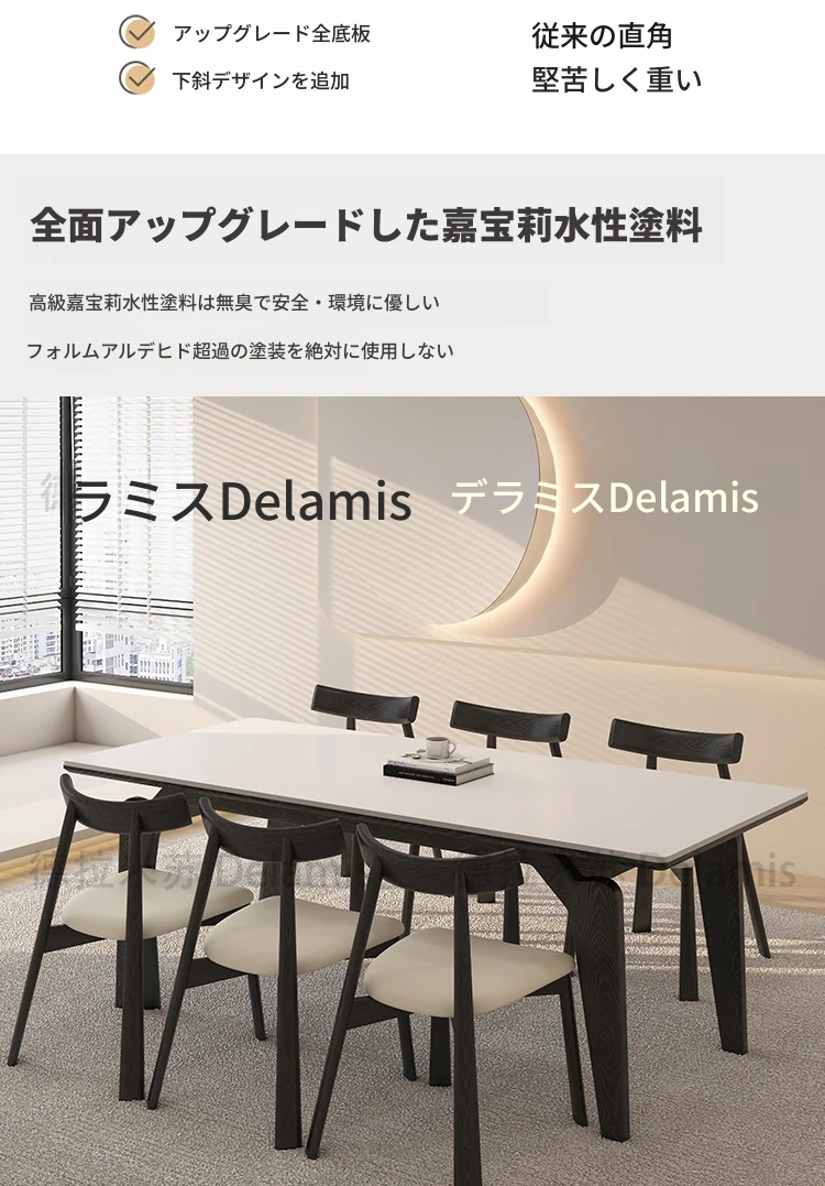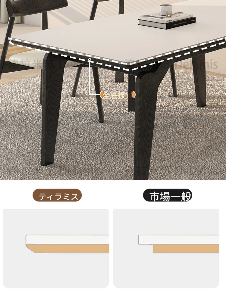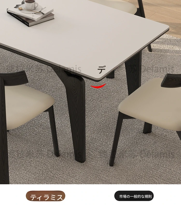 デリフォン黒い長方形の岩板ダイニングテーブル - 高級感漂うクリーム色の中古風デザイン、コンパクトな小型住宅にぴったりな食卓!