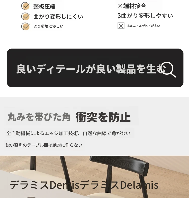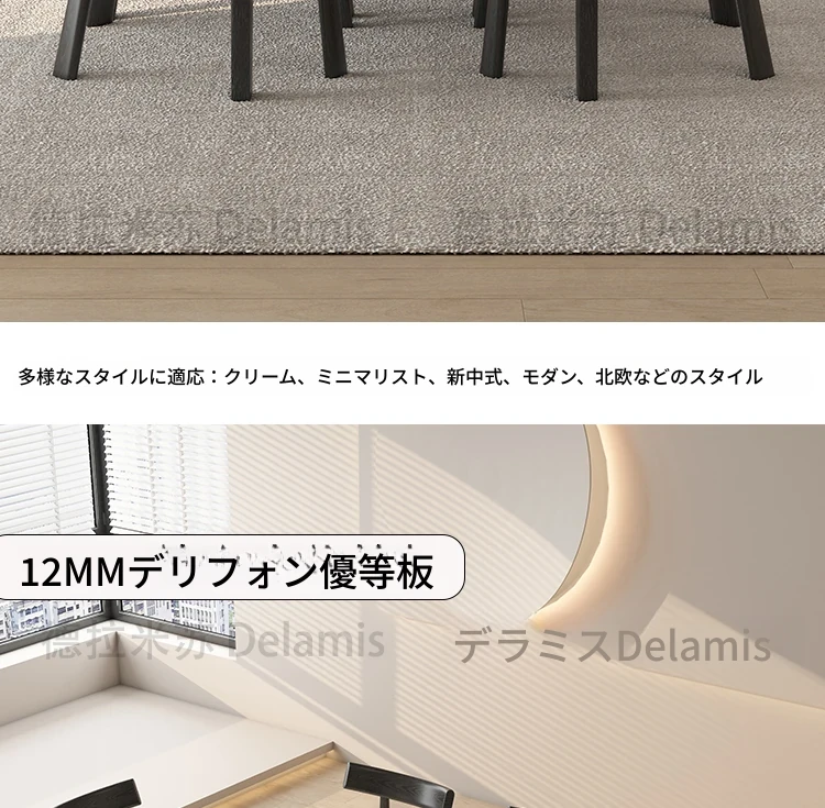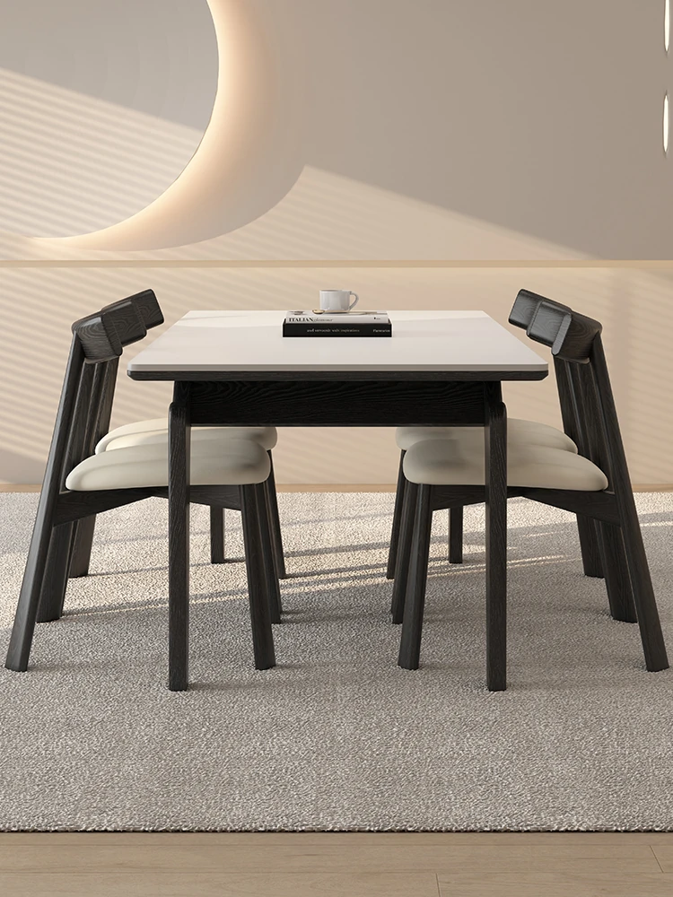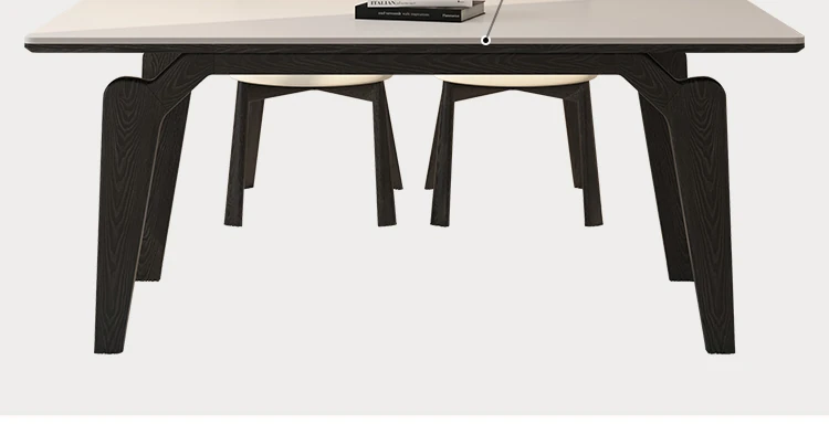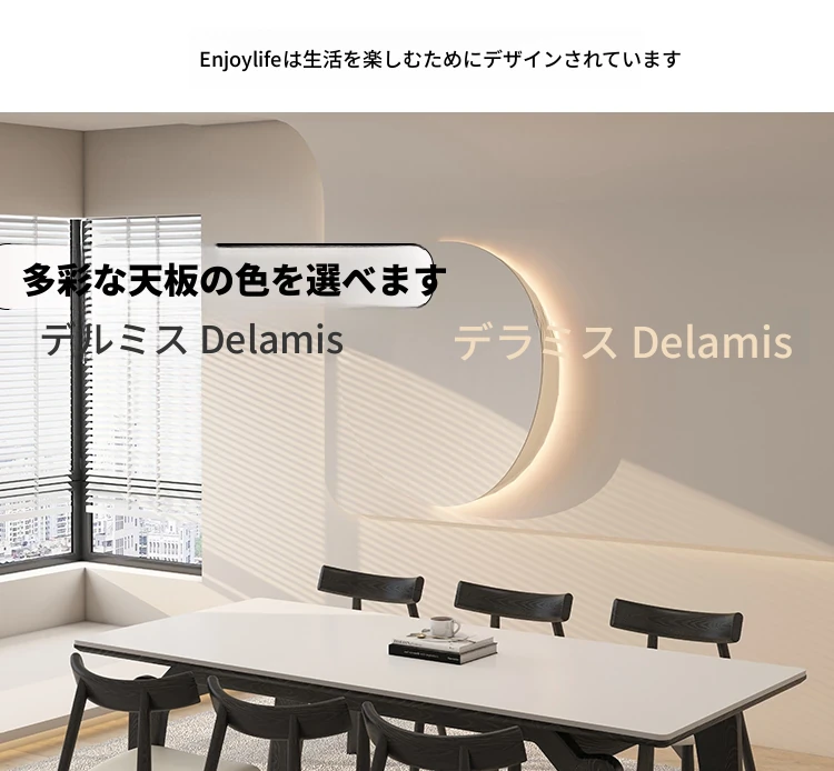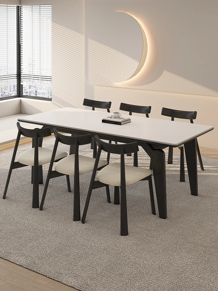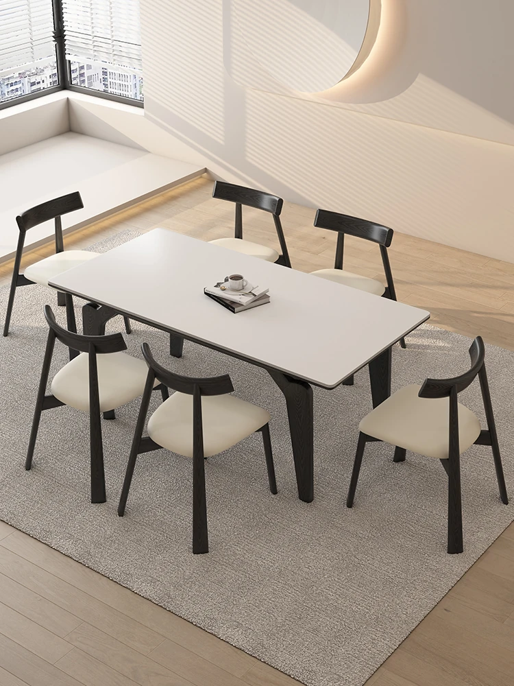 デリフォン黒い長方形の岩板ダイニングテーブル - 高級感漂うクリーム色の中古風デザイン、コンパクトな小型住宅にぴったりな食卓!