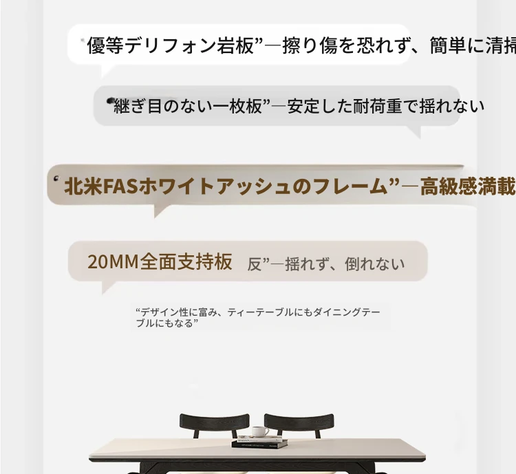 デリフォン岩板ダイニングテーブル【ホワイトアッシュ】【工場直販】