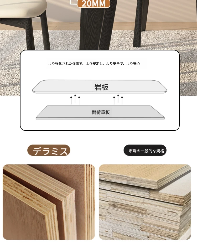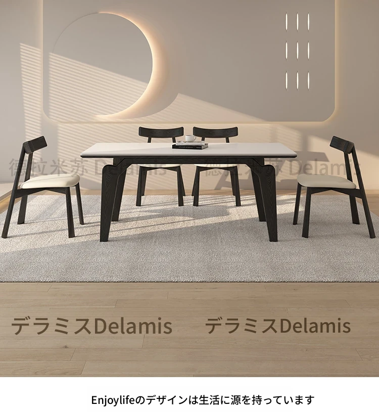 一卓四椅子【デリフォン岩板+無垢材椅子】【5年保証】