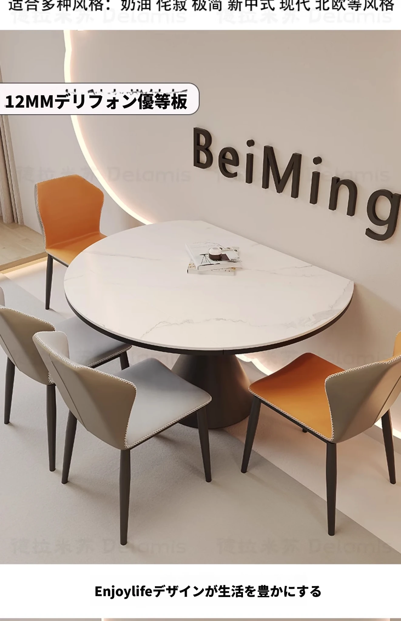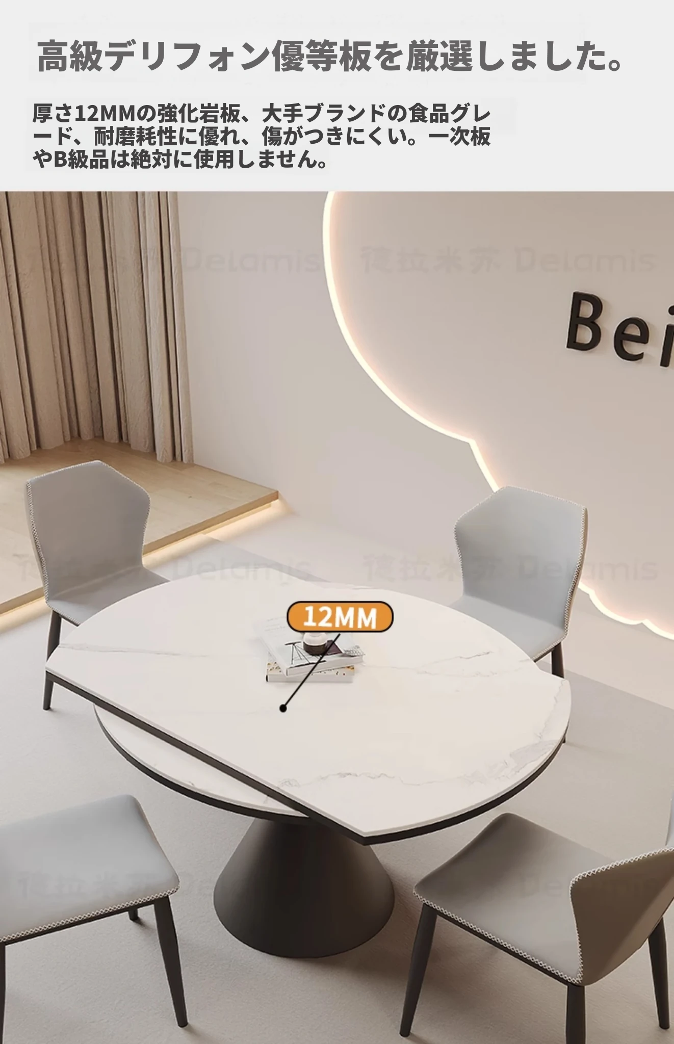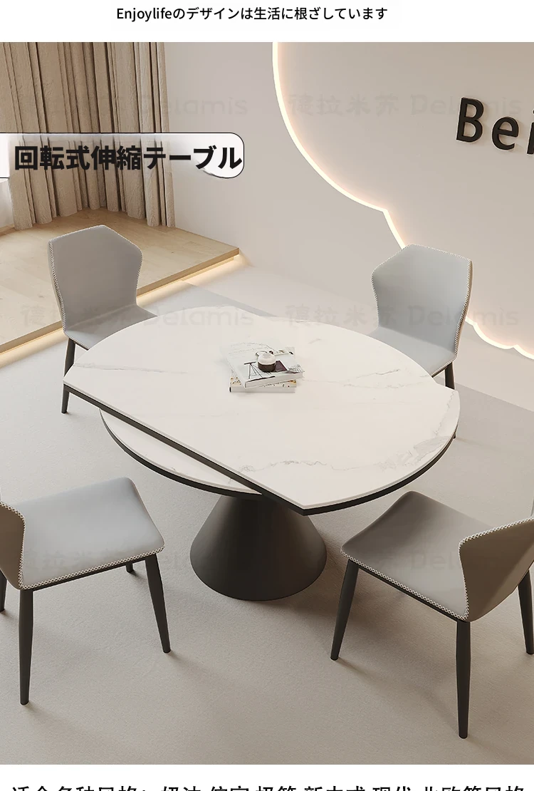 デリフォン回転式伸縮可能なイタリアンミニマリスト高級ラウンドテーブル - 丸型と角型の2WAYデザインで、洗練された食卓を実現!