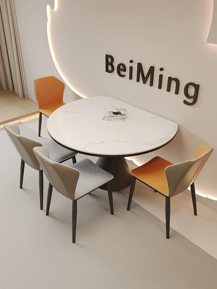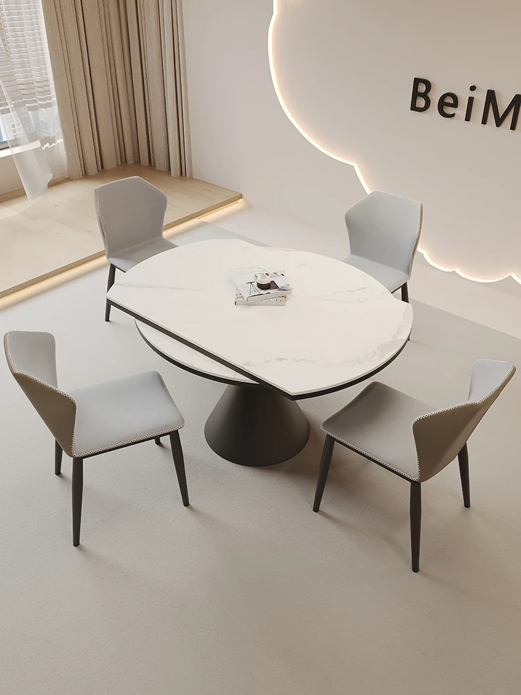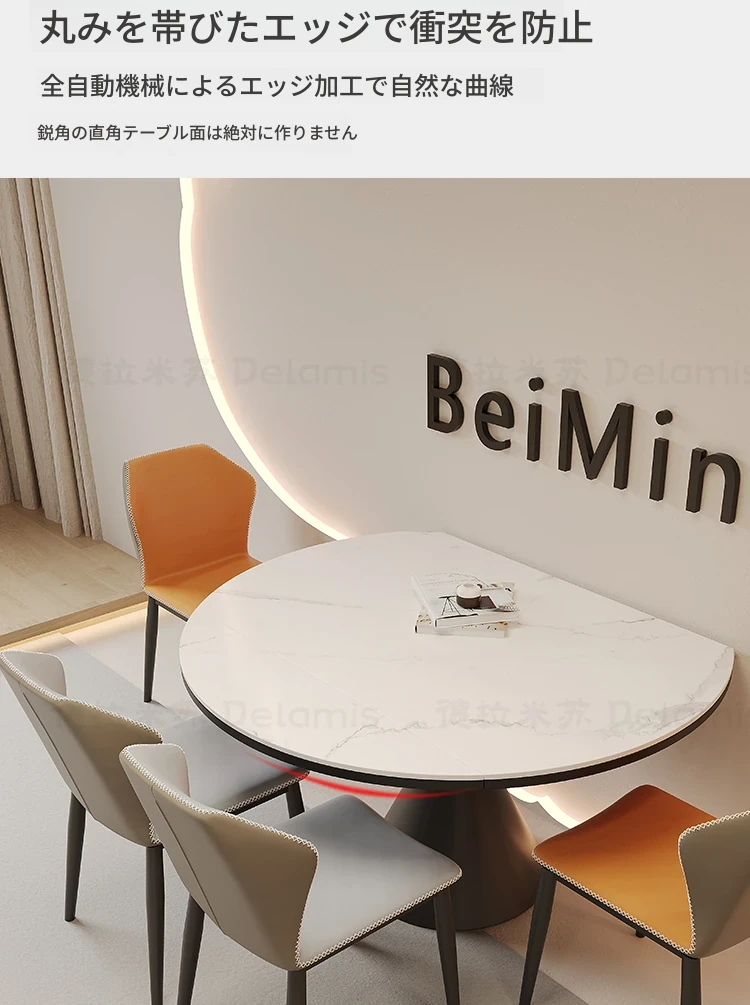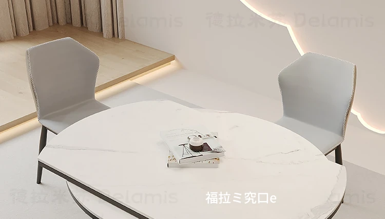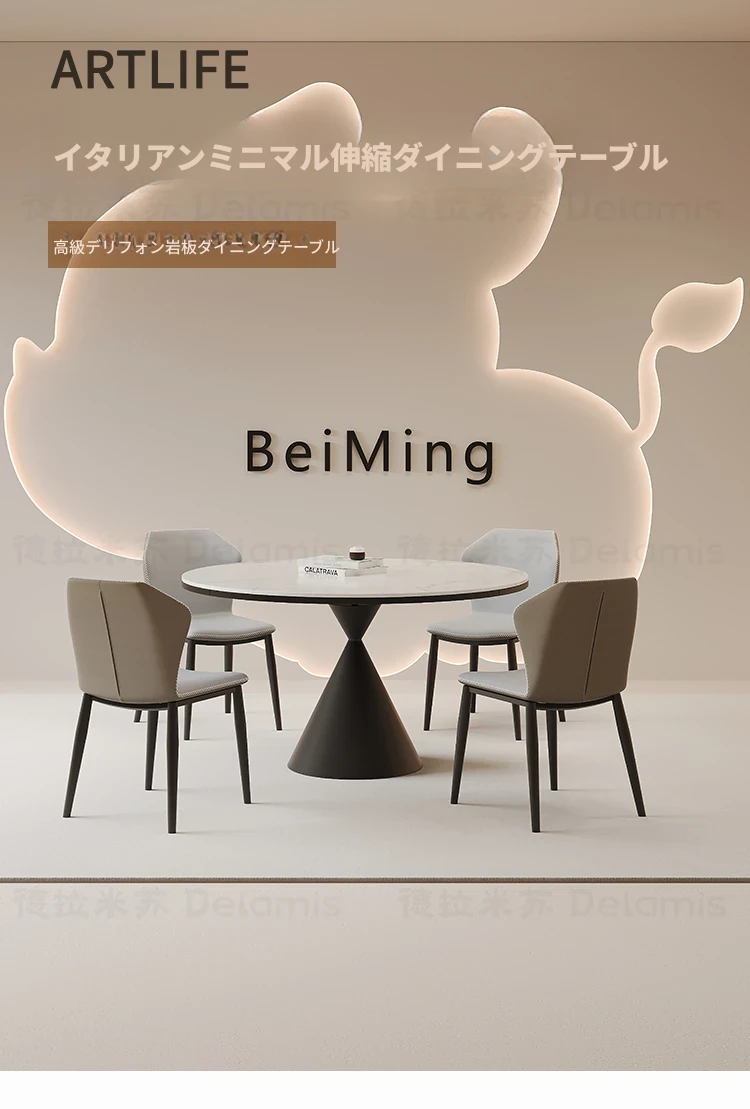 デリフォン回転式伸縮可能なイタリアンミニマリスト高級ラウンドテーブル - 丸型と角型の2WAYデザインで、洗練された食卓を実現!