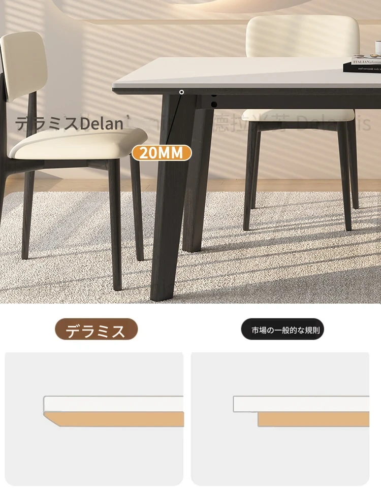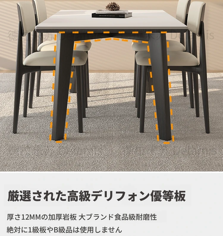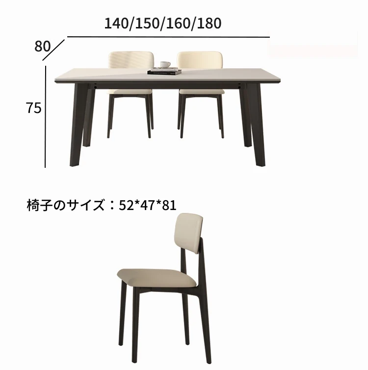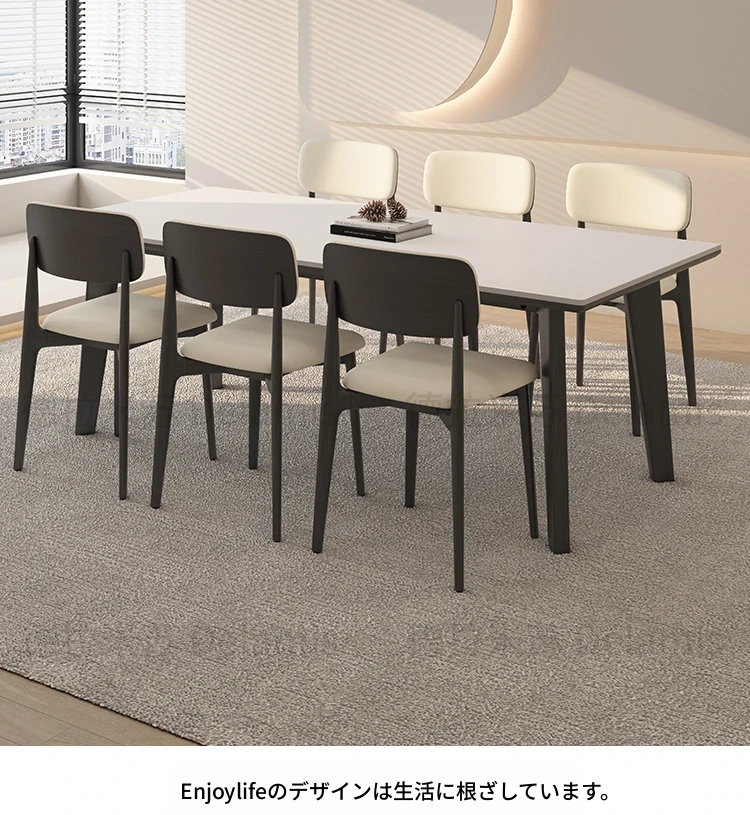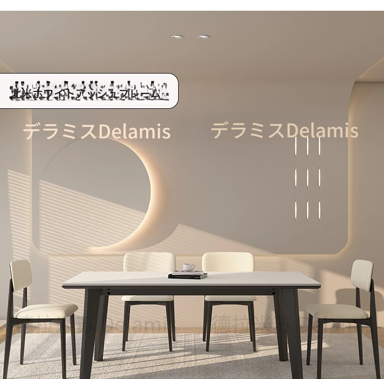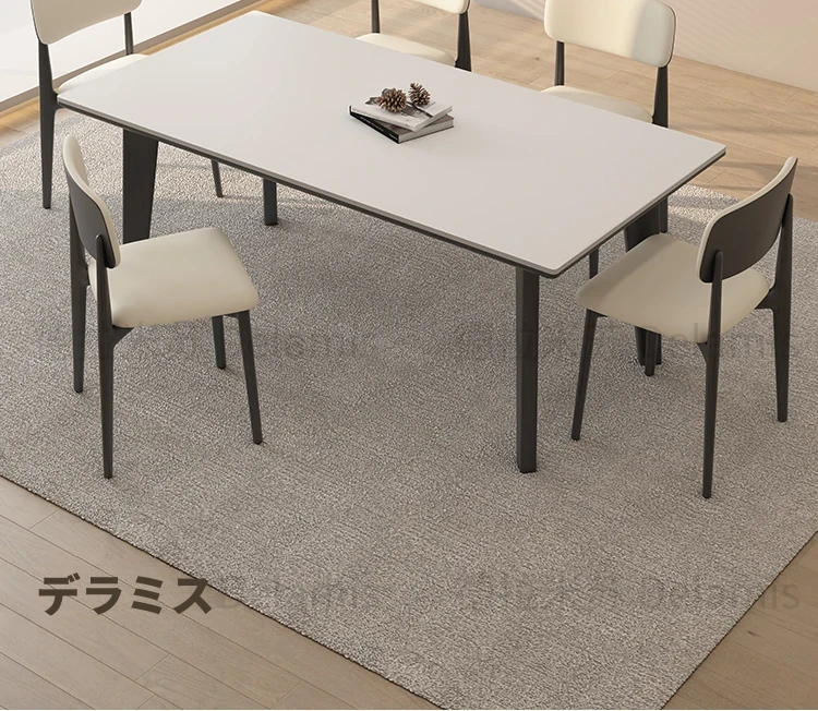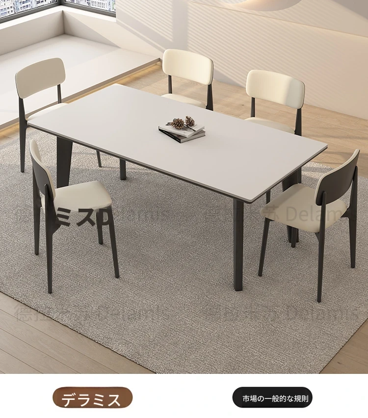デリフォン無垢材ロックボードダイニングテーブル - 家庭用コンパクトサイズのクリーム色シンプルデザイン、スタイリッシュな長方形テーブルでおしゃれな食卓を演出!