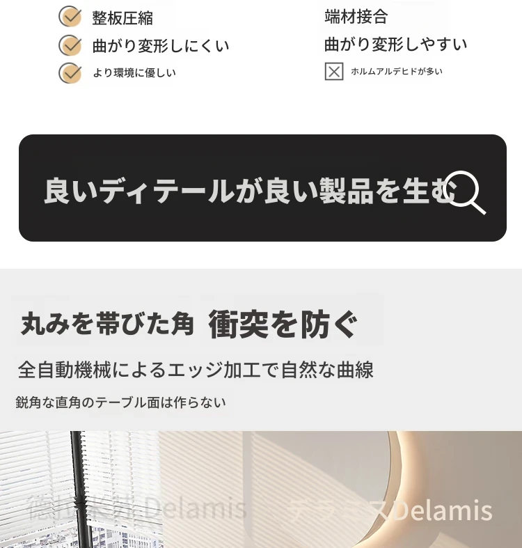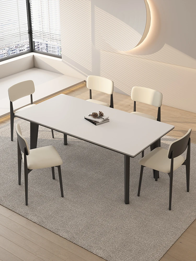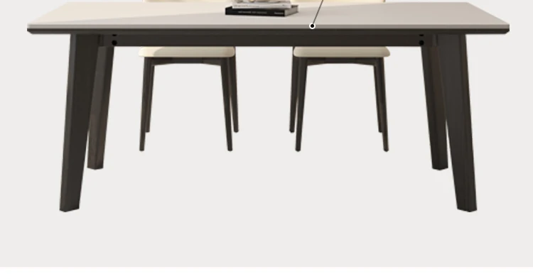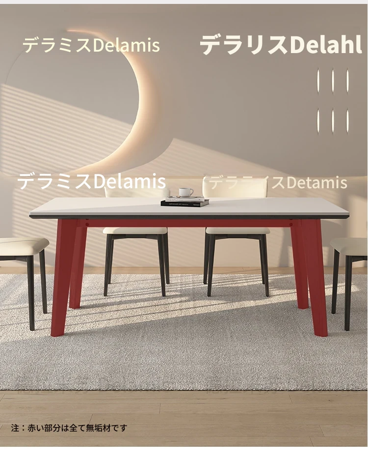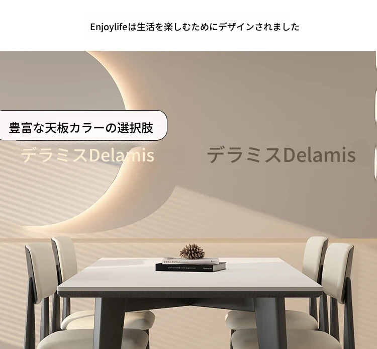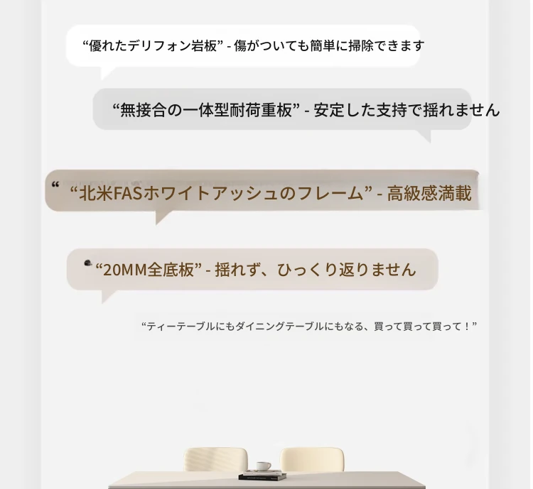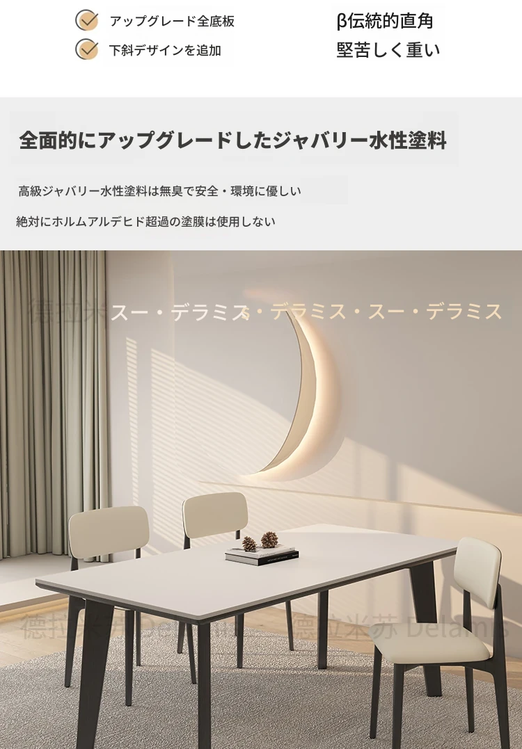 デリフォン無垢材ロックボードダイニングテーブル - 家庭用コンパクトサイズのクリーム色シンプルデザイン、スタイリッシュな長方形テーブルでおしゃれな食卓を演出!