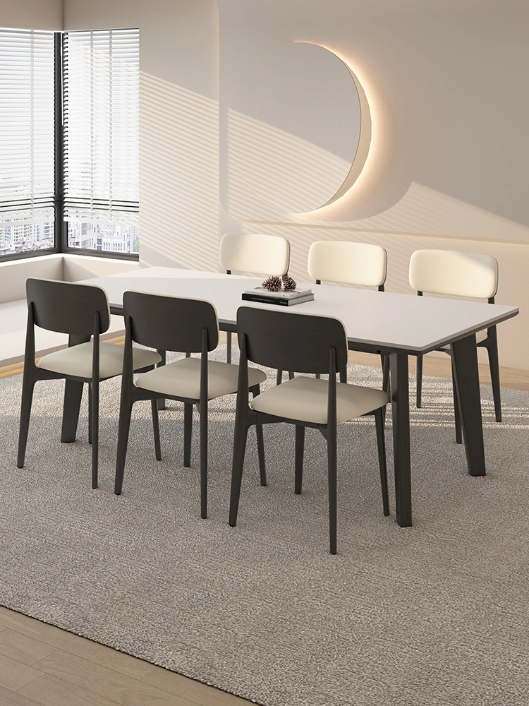 1テーブル8チェア【高級デリフォン岩板+無垢材チェア】