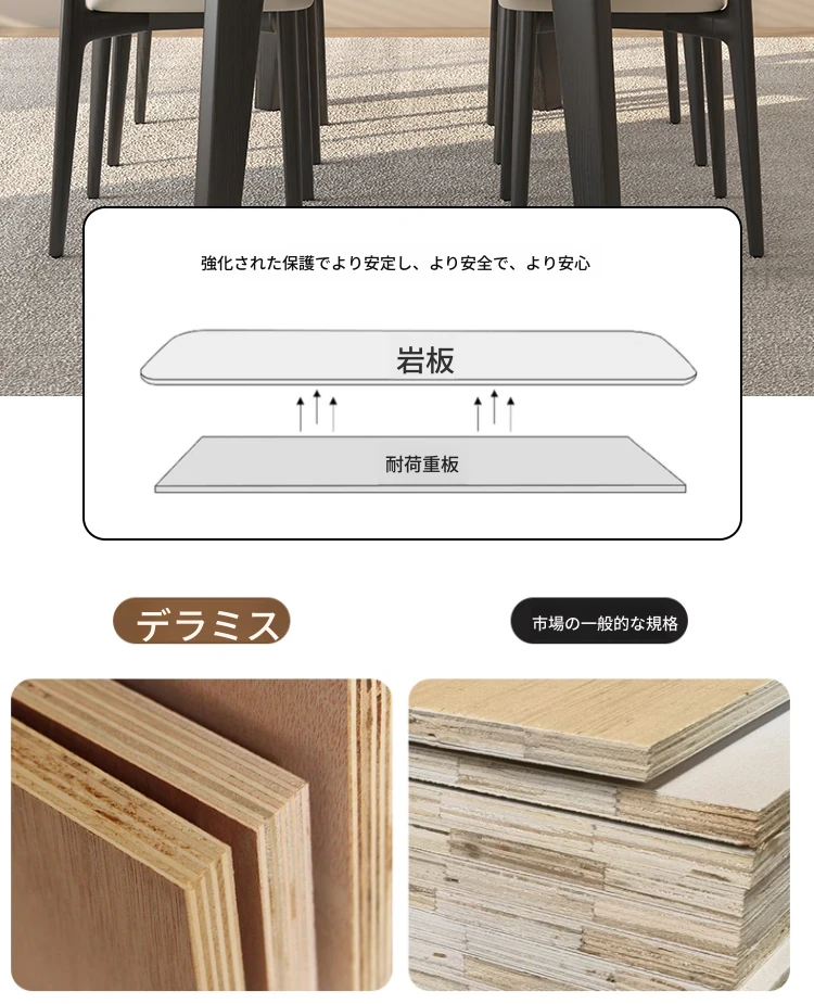 1テーブル6チェア【高級デリフォン岩板+無垢材チェア】