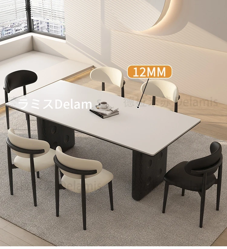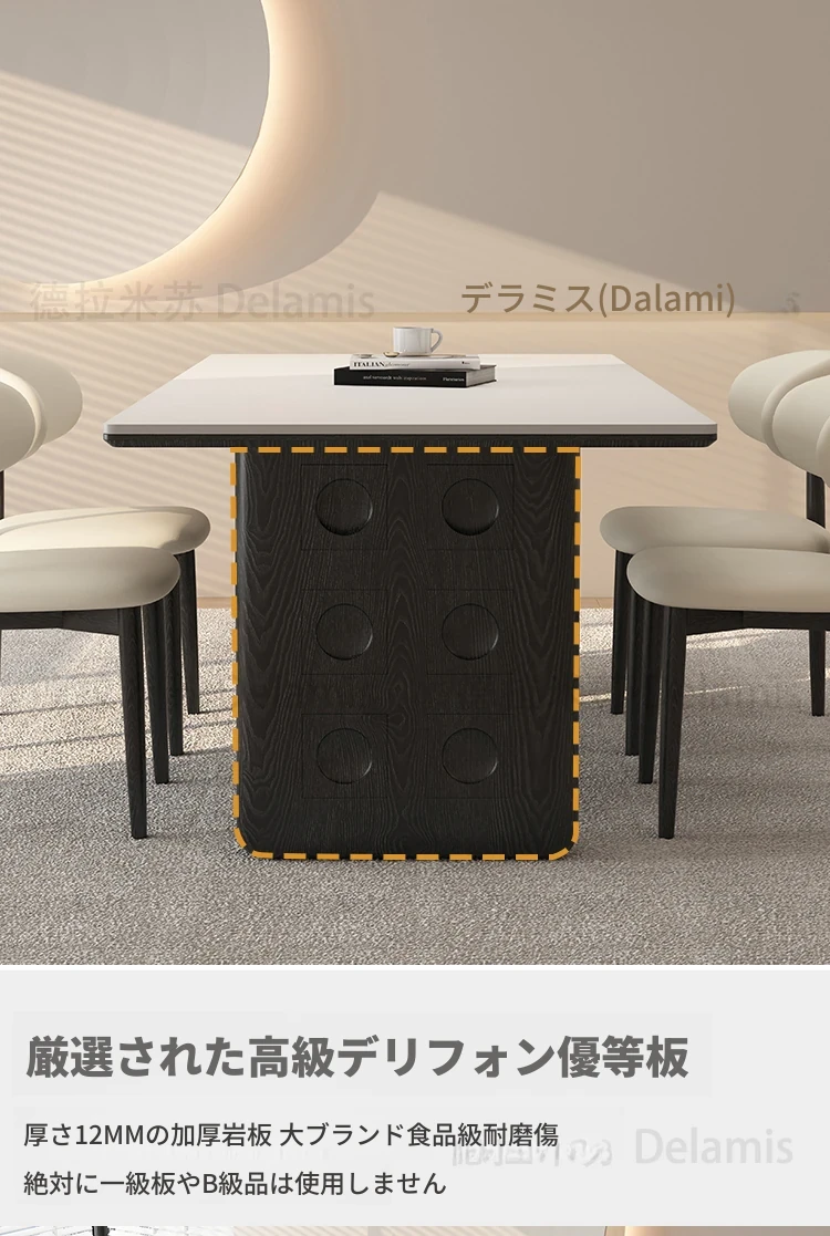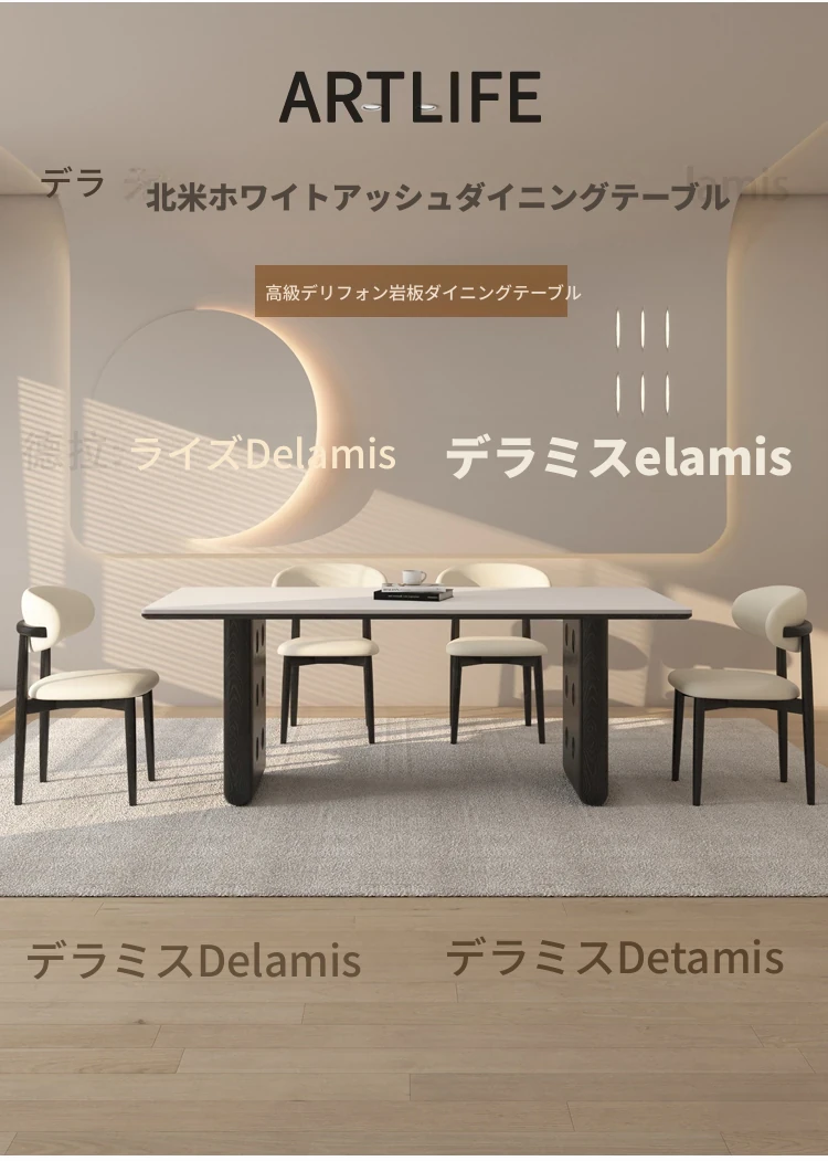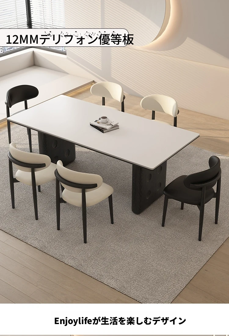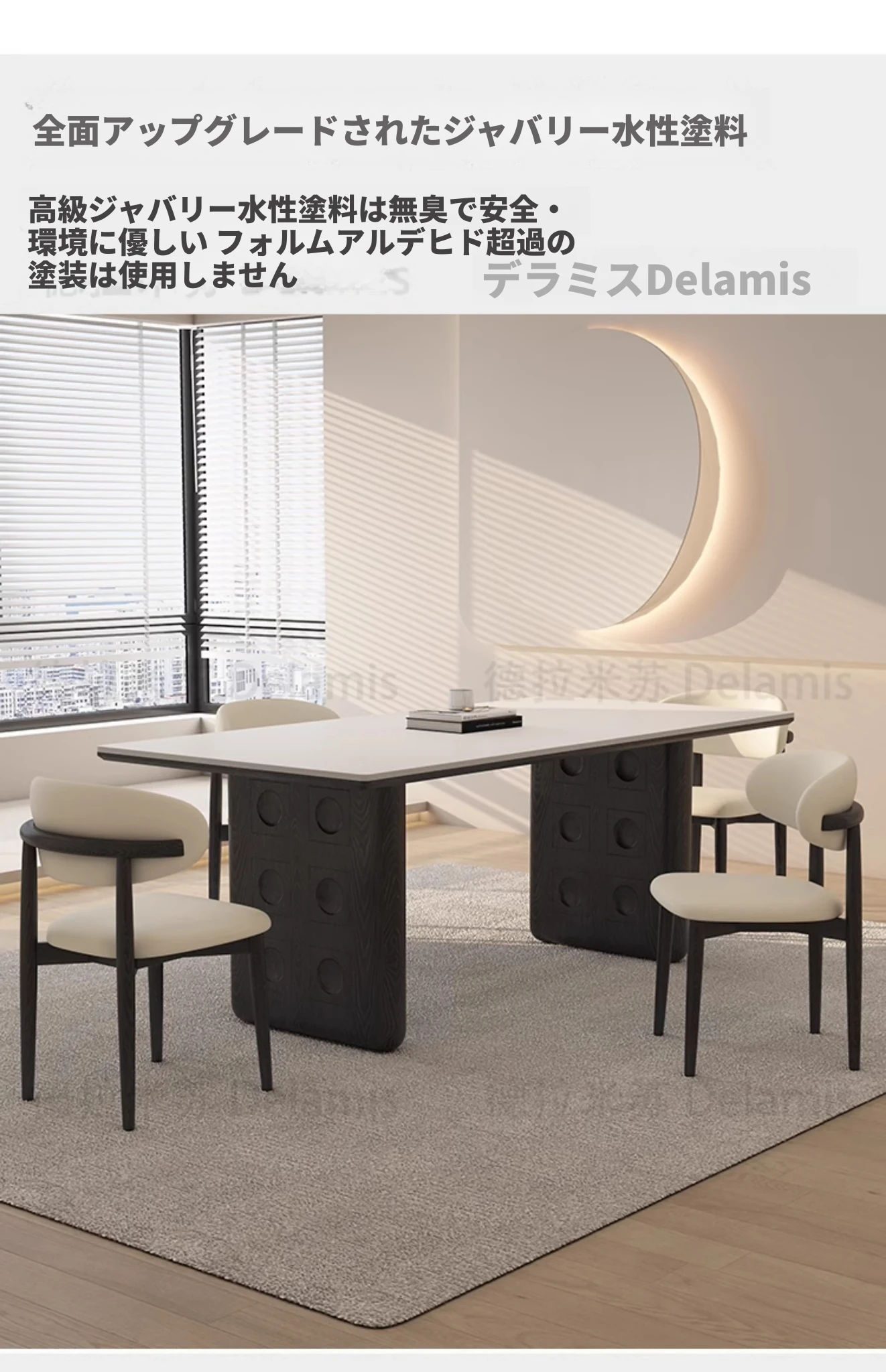 デリフォン無垢材ロックボードダイニングテーブル 家庭用 ブラック ロング レクタングル フレンチクリーム アンティークスタイル 高級全托テーブルで、優雅な食卓を演出します。