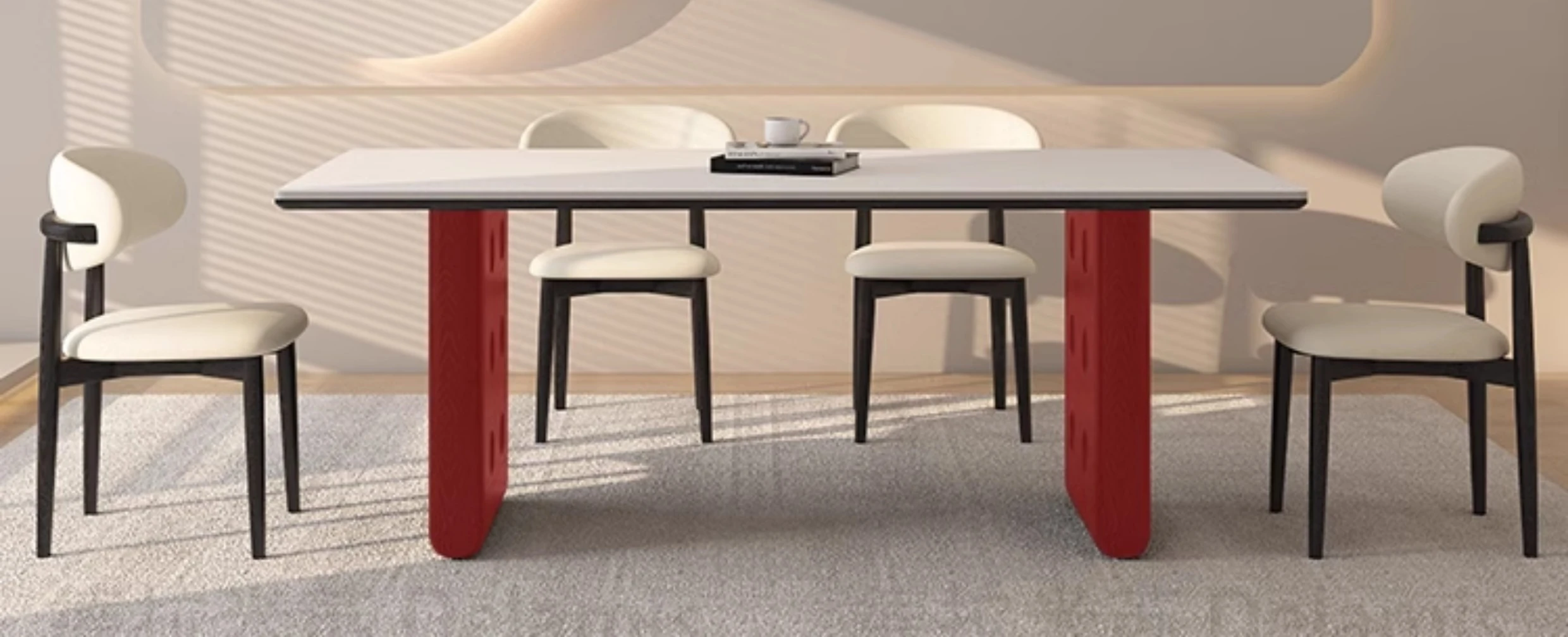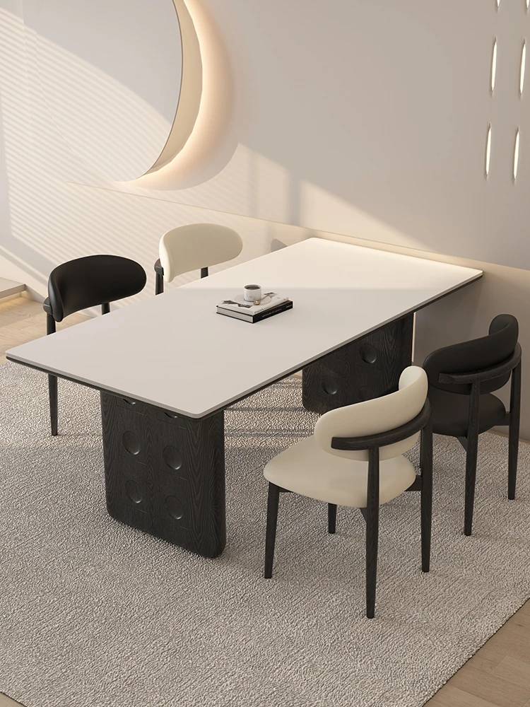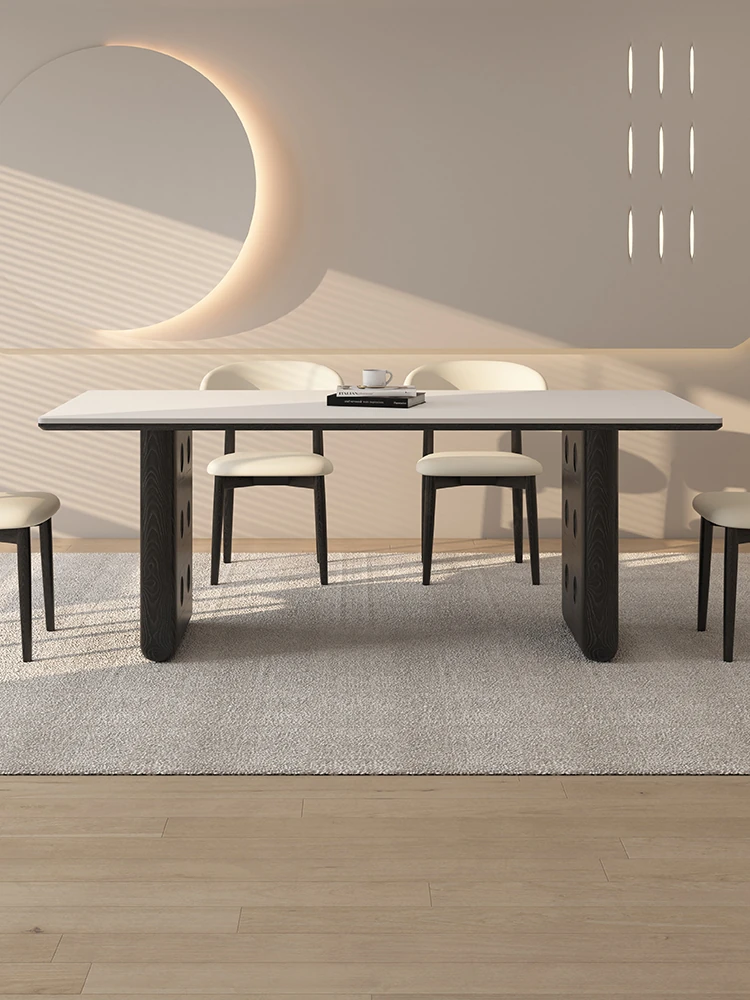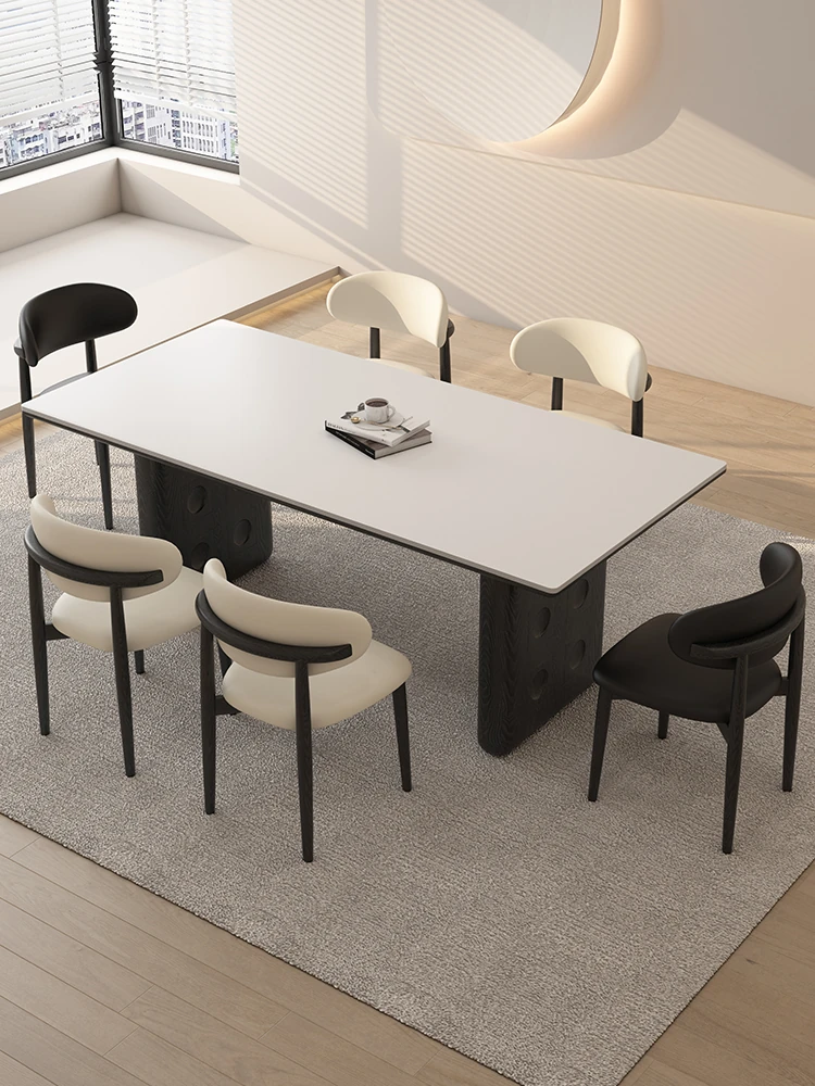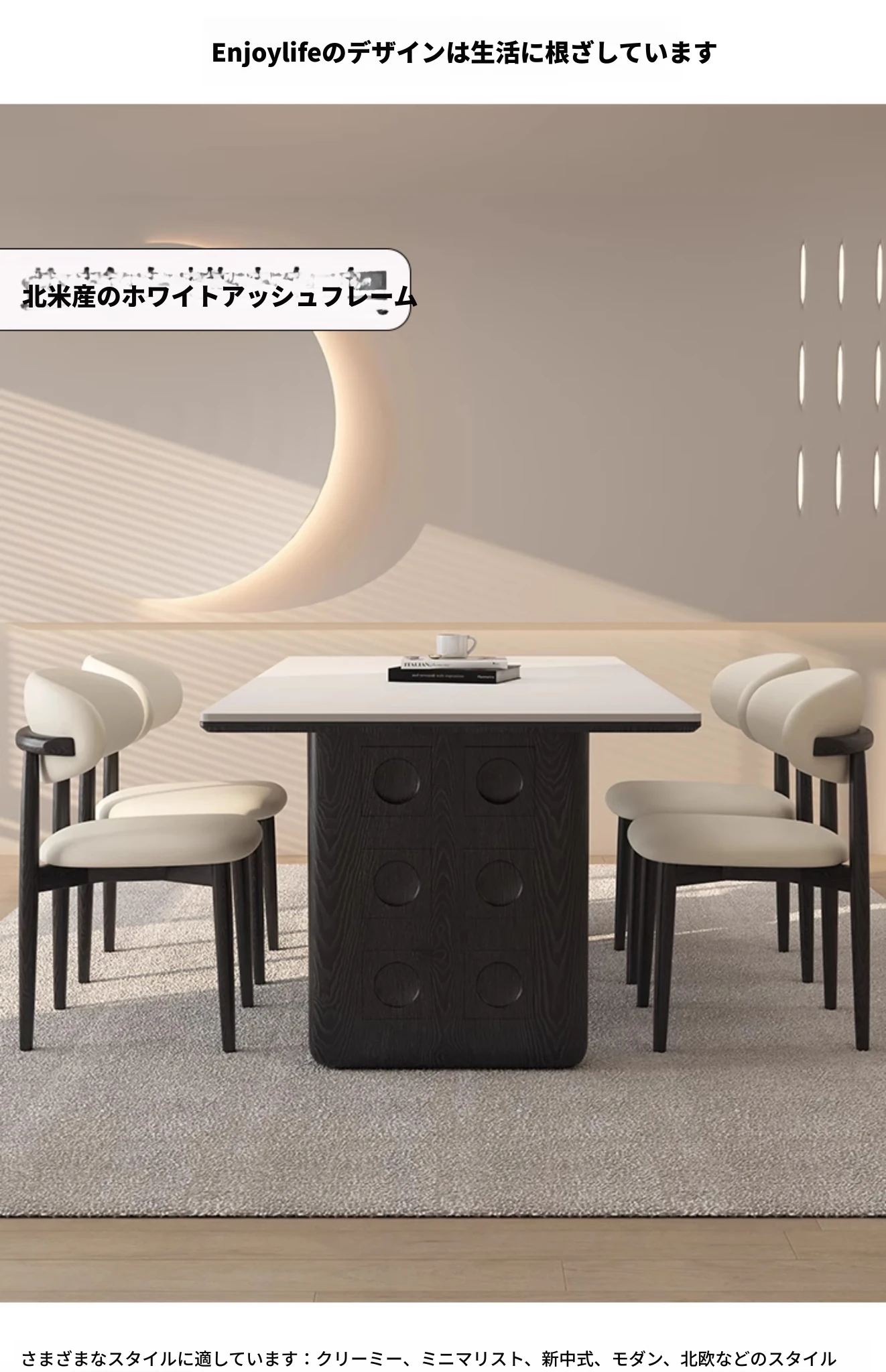 デリフォン無垢材ロックボードダイニングテーブル 家庭用 ブラック ロング レクタングル フレンチクリーム アンティークスタイル 高級全托テーブルで、優雅な食卓を演出します。
