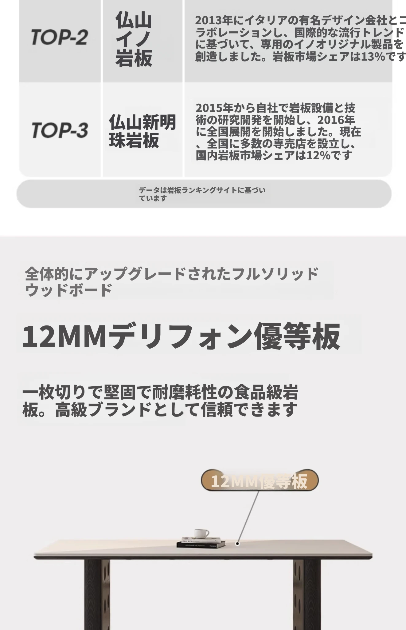 1.8メートル+ダイニングチェア*6【高級デリフォン岩板】