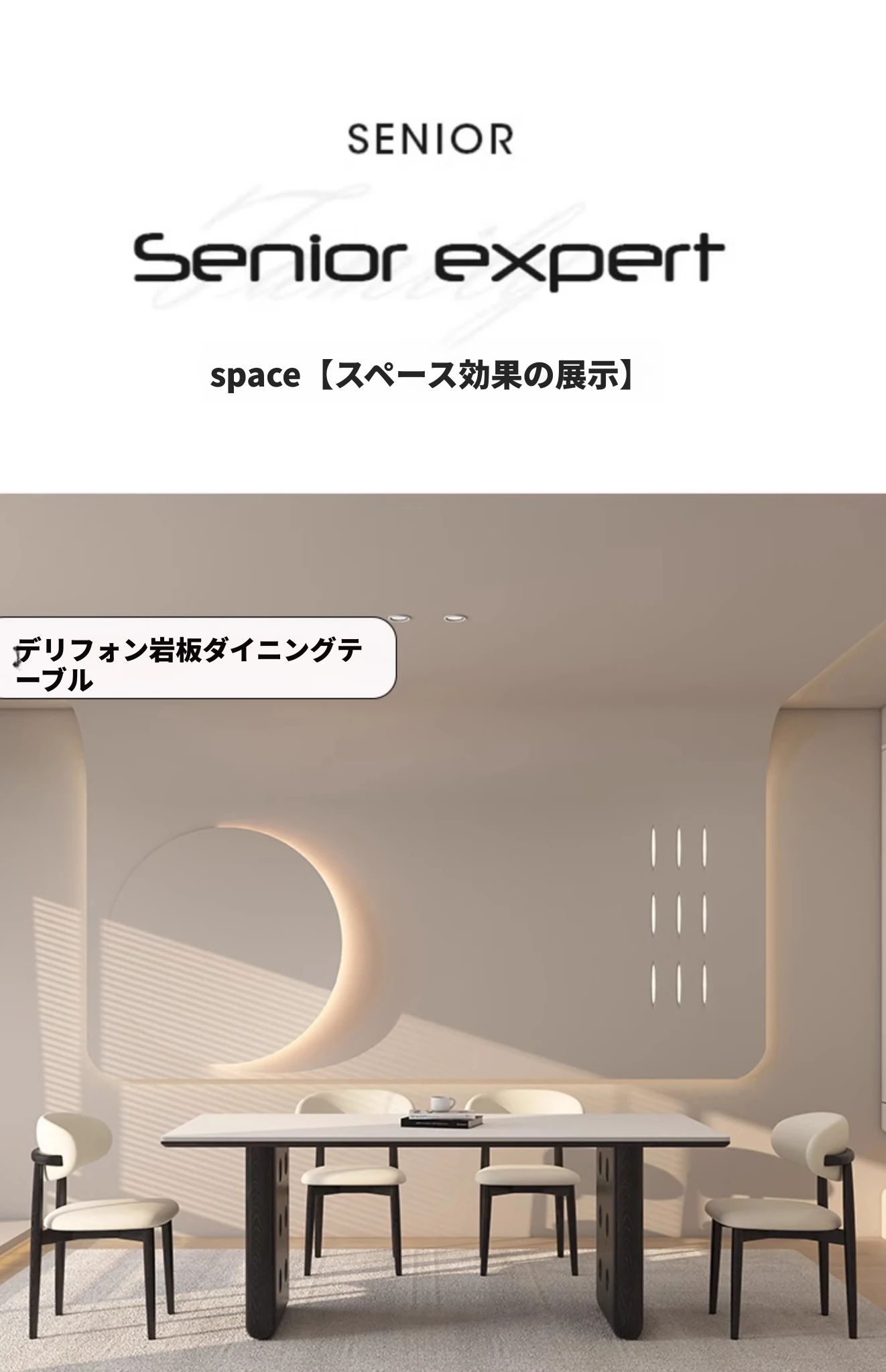 1.5メートル+ダイニングチェア*6【高級デリフォン岩板】