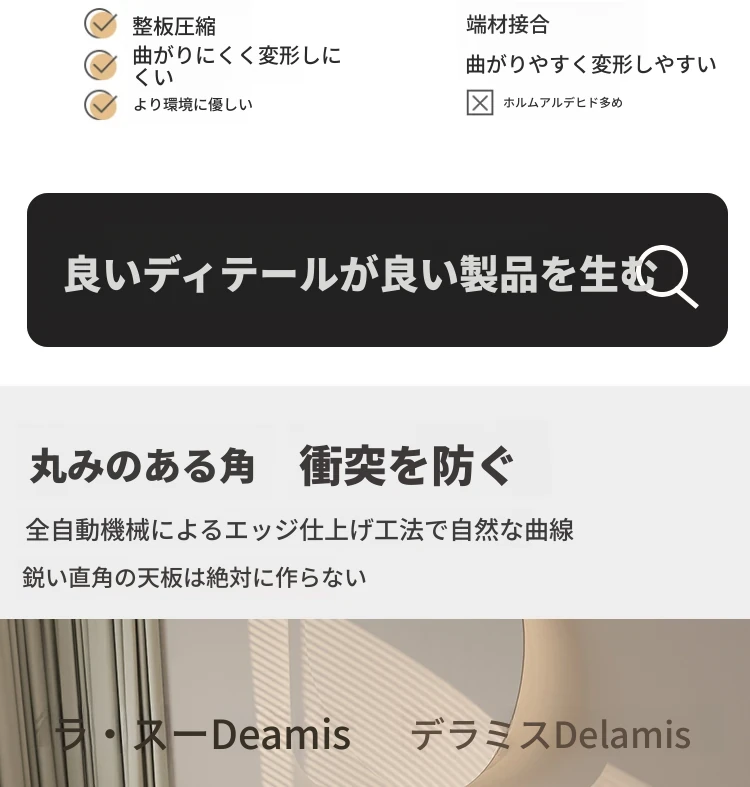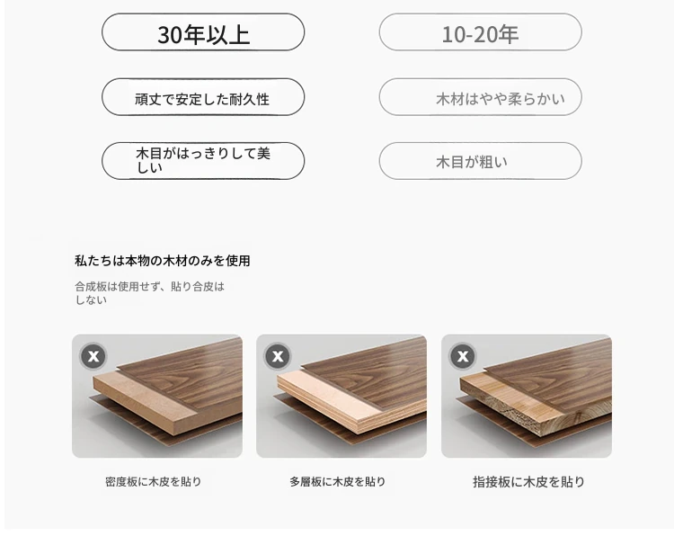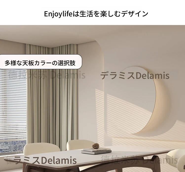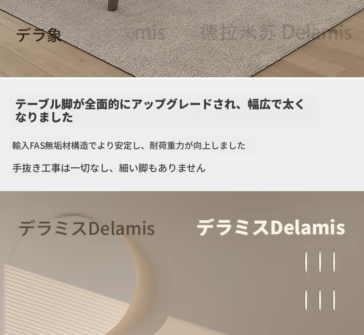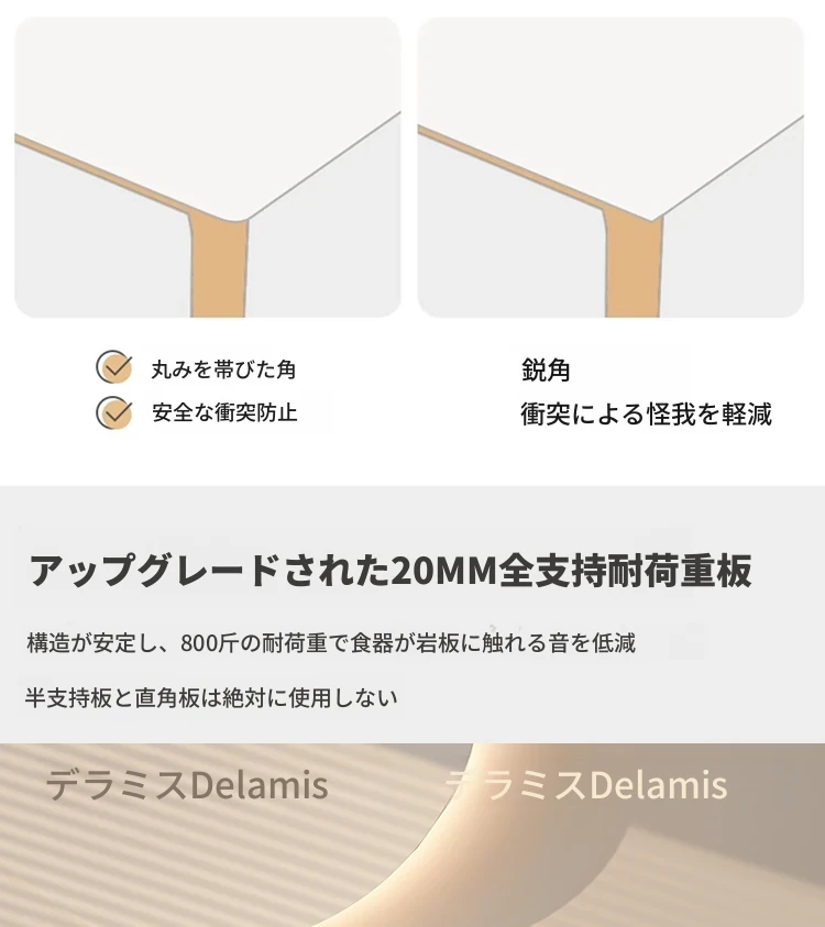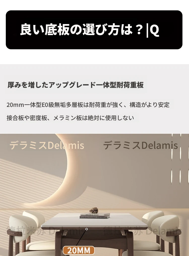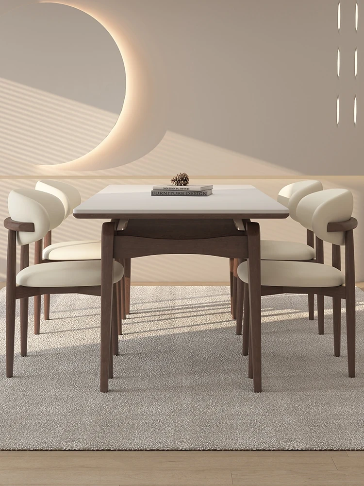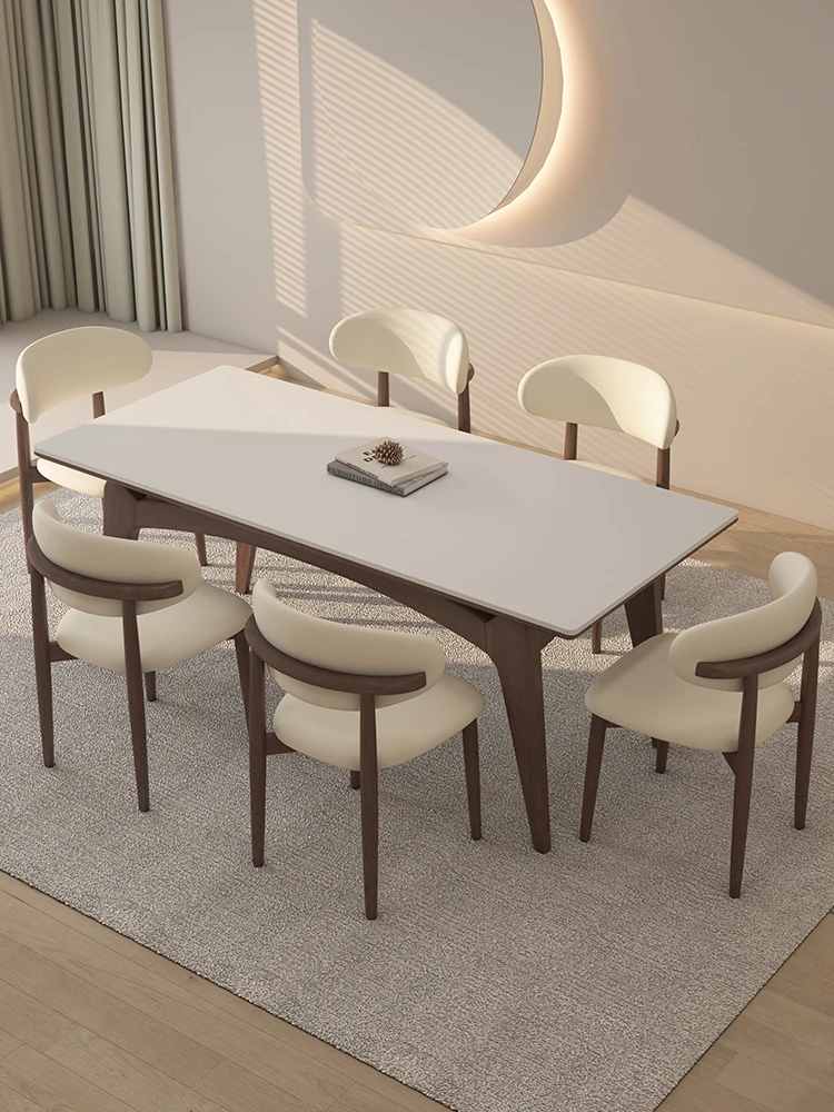 デリフォンの無垢材ロックボードダイニングテーブル - 家庭用・小型住宅向けのモダンでシンプルな高級長方形テーブル。自然な木の温もりを感じながら、食事を楽しむ特別な空間を演出します。