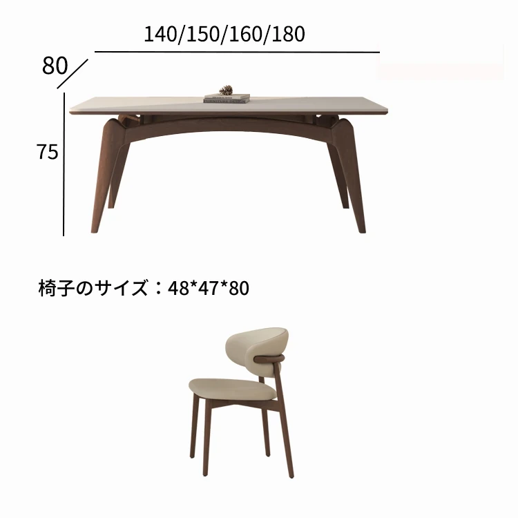 一卓六椅子【高級デリフォンストーンテーブル+無垢材椅子】