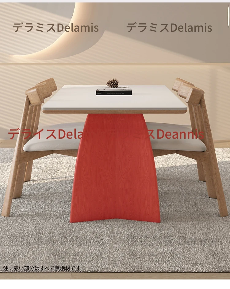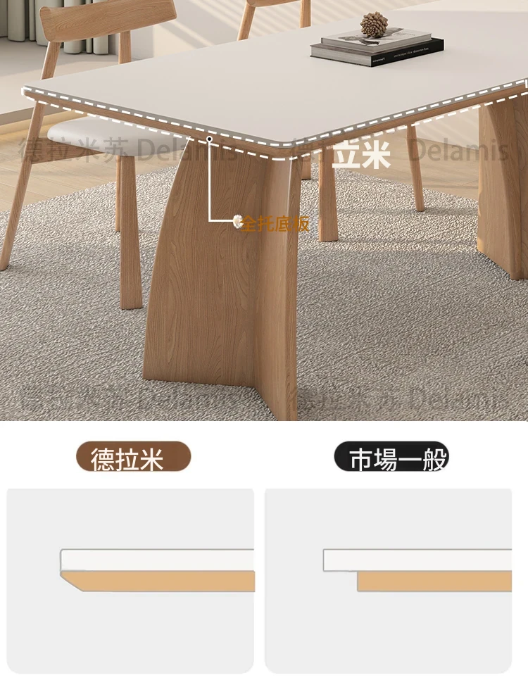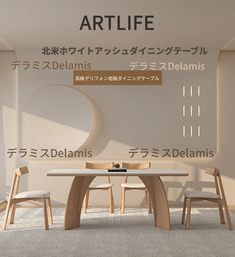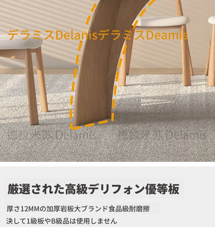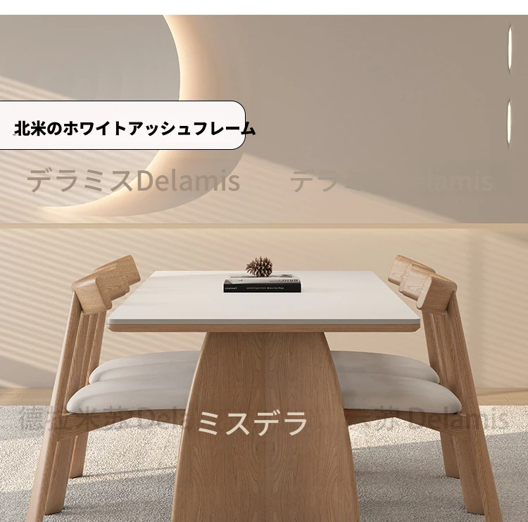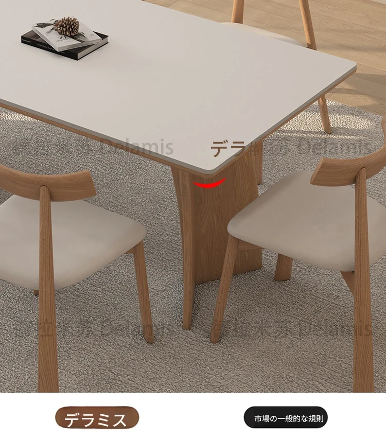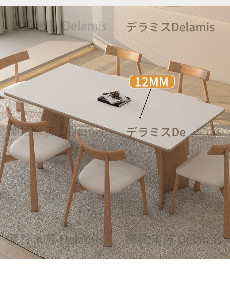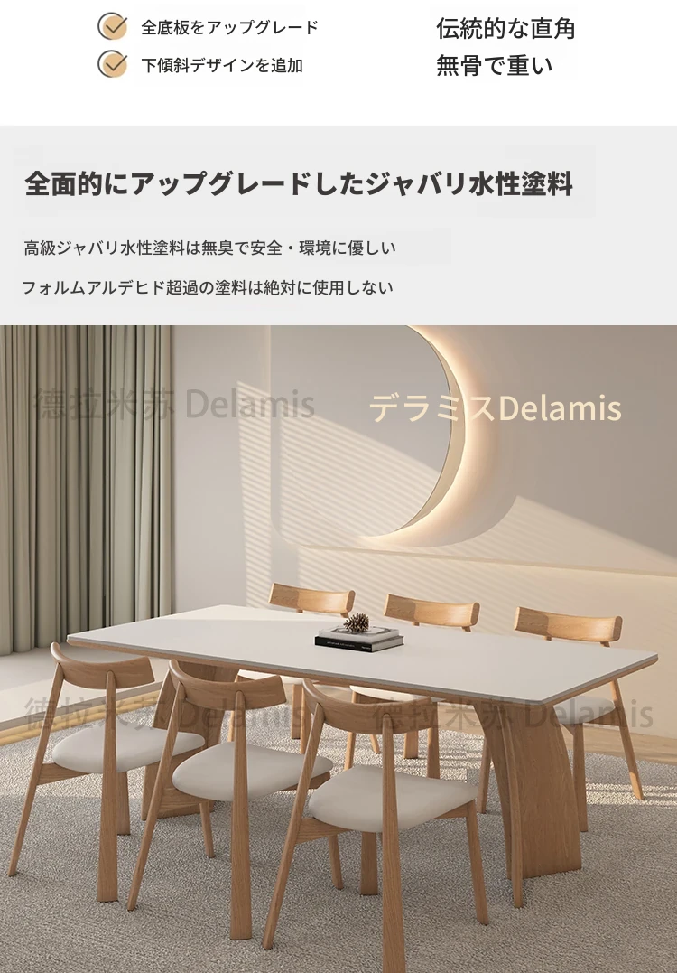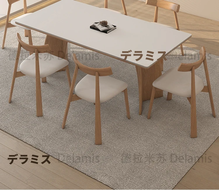デリフォン高級無垢材ロックボードダイニングテーブル|フレンチクリームスタイルのナチュラルウッドデザイン|エレガントな長方形|家庭用に最適!デザイナーが手がけた一品で、あなたの食卓を華やかに演出します。