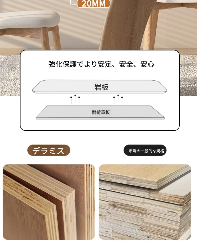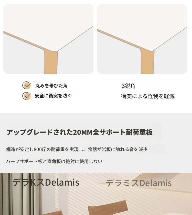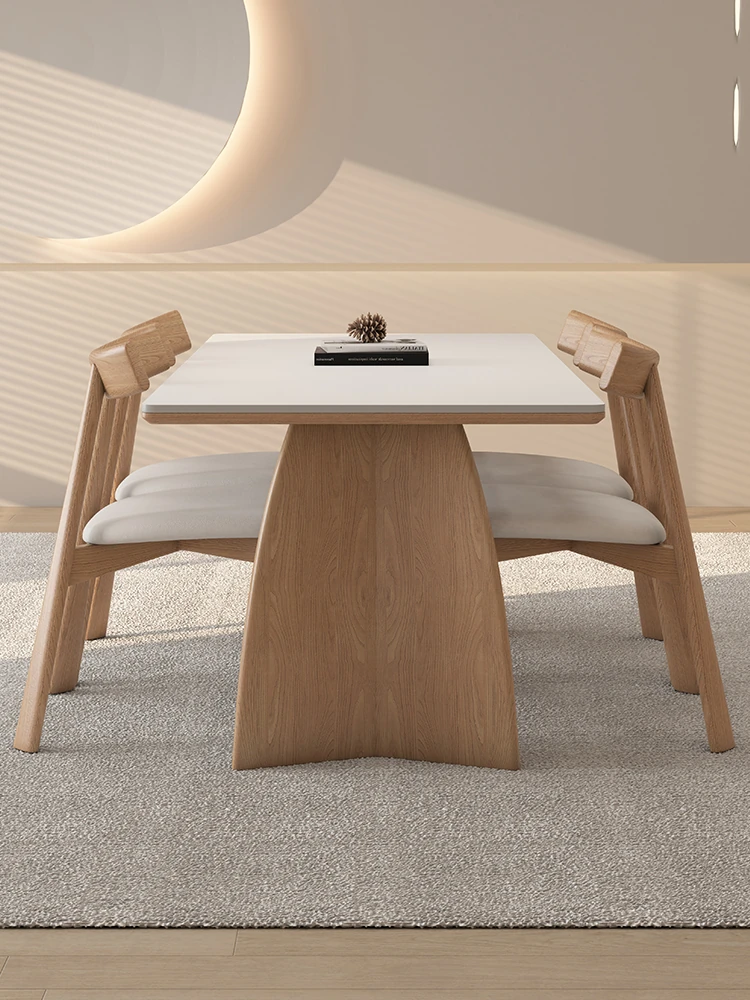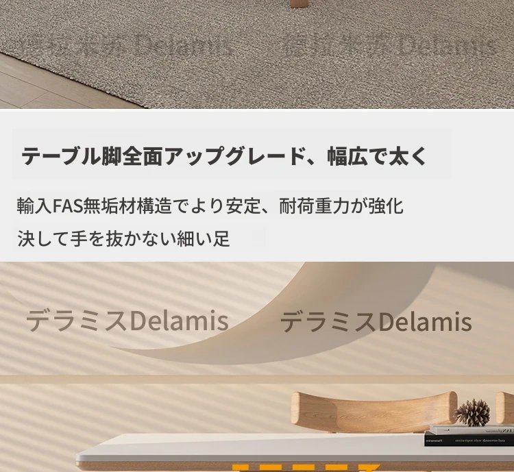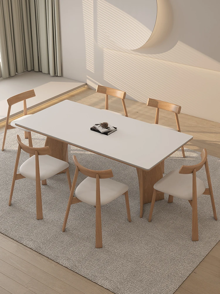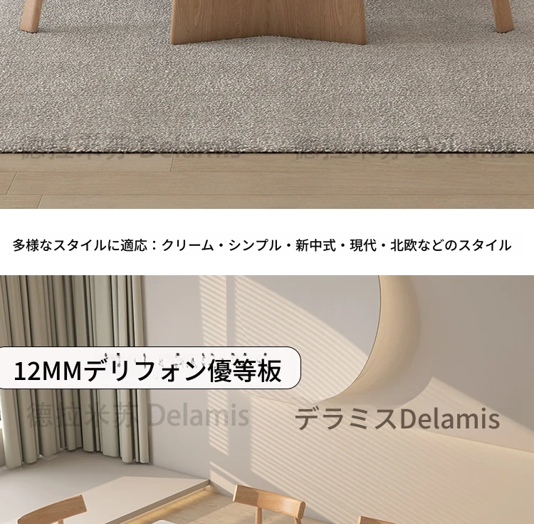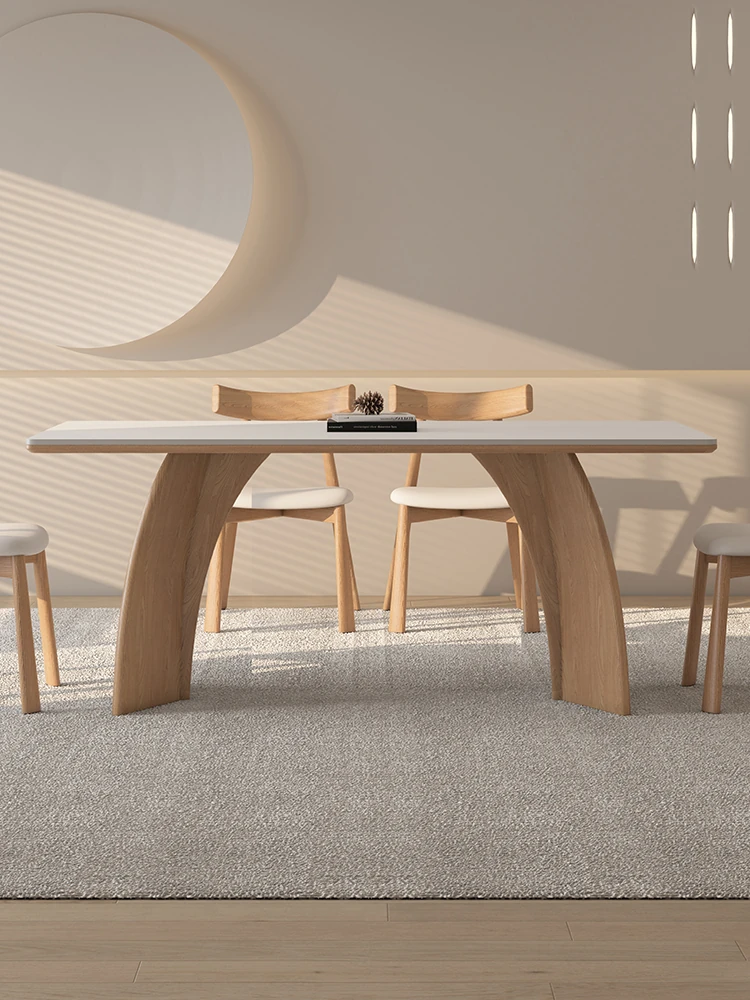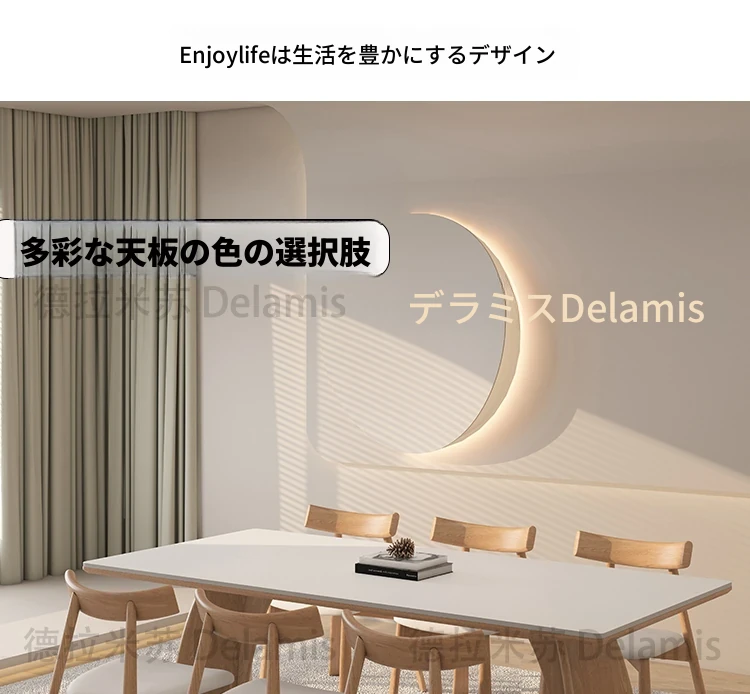 デリフォン高級無垢材ロックボードダイニングテーブル|フレンチクリームスタイルのナチュラルウッドデザイン|エレガントな長方形|家庭用に最適!デザイナーが手がけた一品で、あなたの食卓を華やかに演出します。