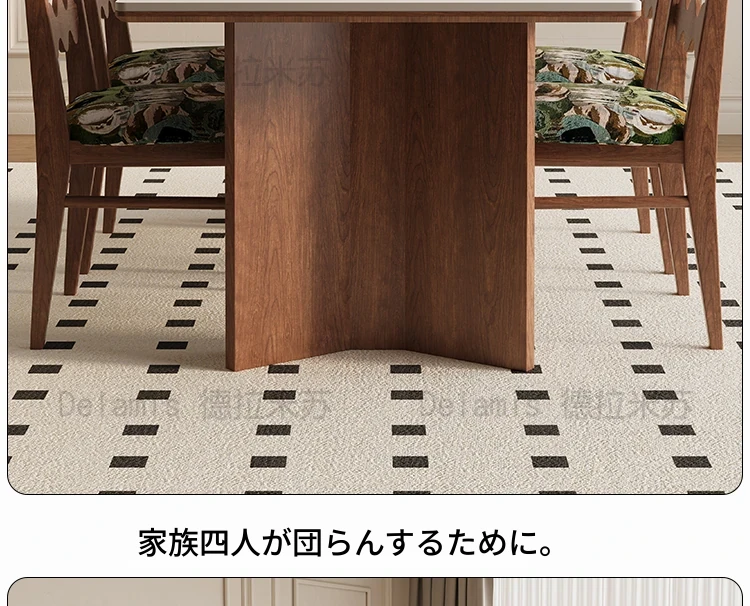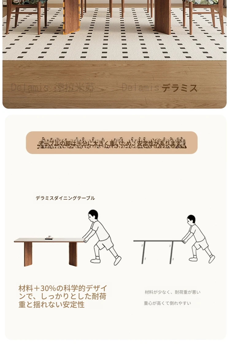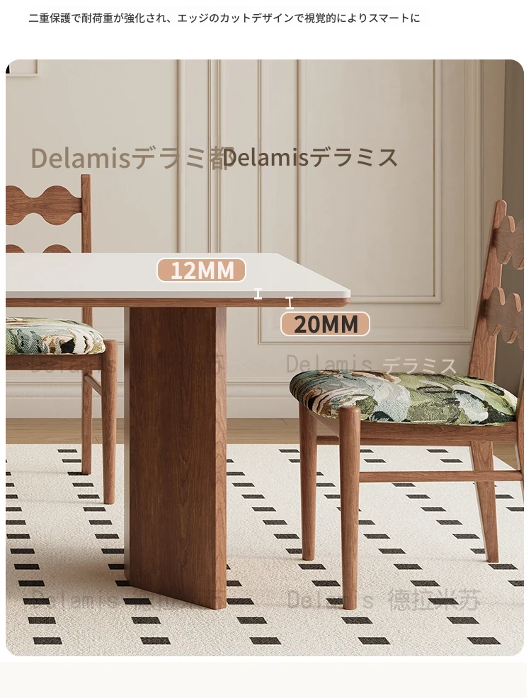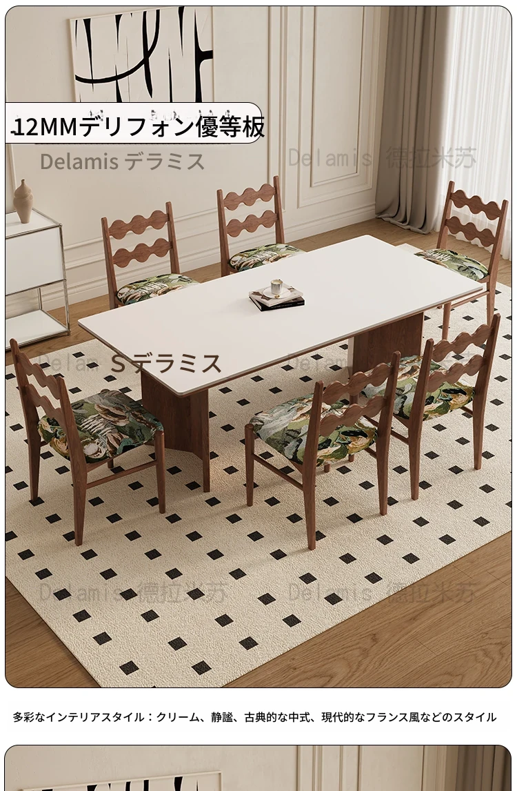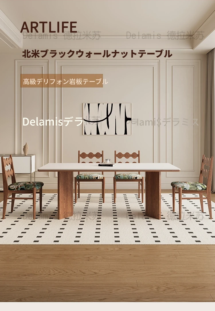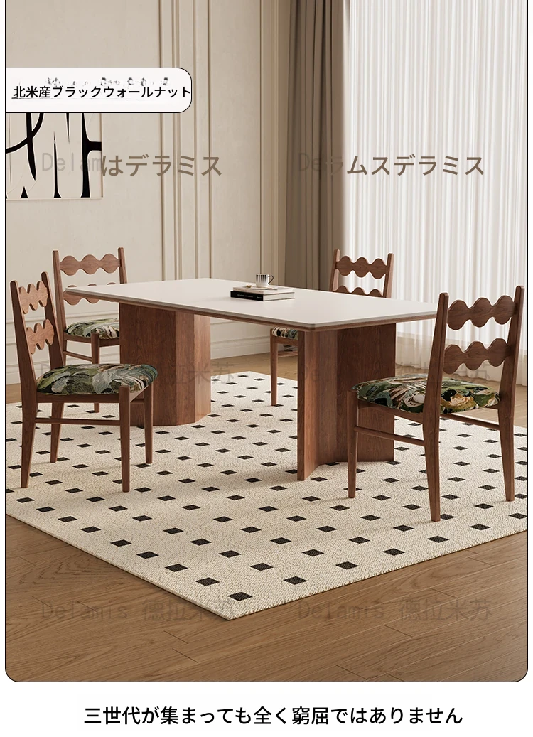 デリフォン無垢材ロックボードダイニングテーブル 小型家庭向け ブラックウォールナット フレンチスタイル 高級長方形テーブル 食事を楽しむための完璧な選択!