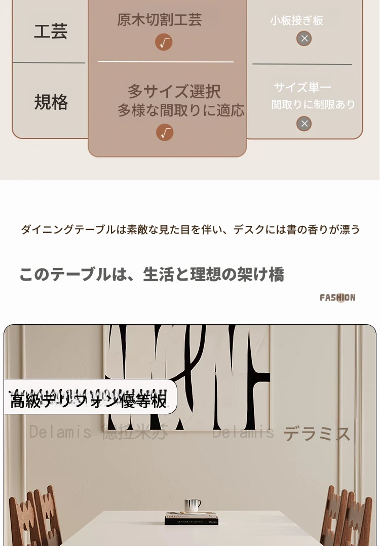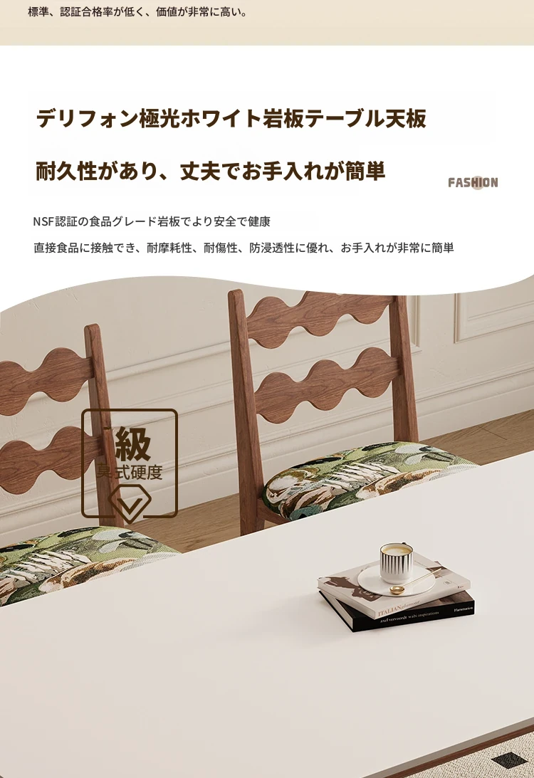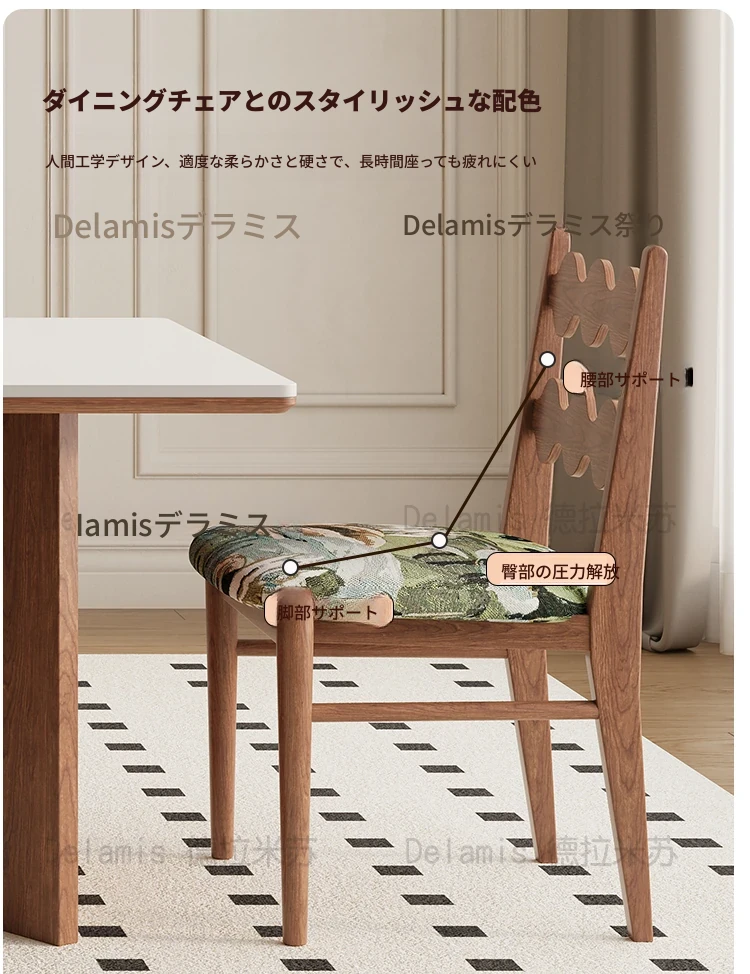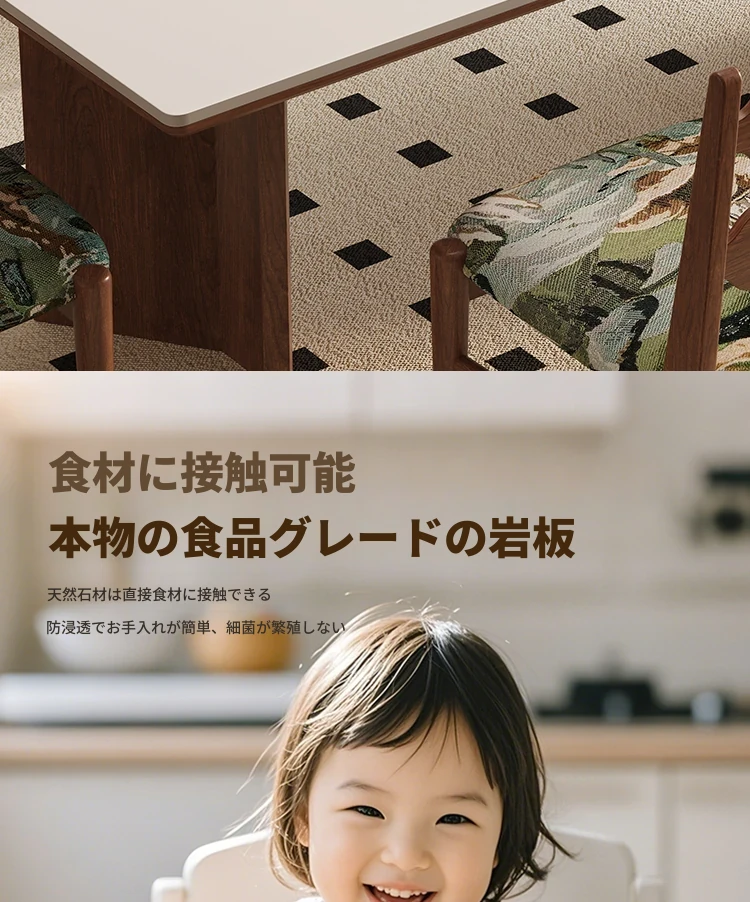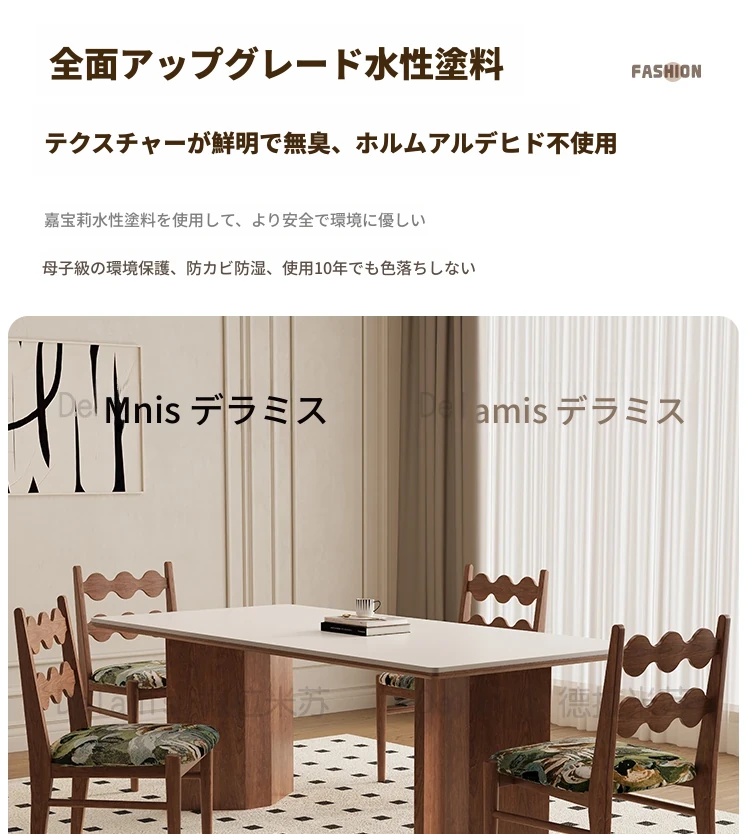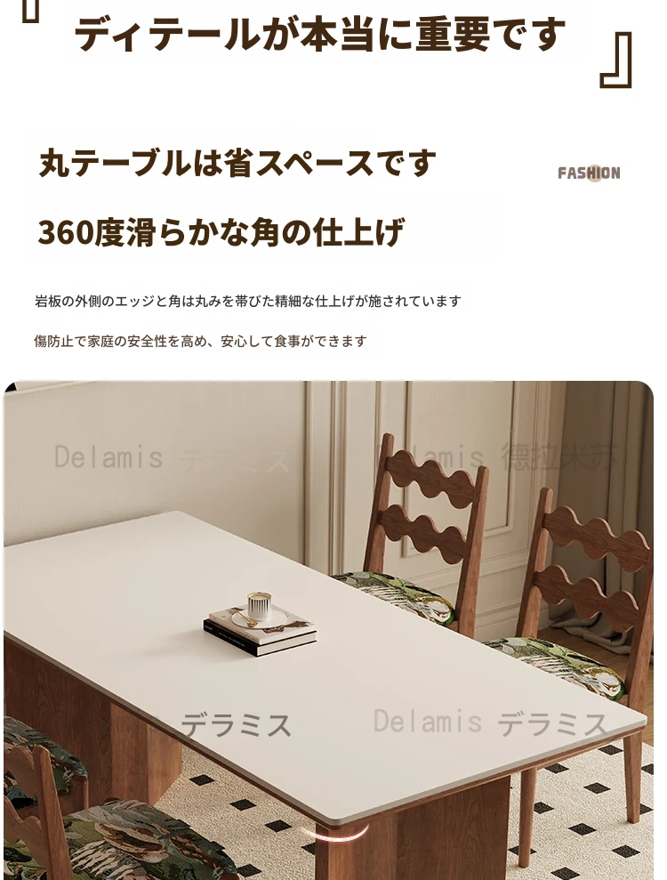 デリフォン無垢材ロックボードダイニングテーブル 小型家庭向け ブラックウォールナット フレンチスタイル 高級長方形テーブル 食事を楽しむための完璧な選択!