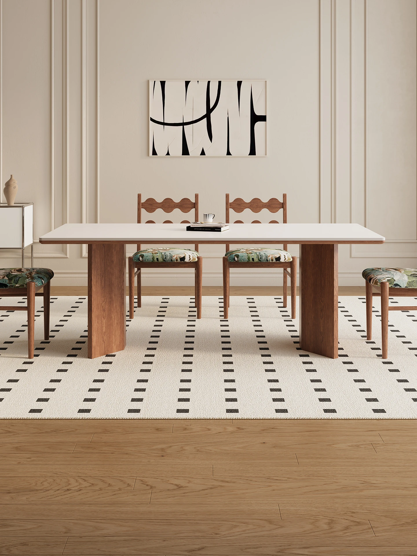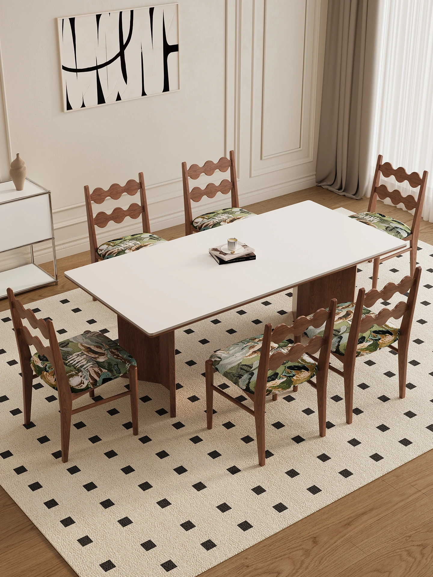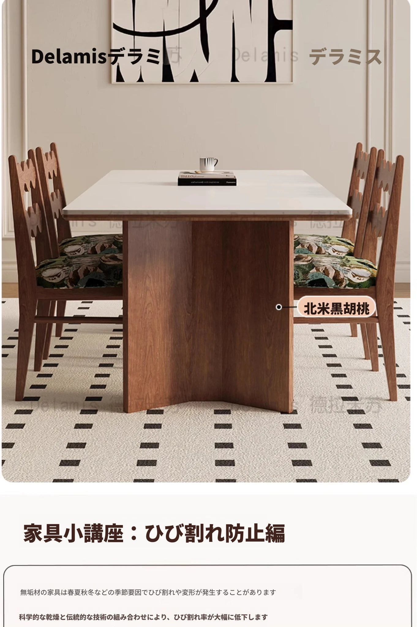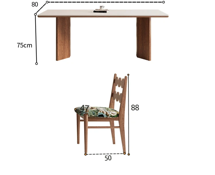 デリフォン無垢材ロックボードダイニングテーブル 小型家庭向け ブラックウォールナット フレンチスタイル 高級長方形テーブル 食事を楽しむための完璧な選択!