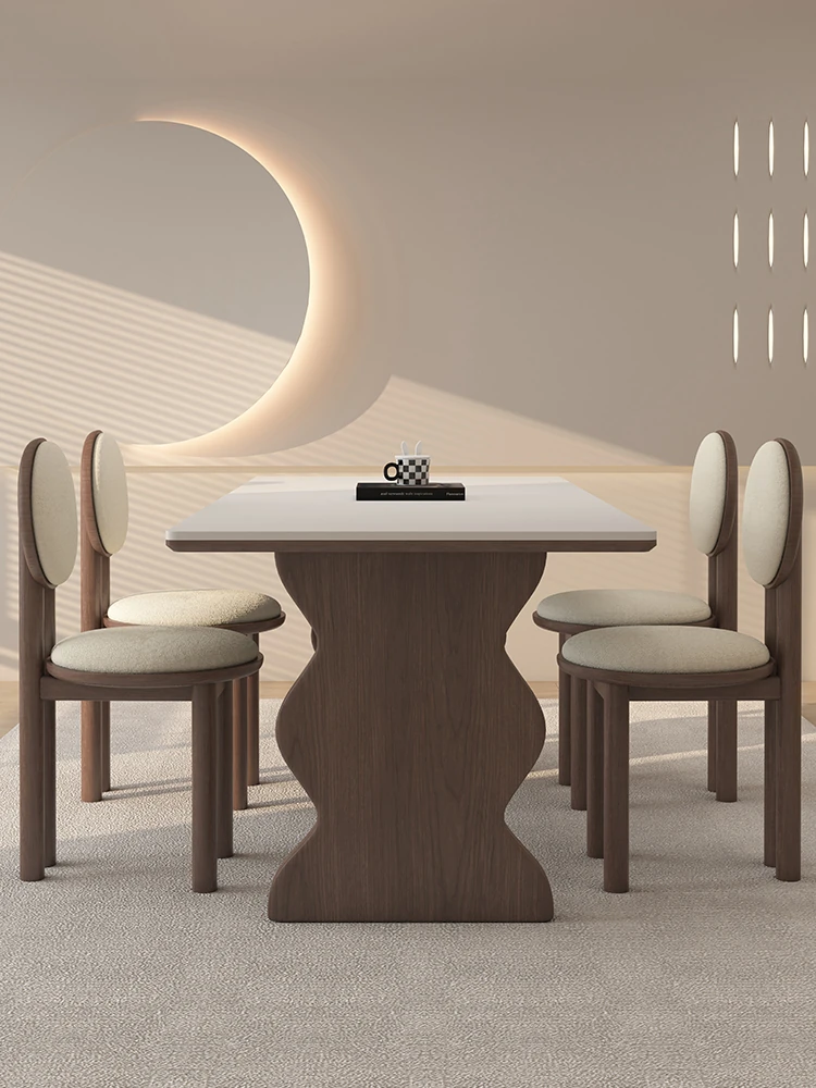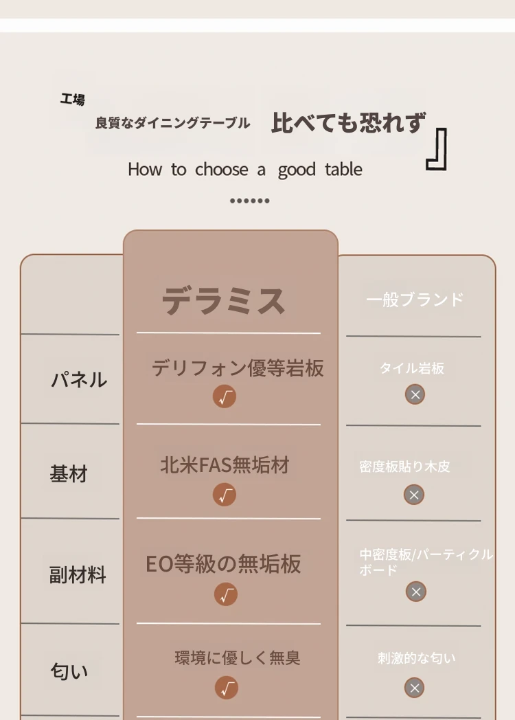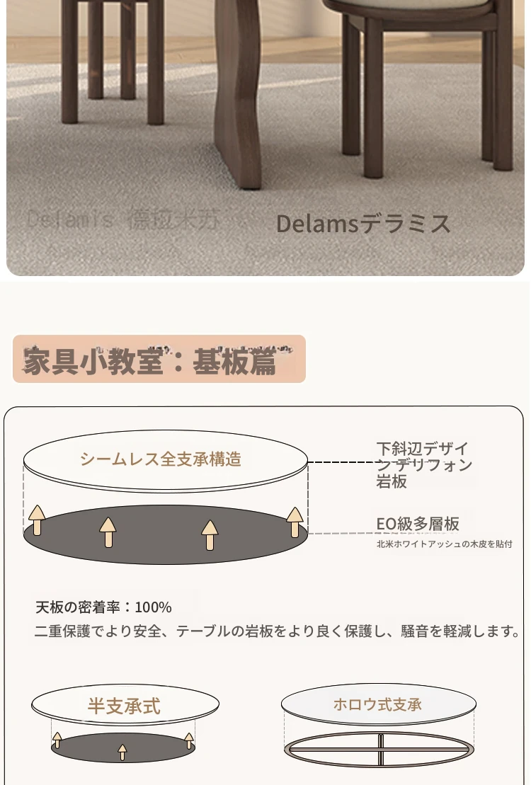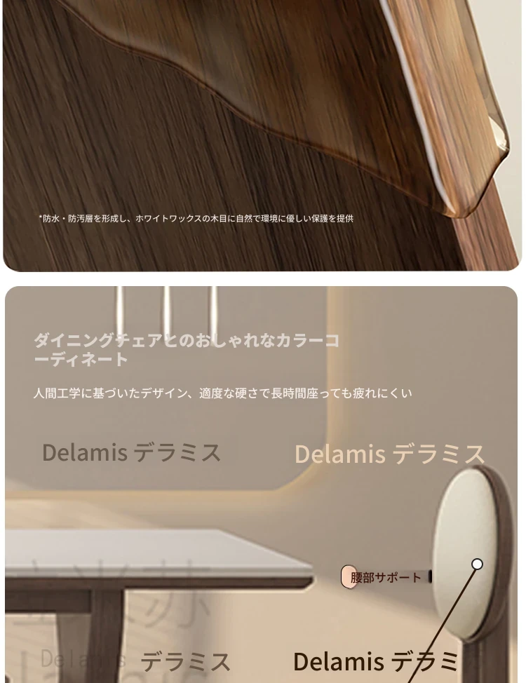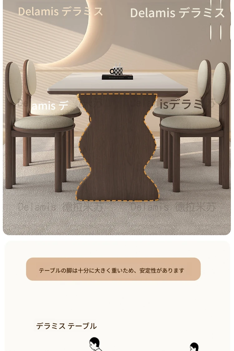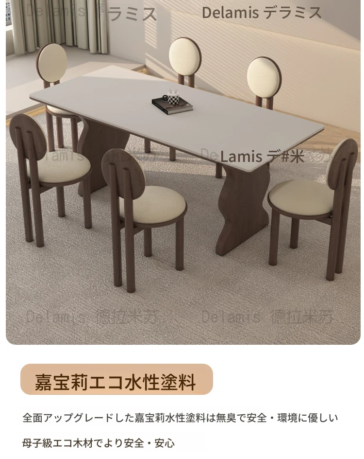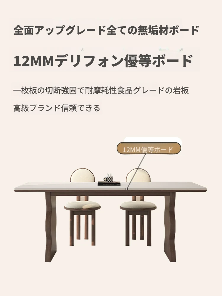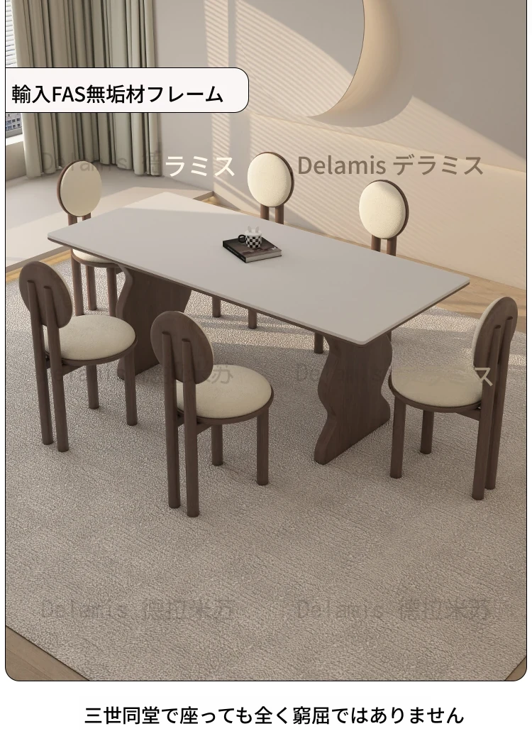 1.5*0.8メートル【高級デリフォン岩板】+無垢材ダイニングチェア*6