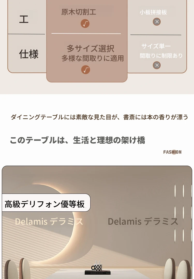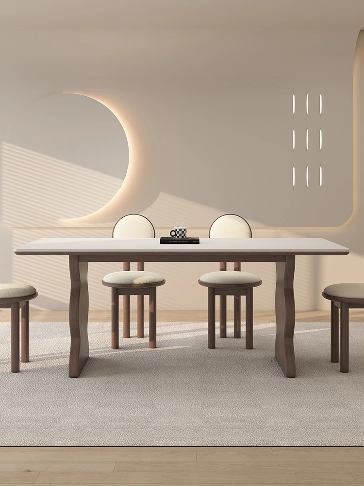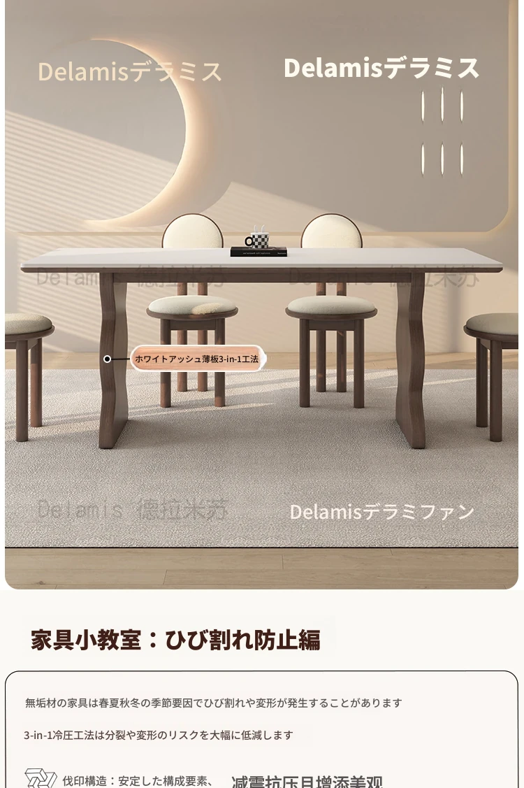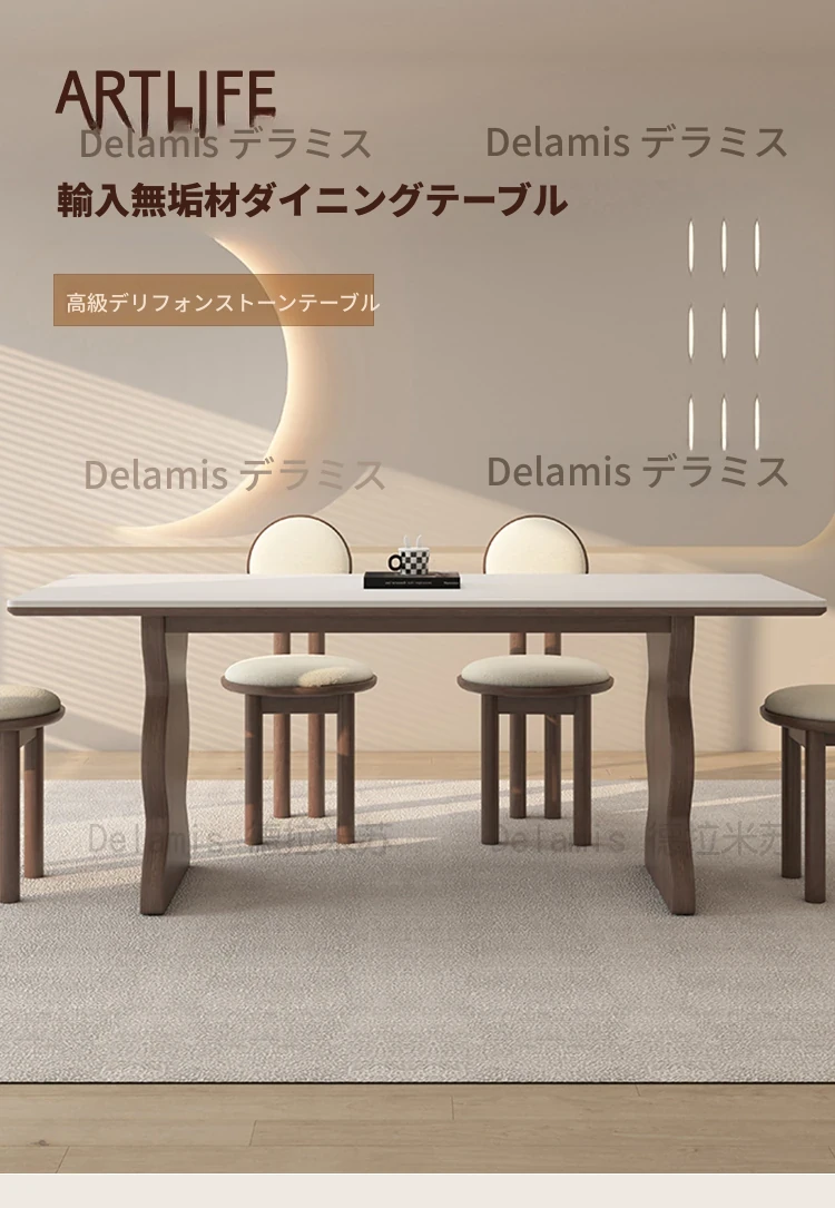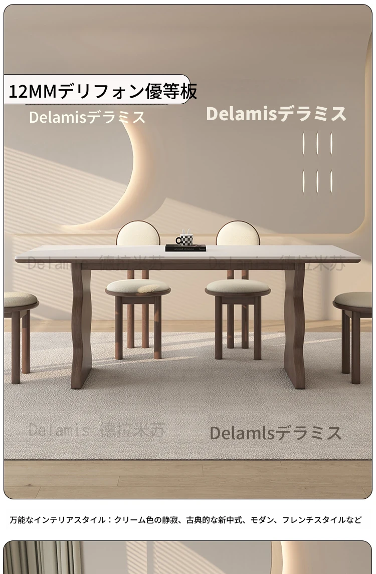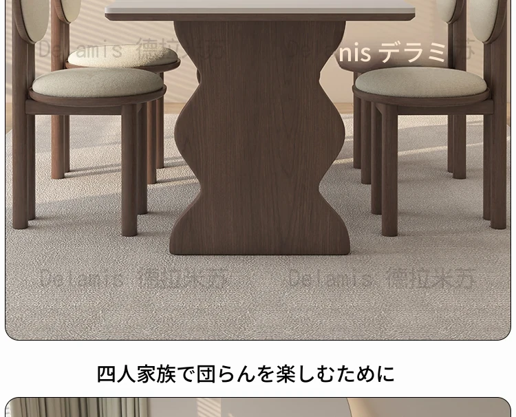 デリフォン無垢材ロックボードダイニングテーブル - 家庭用小型サイズ、侘寂・アンティーク風の長方形、全体無垢材使用で温もりある食卓を演出!