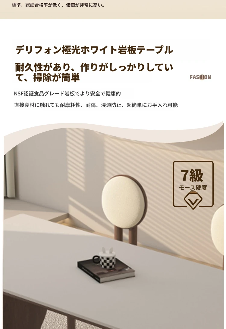 1.8*0.8メートル【高級デリフォン岩板】+無垢材ダイニングチェア*6