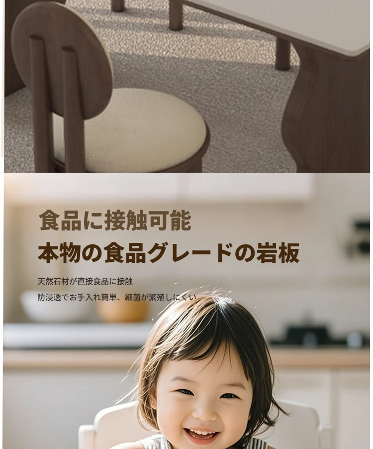 1.4*0.8メートル【高級デリフォン岩板】+無垢材ダイニングチェア*2