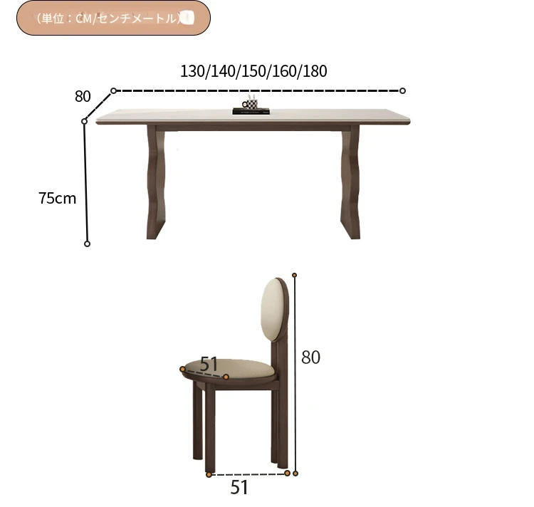 1.5*0.8メートル【高級デリフォン岩板】+無垢材ダイニングチェア*4