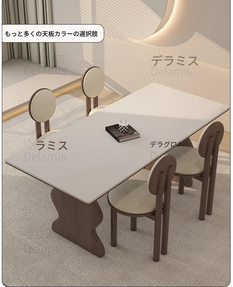 1.3*0.8メートル【高級デリフォン岩板】+無垢材ダイニングチェア*4