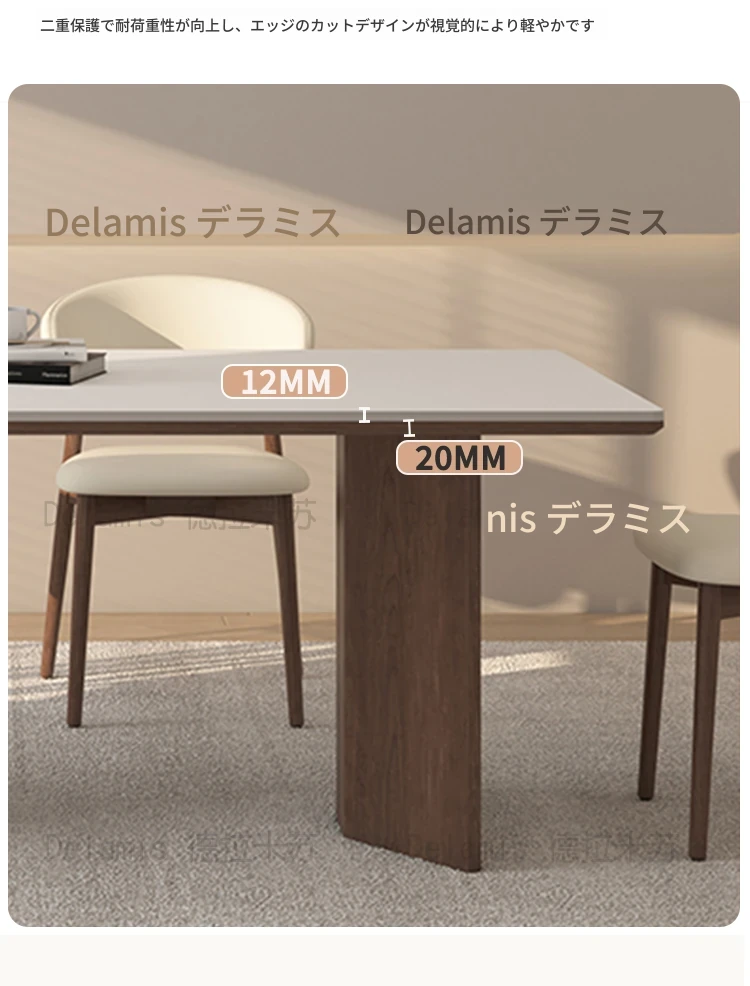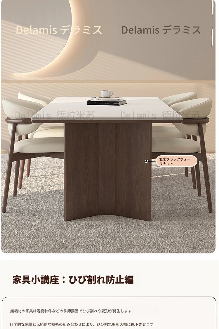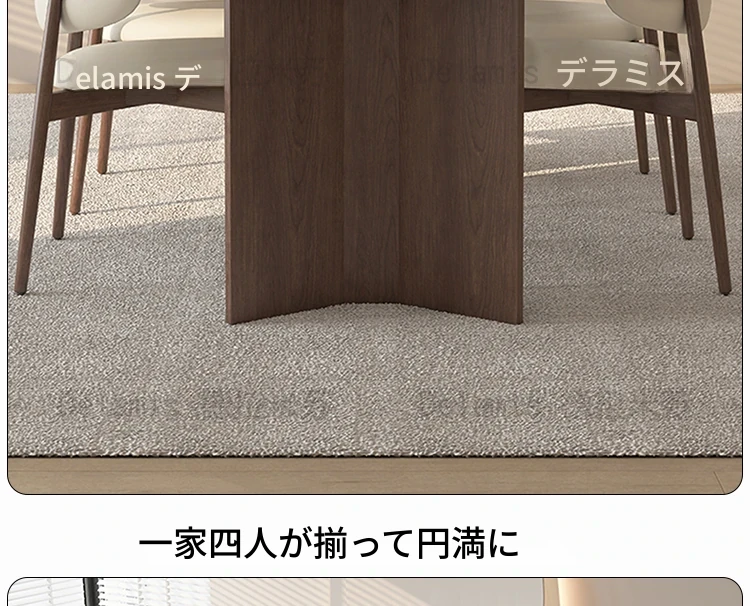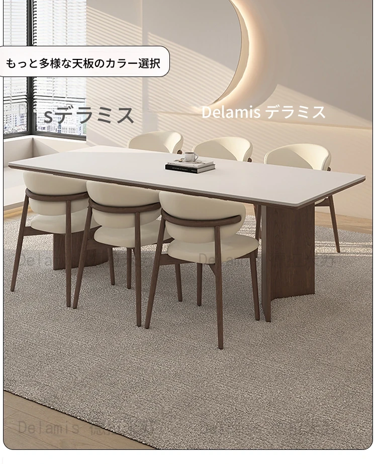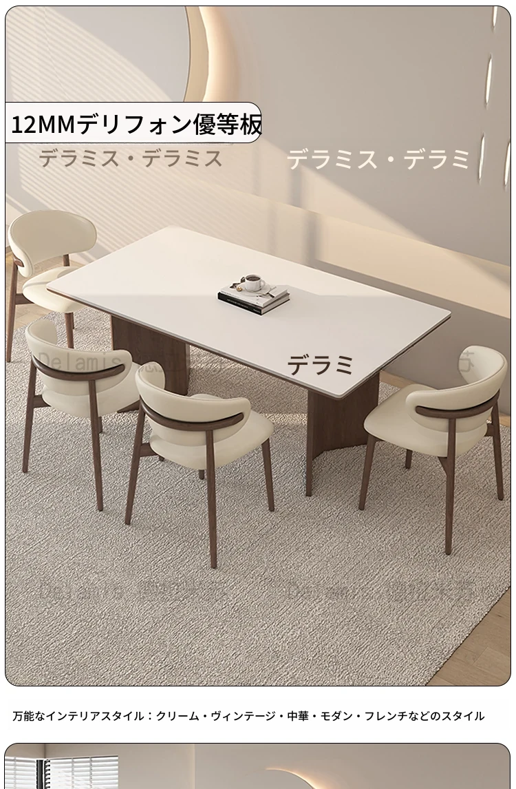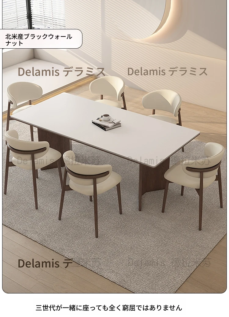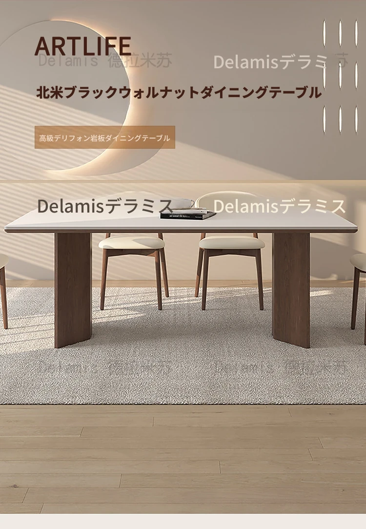 デリフォン 無垢材ロックボード長方形ダイニングテーブル ブラックウォールナット 家庭用 小型フレンチクリーム 中古風 食卓 デザイン性と実用性を兼ね備えた、おしゃれなダイニング空間を演出!