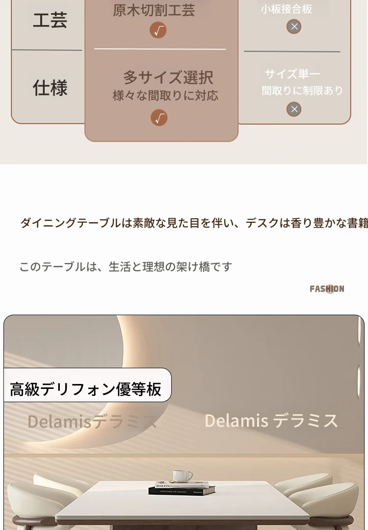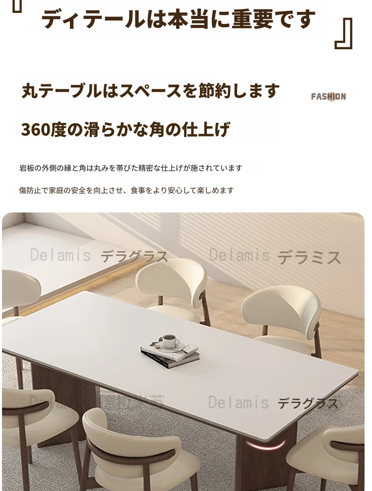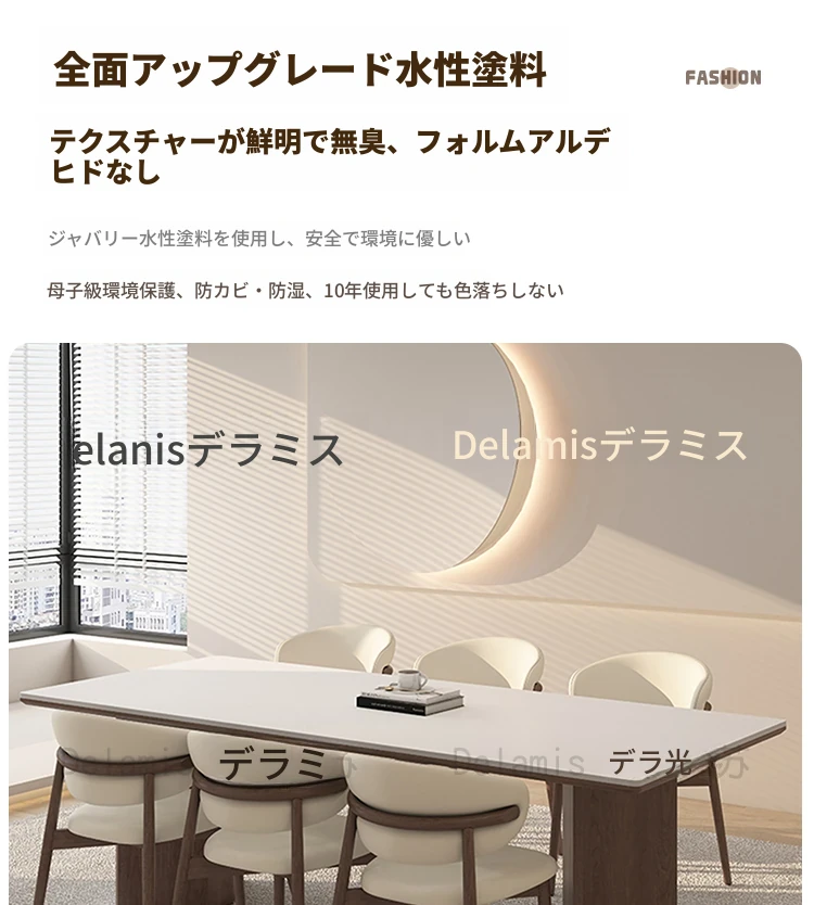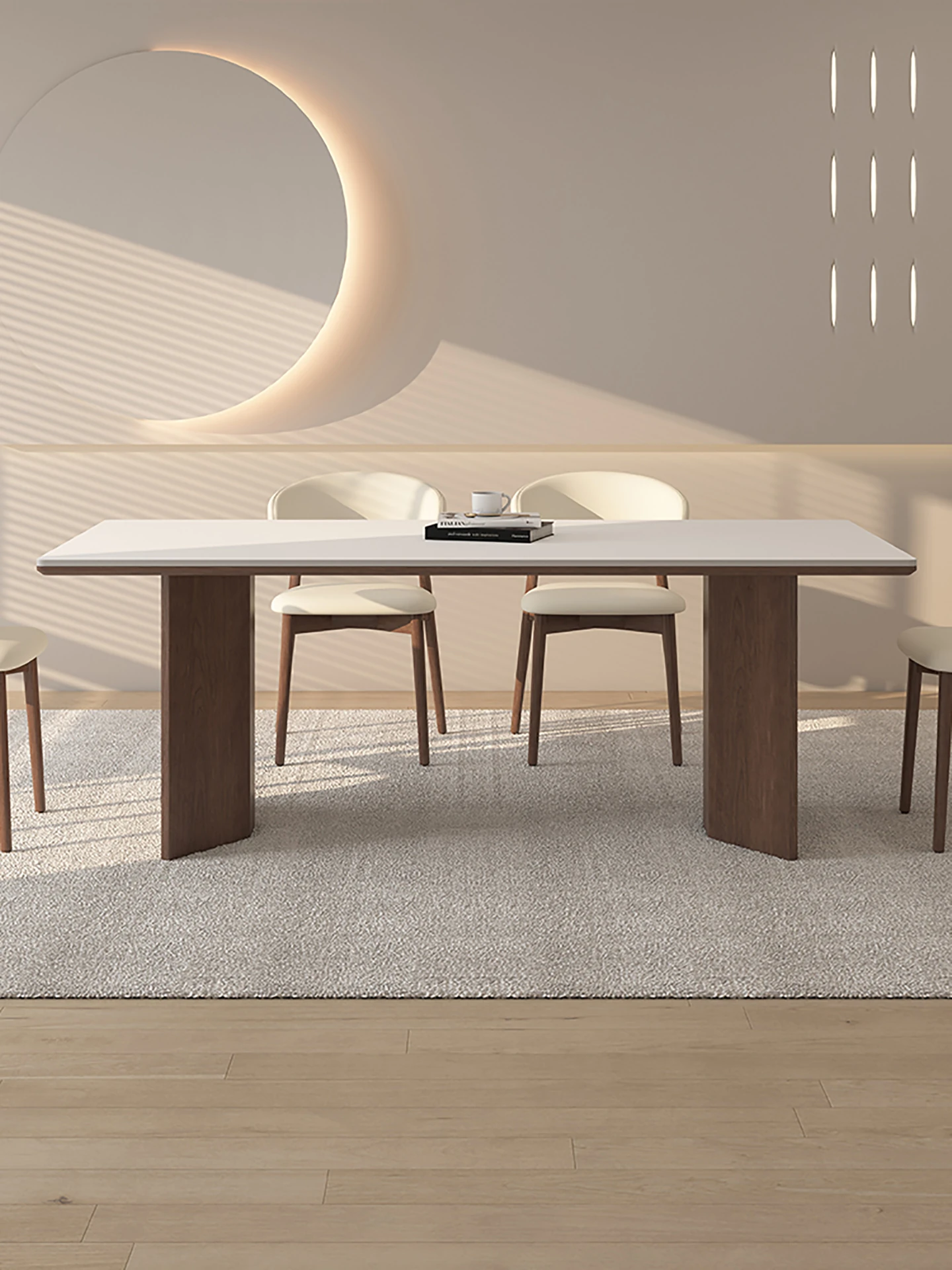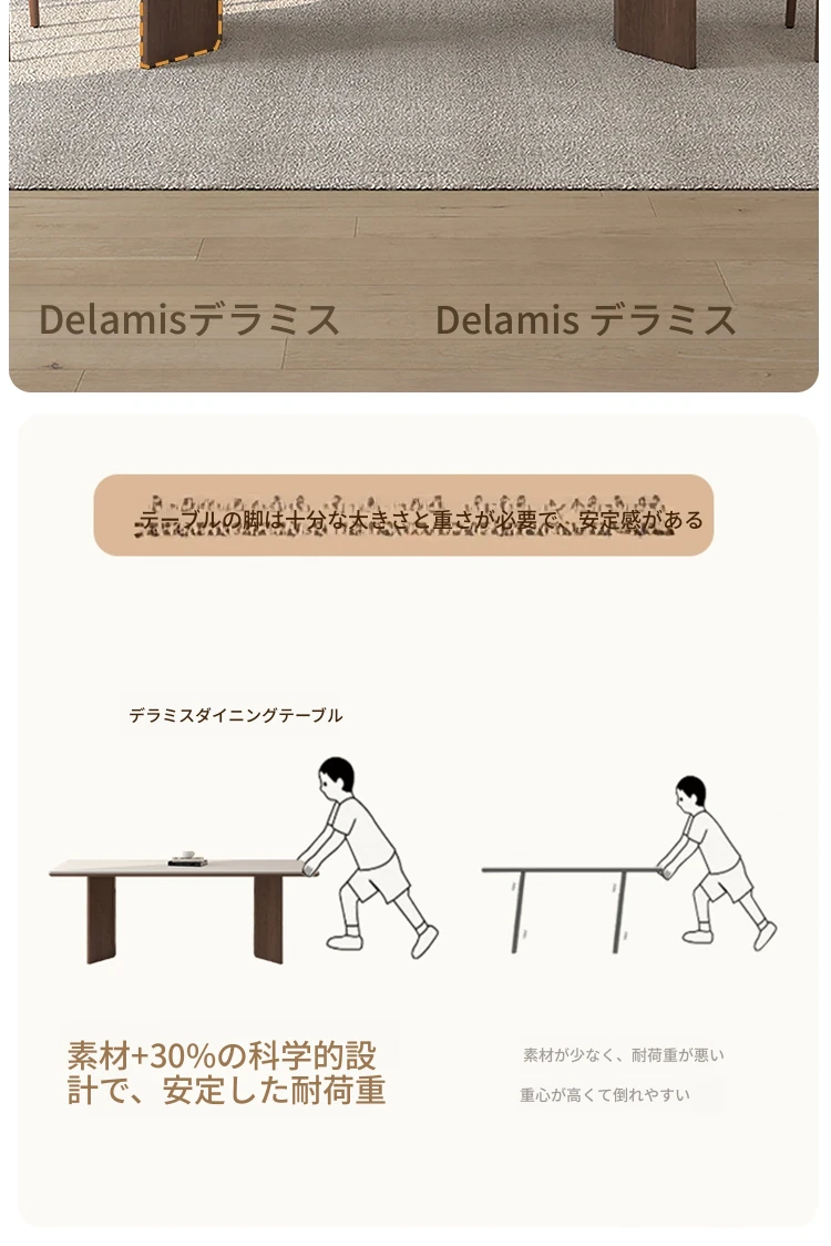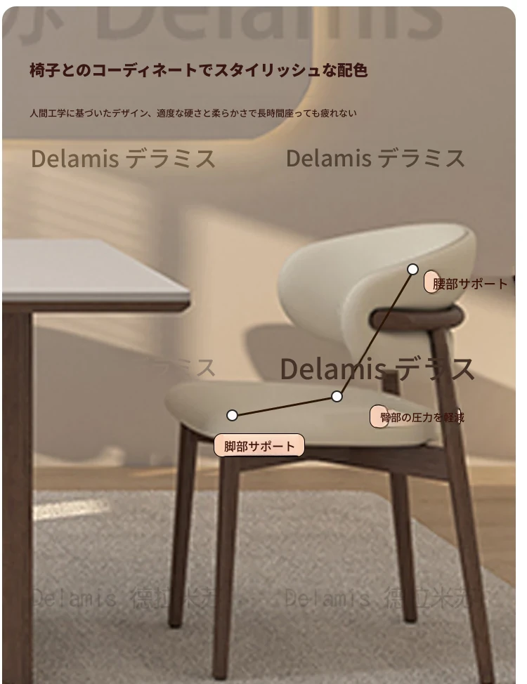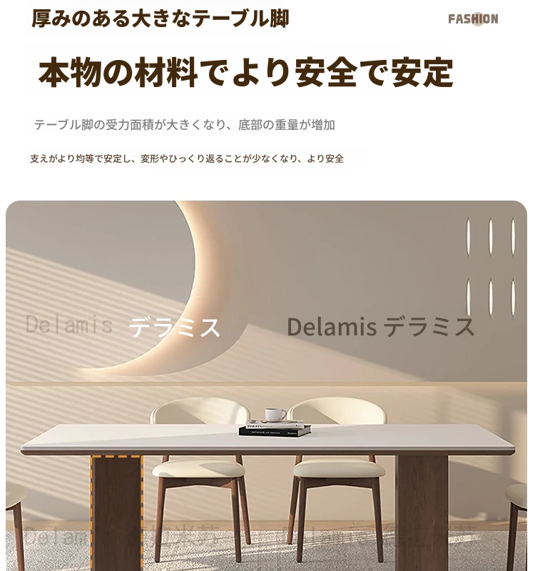 デリフォン 無垢材ロックボード長方形ダイニングテーブル ブラックウォールナット 家庭用 小型フレンチクリーム 中古風 食卓 デザイン性と実用性を兼ね備えた、おしゃれなダイニング空間を演出!