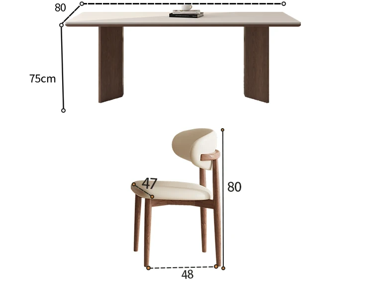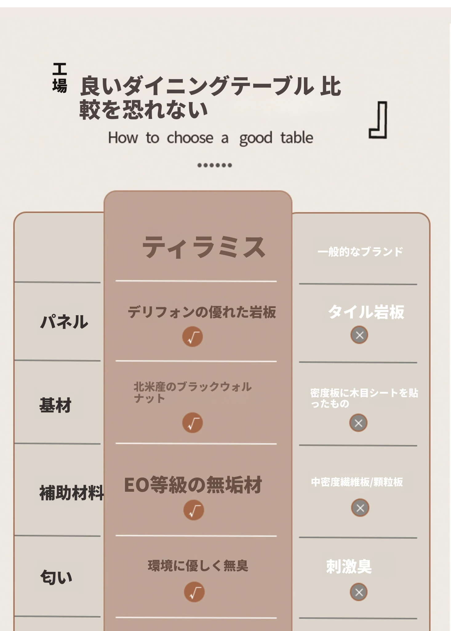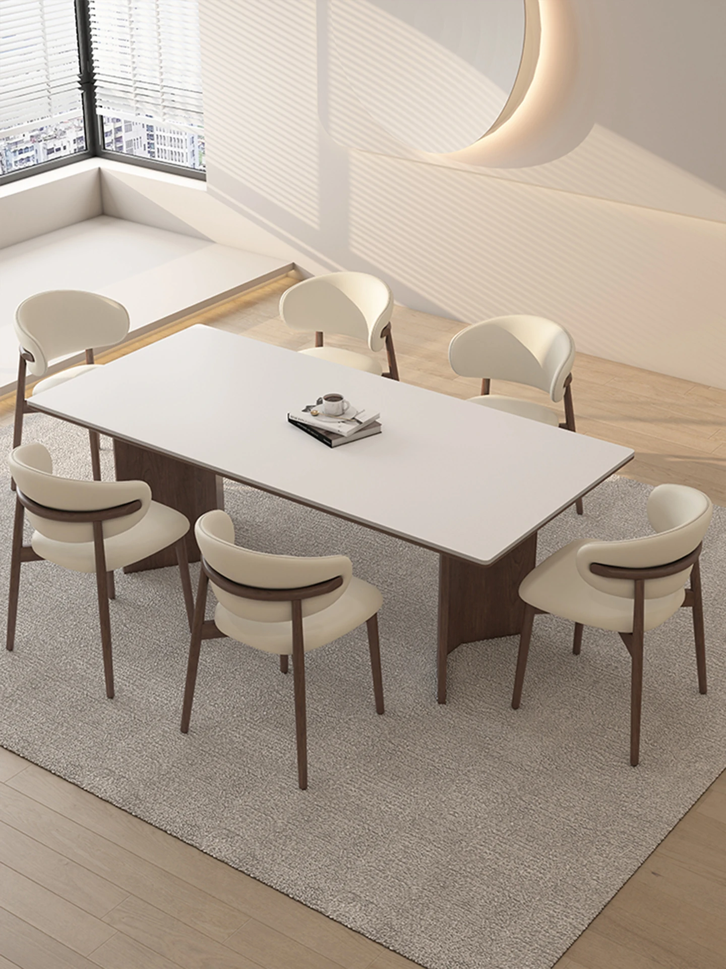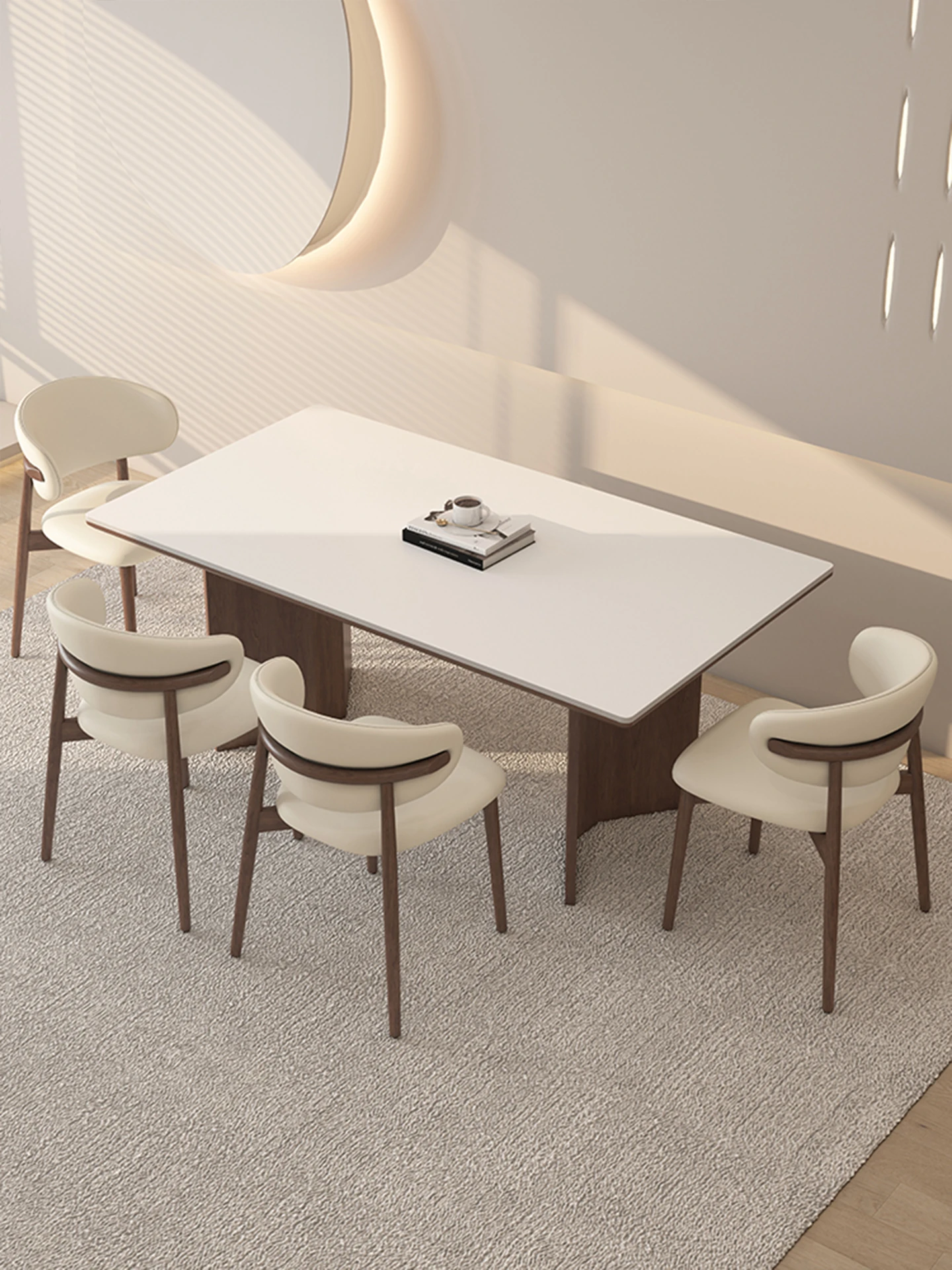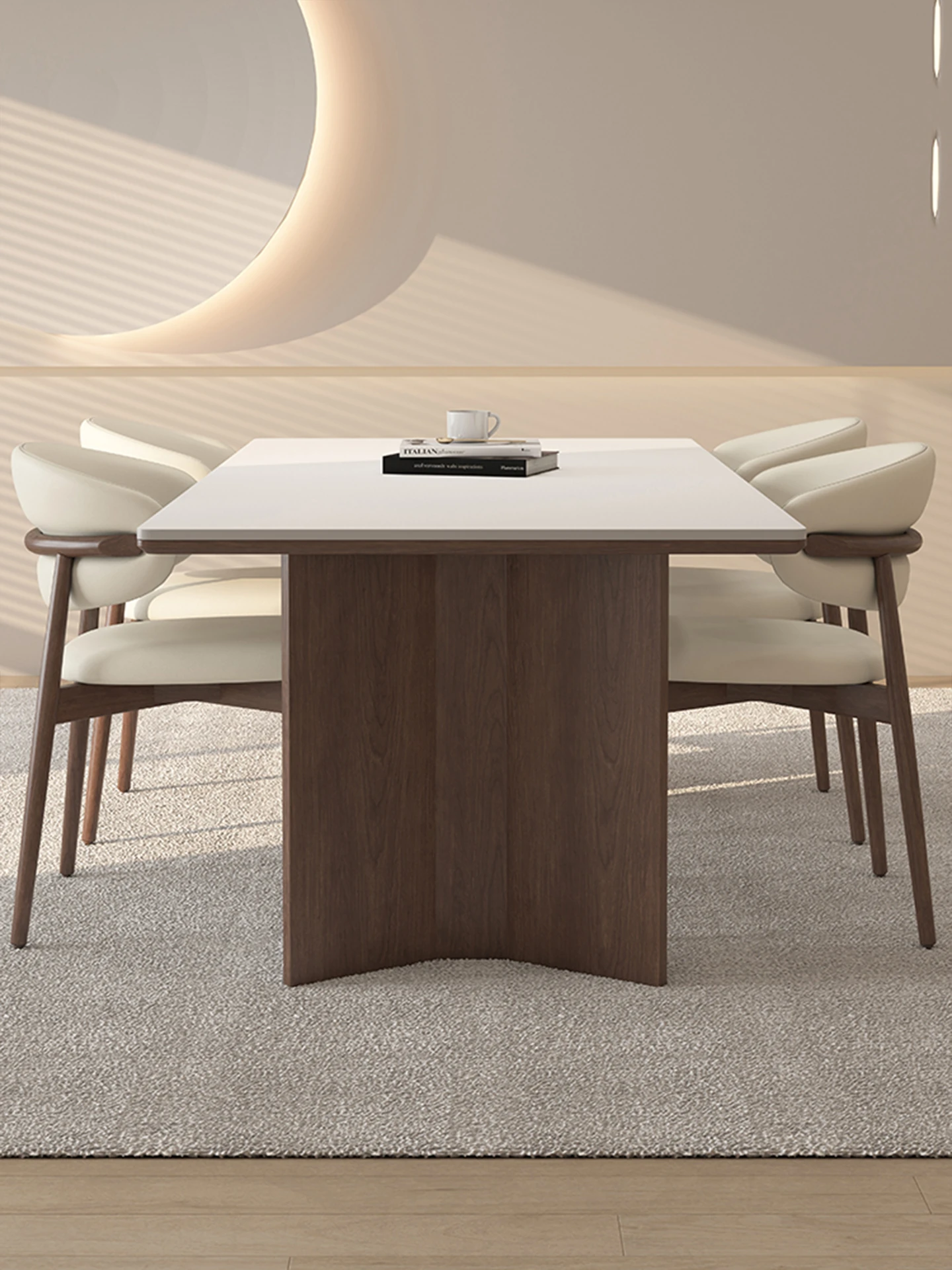 デリフォン 無垢材ロックボード長方形ダイニングテーブル ブラックウォールナット 家庭用 小型フレンチクリーム 中古風 食卓 デザイン性と実用性を兼ね備えた、おしゃれなダイニング空間を演出!