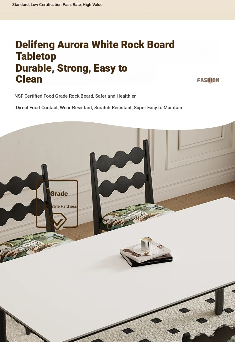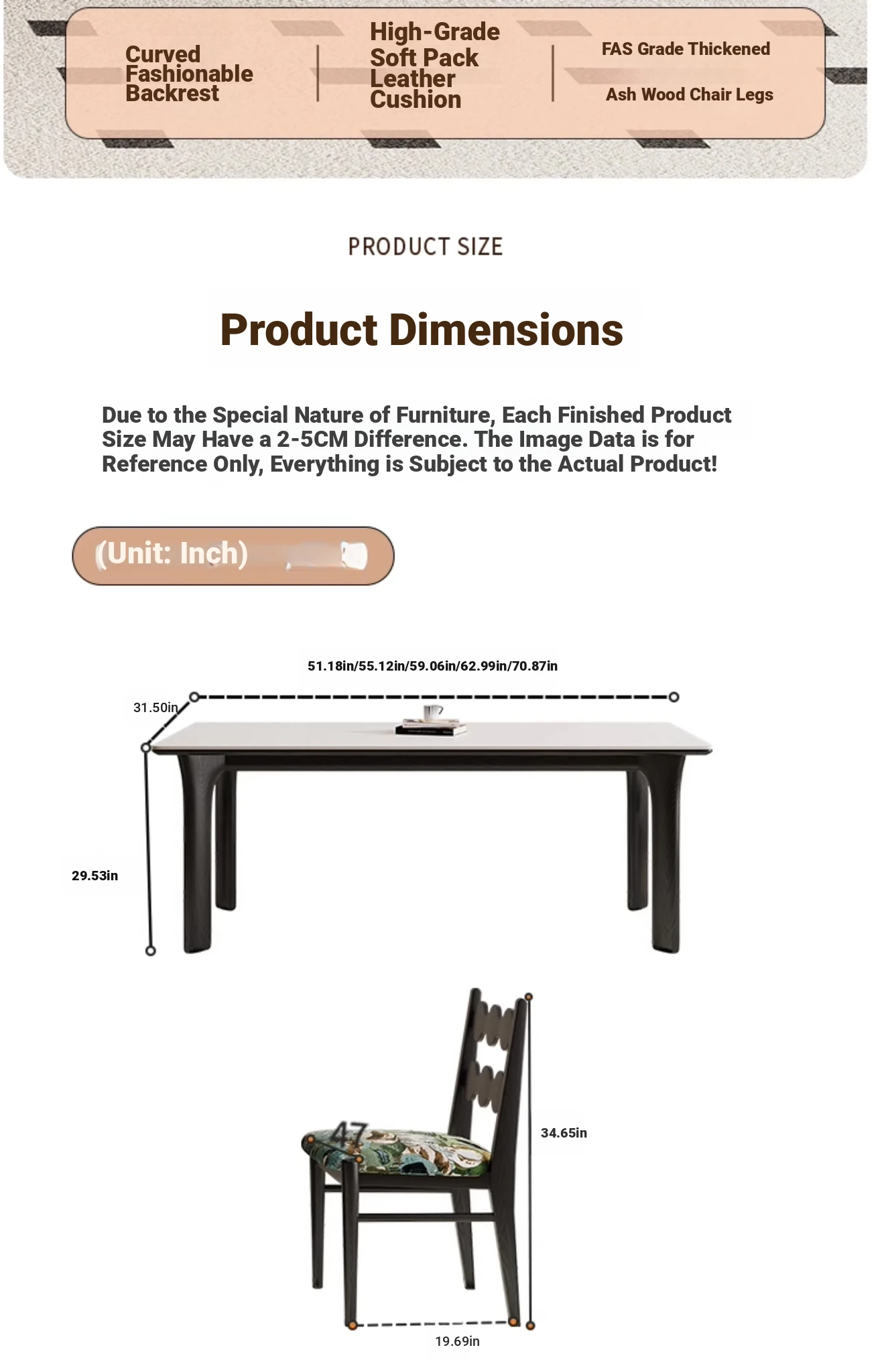 55.12in*31.50in [Classy Delifeng Rock Plate] + Solid Wood Dining Chair * 6